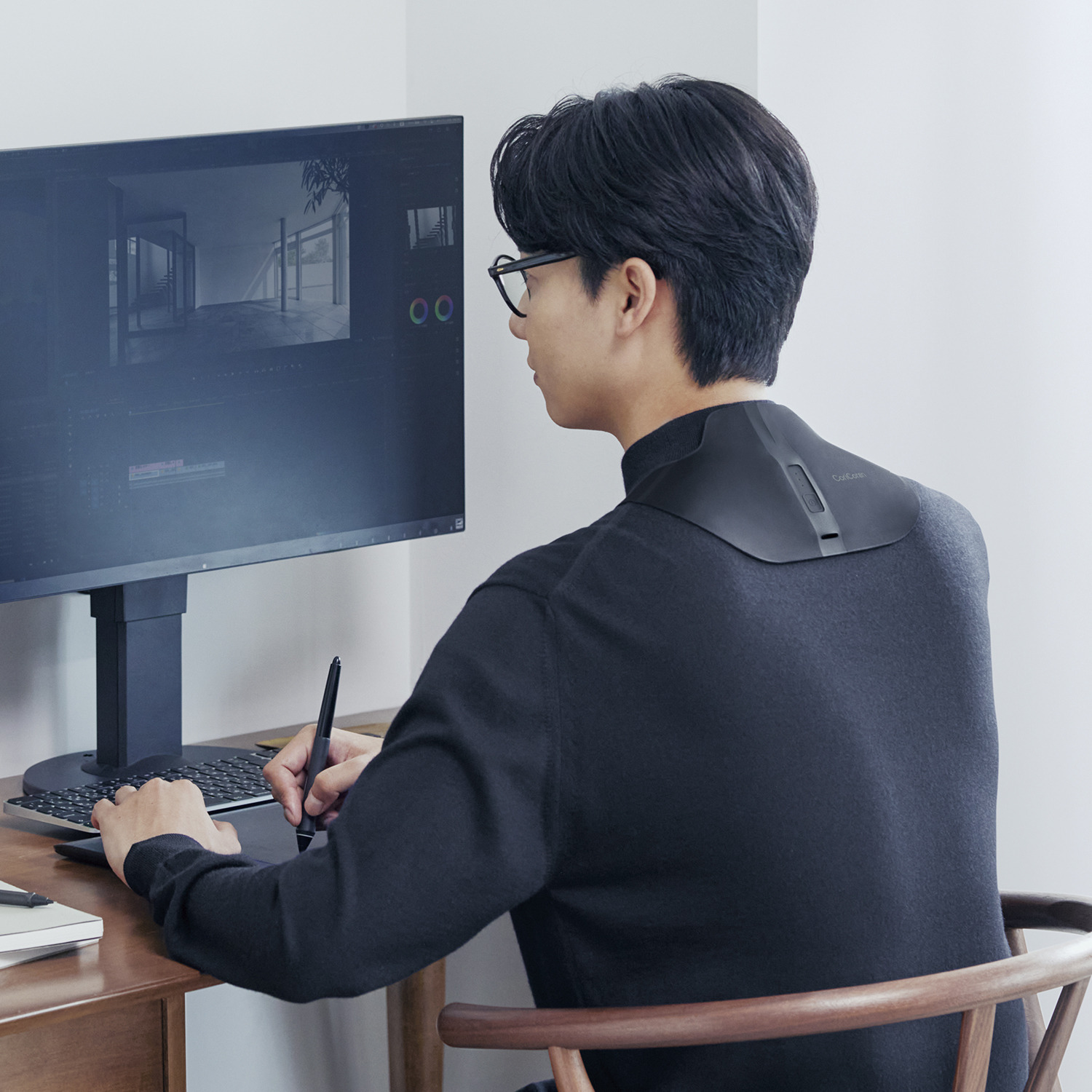 薄くて軽く、コードレス仕様! アタッチメントに入れて肩にはおるだけの簡単装着だから、オフィスでの仕事中に、家事をしながら、休憩中も、外出時でも、いつでもさまざまな場所でご使用いただけます。