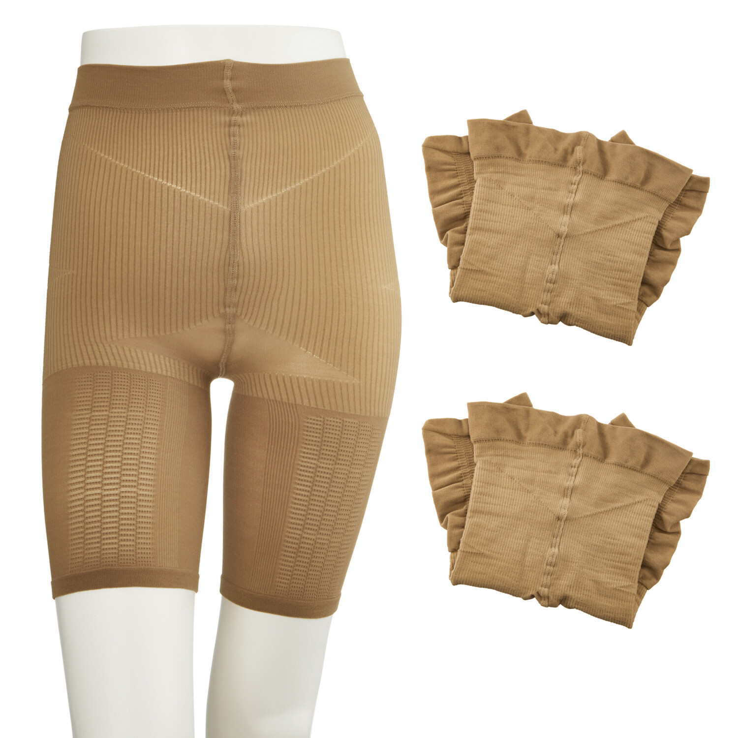 ごく薄手で補整下着を履いていることを忘れてしまいそうな履き心地なのに、下半身が速攻ですっきり見え!太ももを絞り上げ、ヒップをググっと持ち上げ、気になるお腹周りをすっぽり収納。