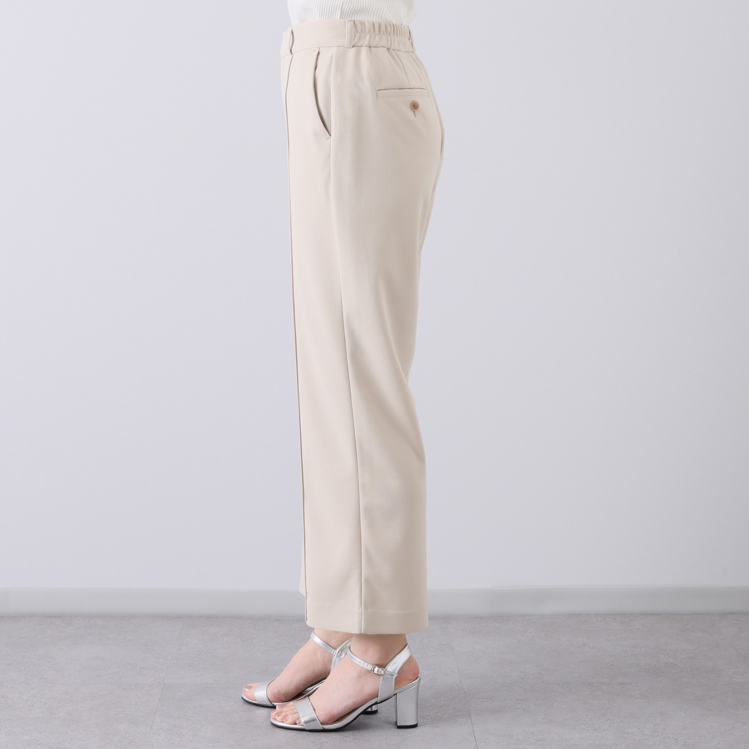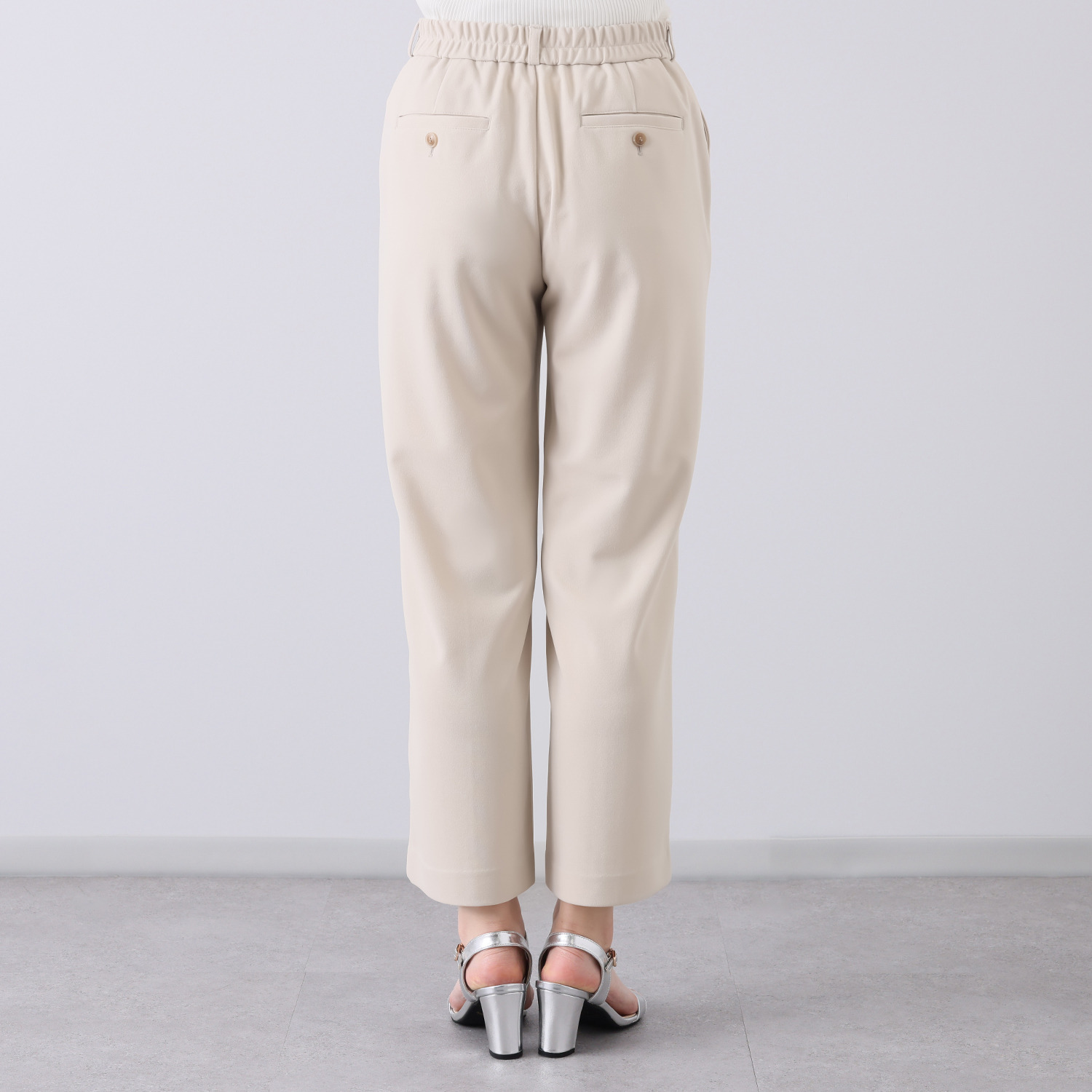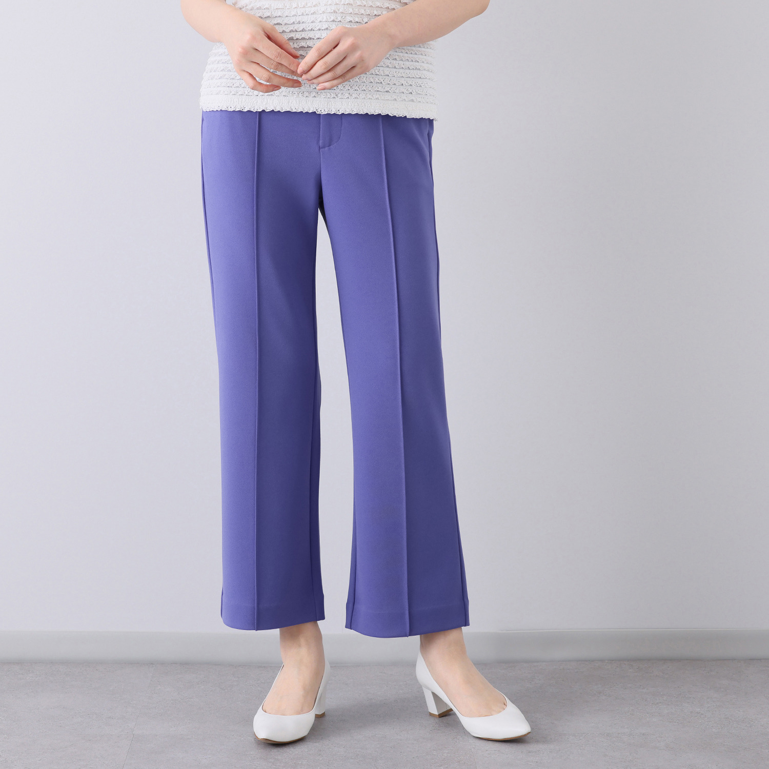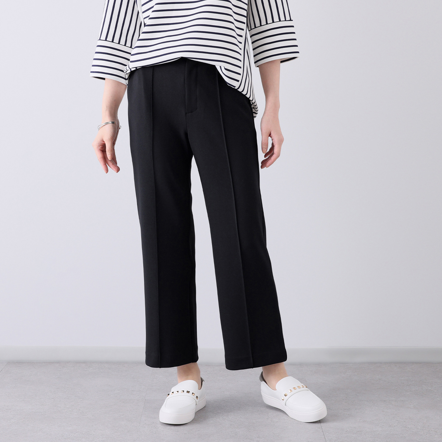 センターピンタックをほどこすことで、視覚効果により脚を細く見せ、センターラインが洗濯しても消えず、いつでもきれいなスタイリングに。