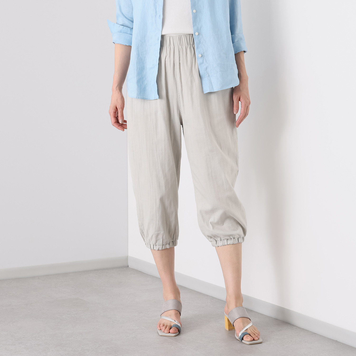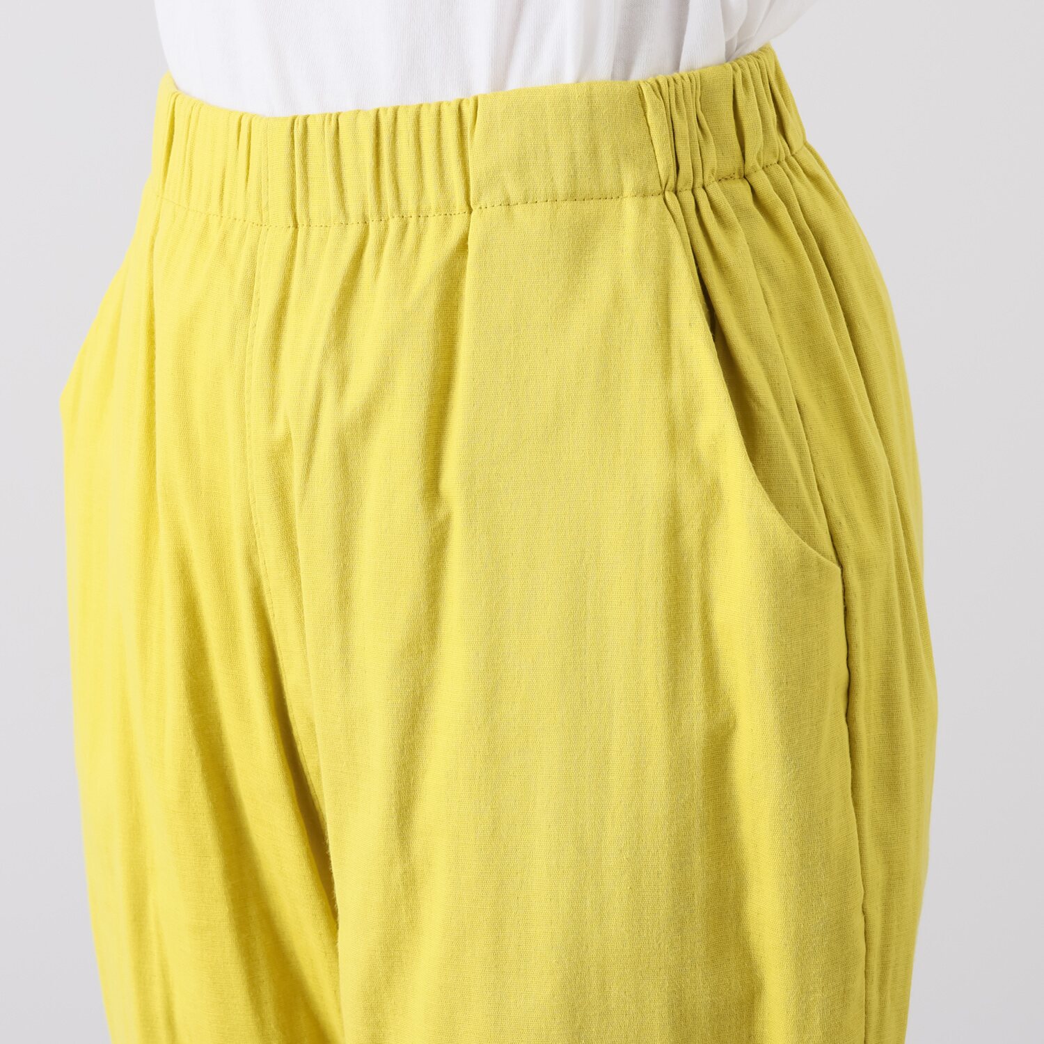 股上を深めに取り、股ぐりにも余裕を持たせた、楽ちんなゆったりシルエット。