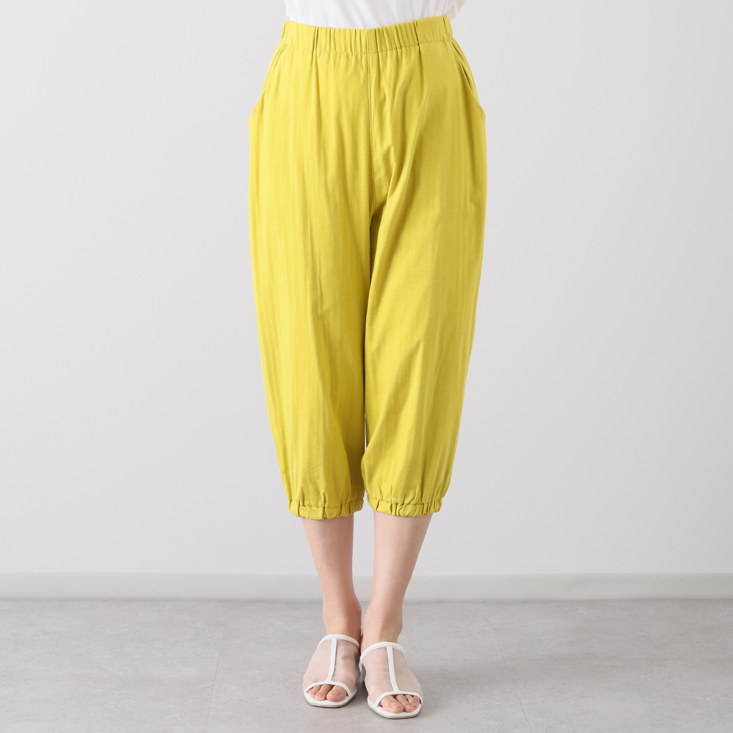 ウエスト総ゴム仕様の着脱がしやすいつくりで、裾部分にもゴムを配し、脚さばきの良さにも配慮しました。