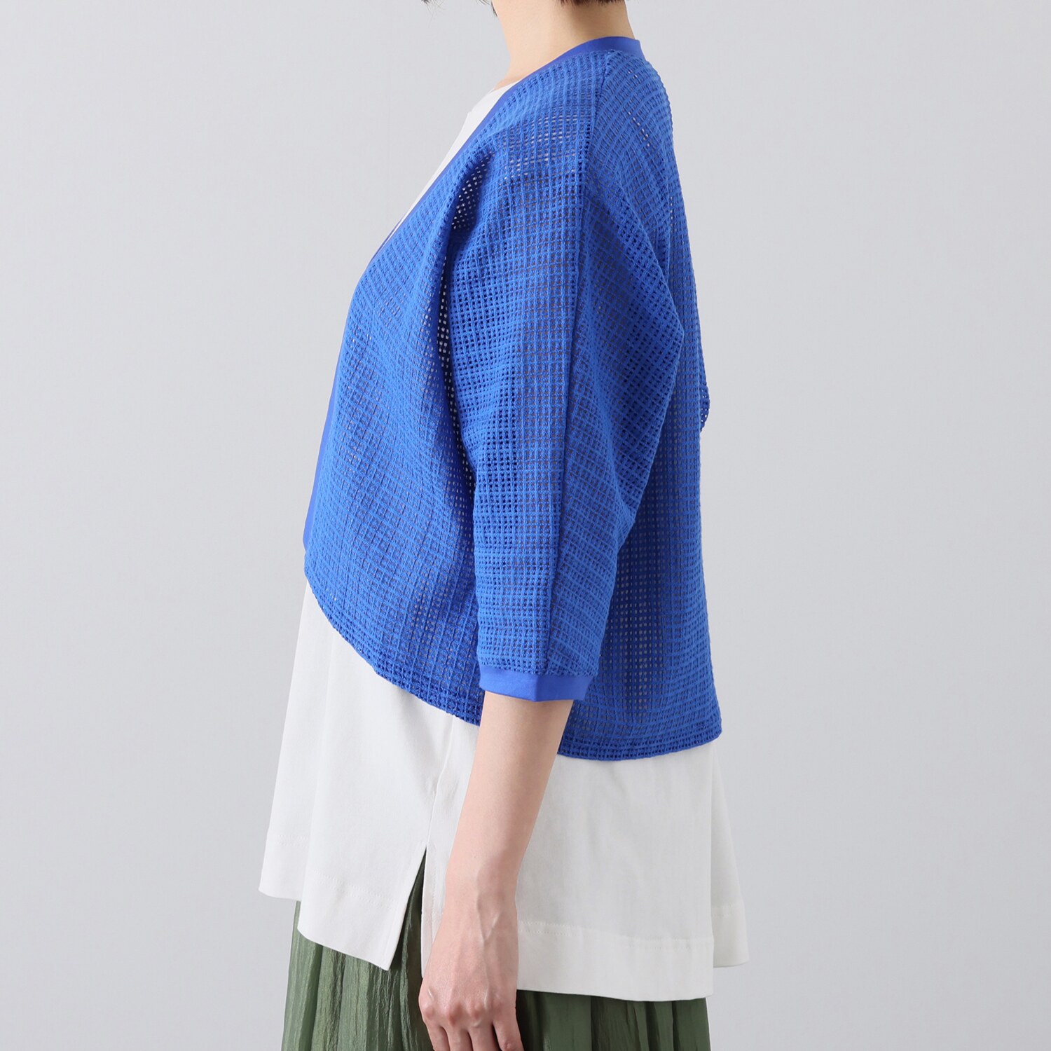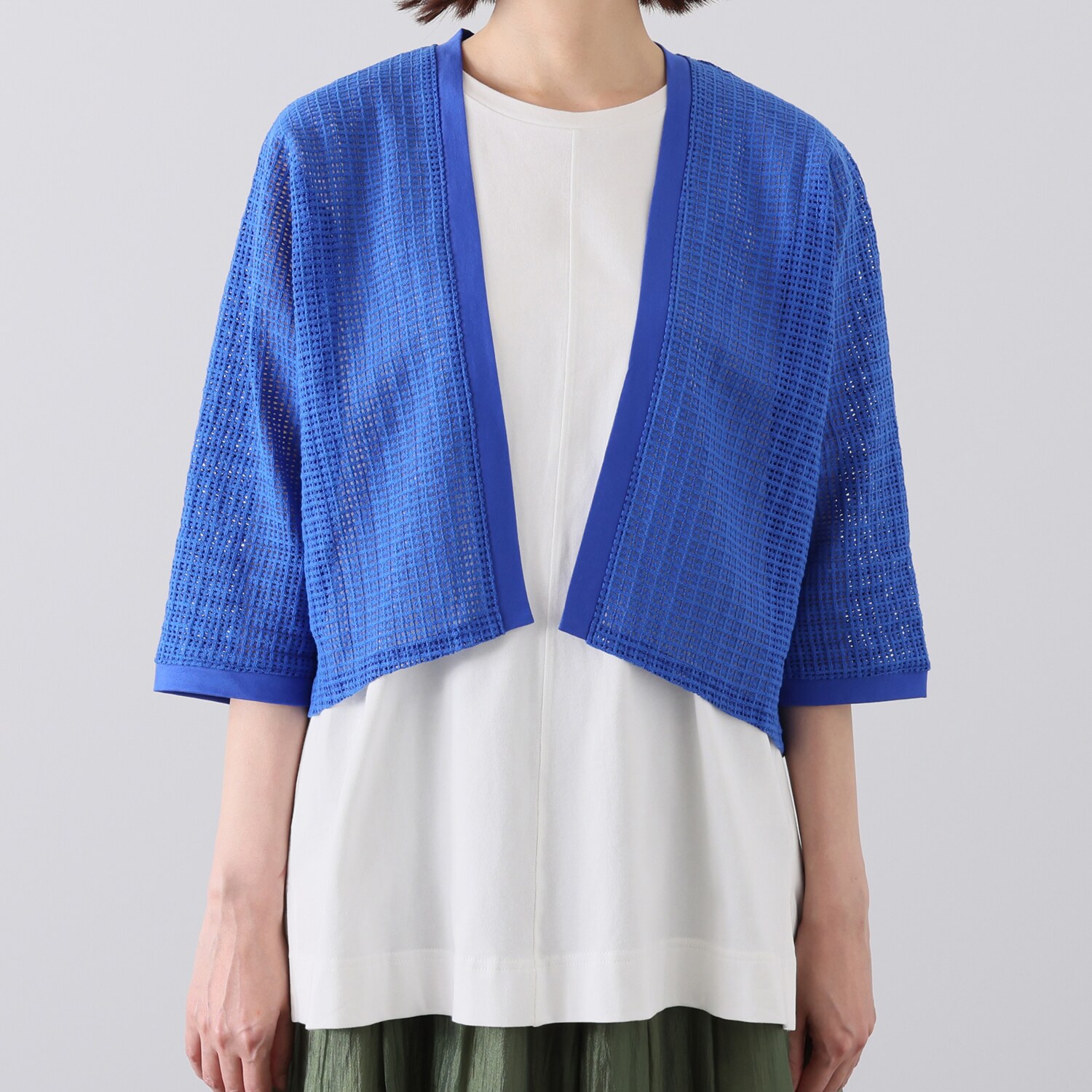 ボレロは、コットンナイロン素材を使用し、凹凸のある編地にデザイン。