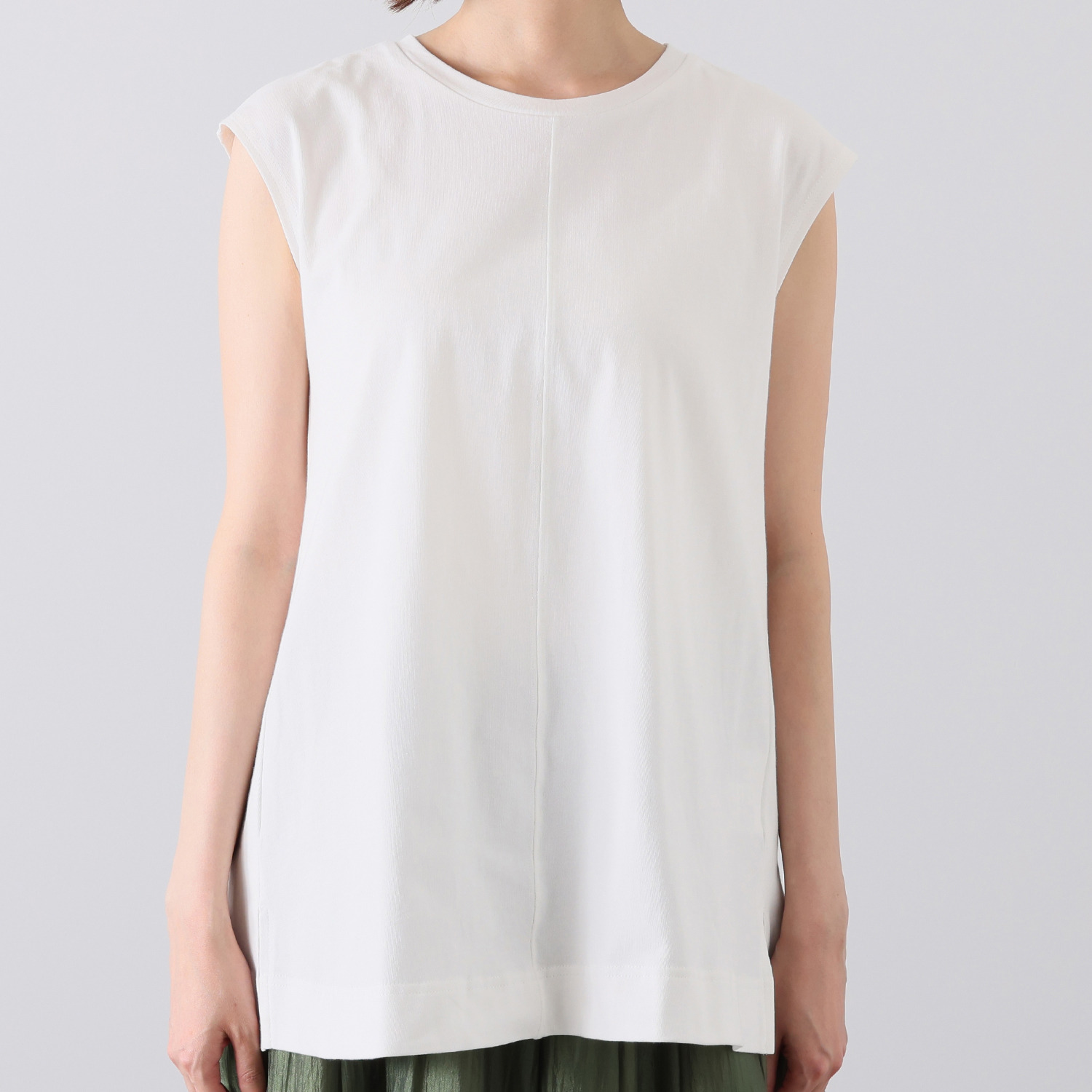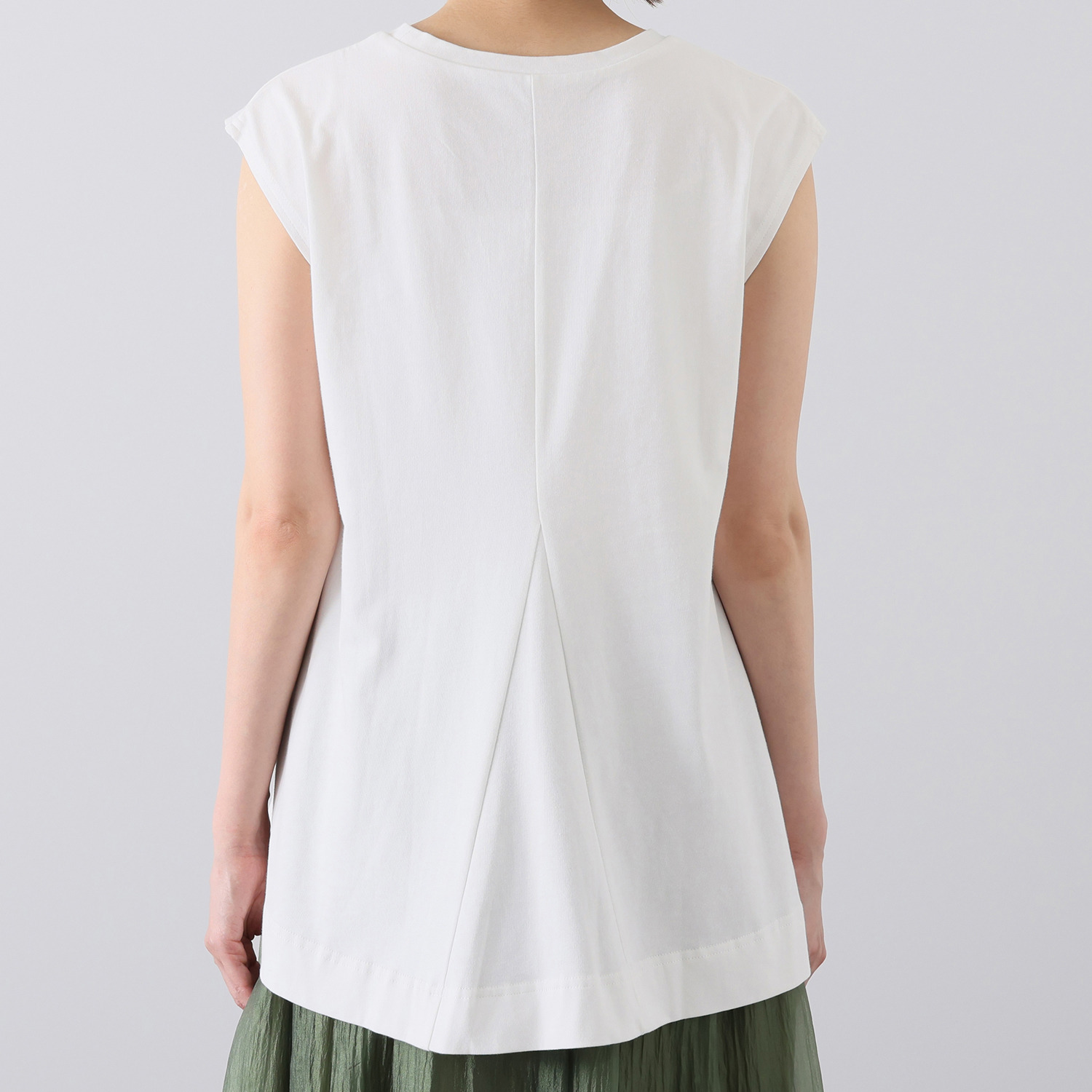 チュニックは、フレアーな立体感を持たせ、後ろ中心に動きを持たせる三角マチを配したデザイン。