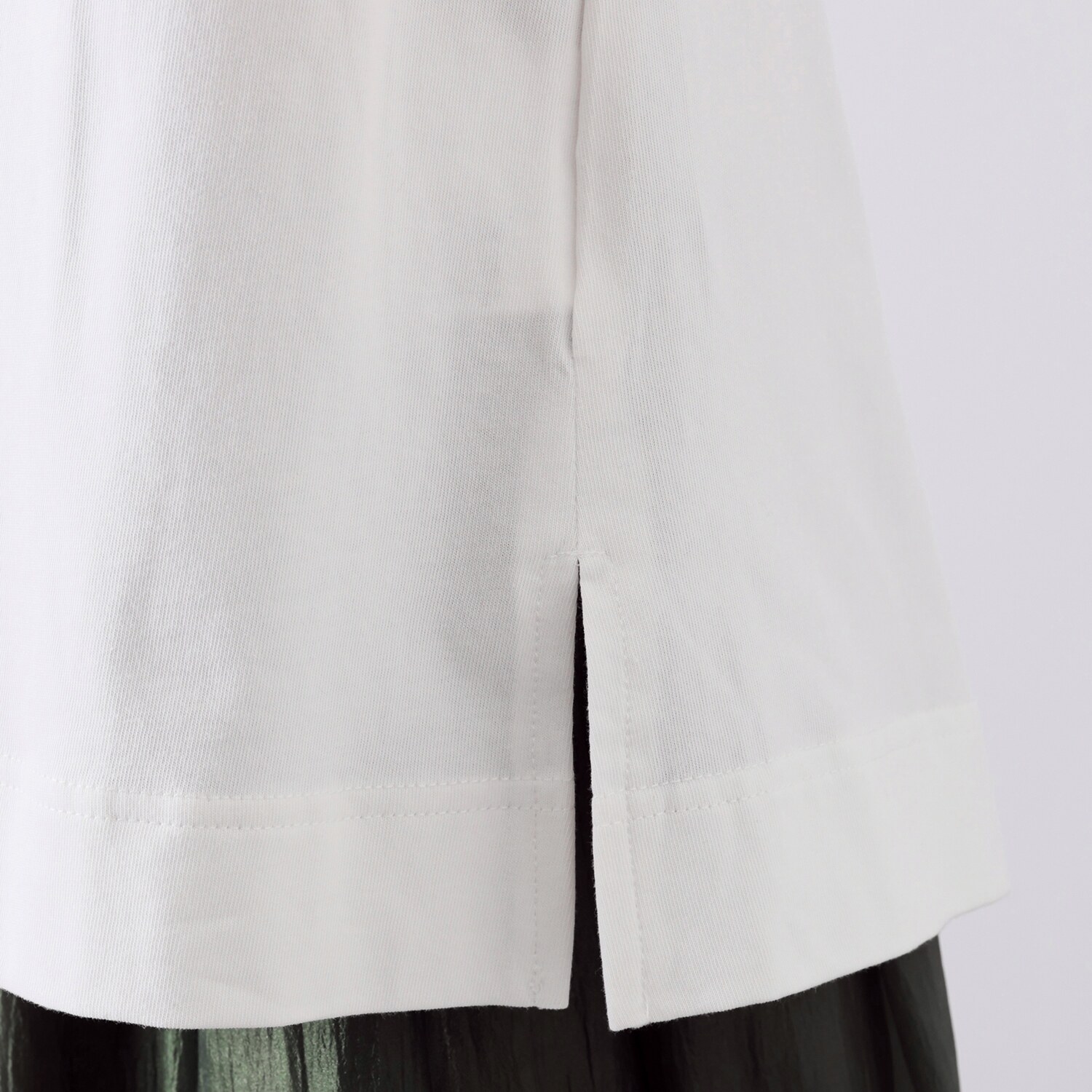 アクセントに無地のカットソーをトリミングし、全体を引き締める効果をアシスト。