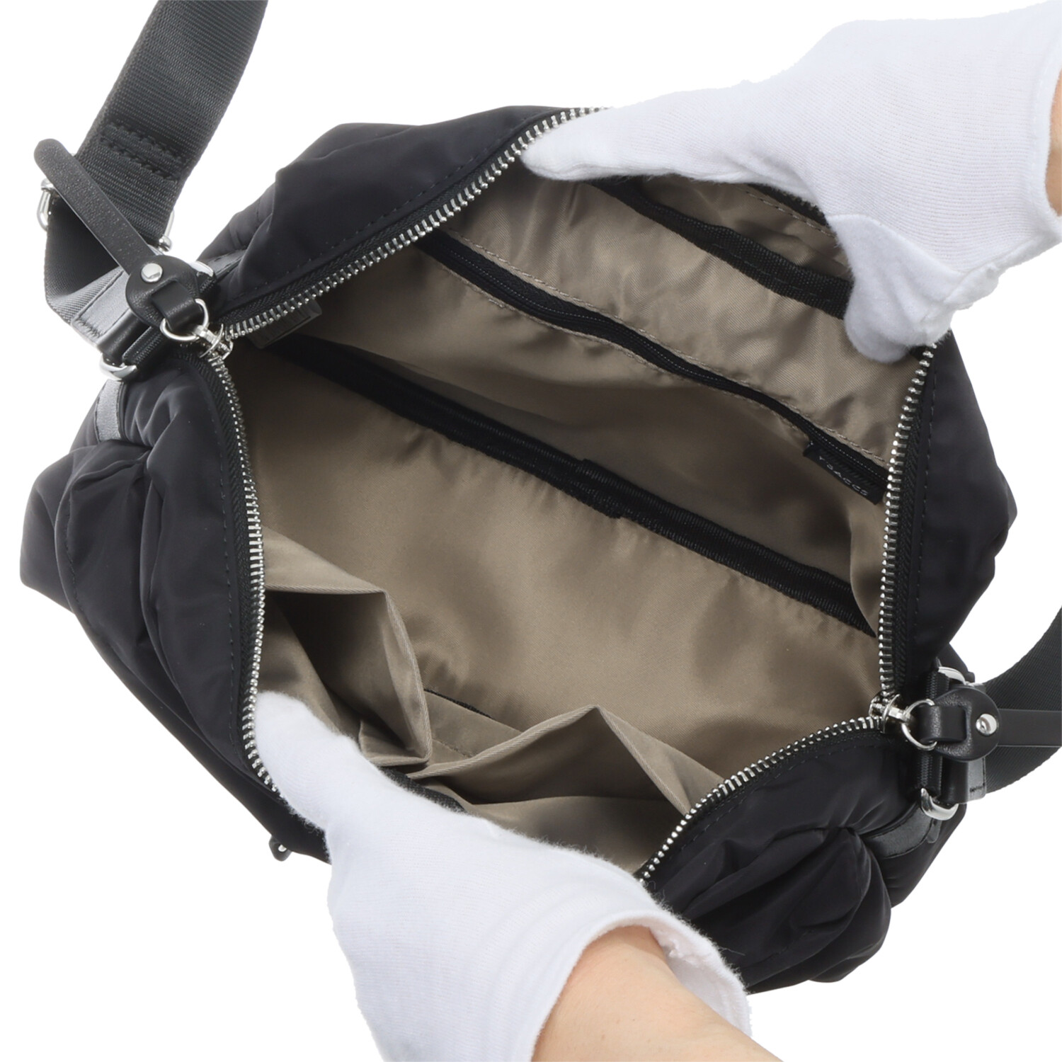 はっ水加工をほどこしたナイロン素材を使用。