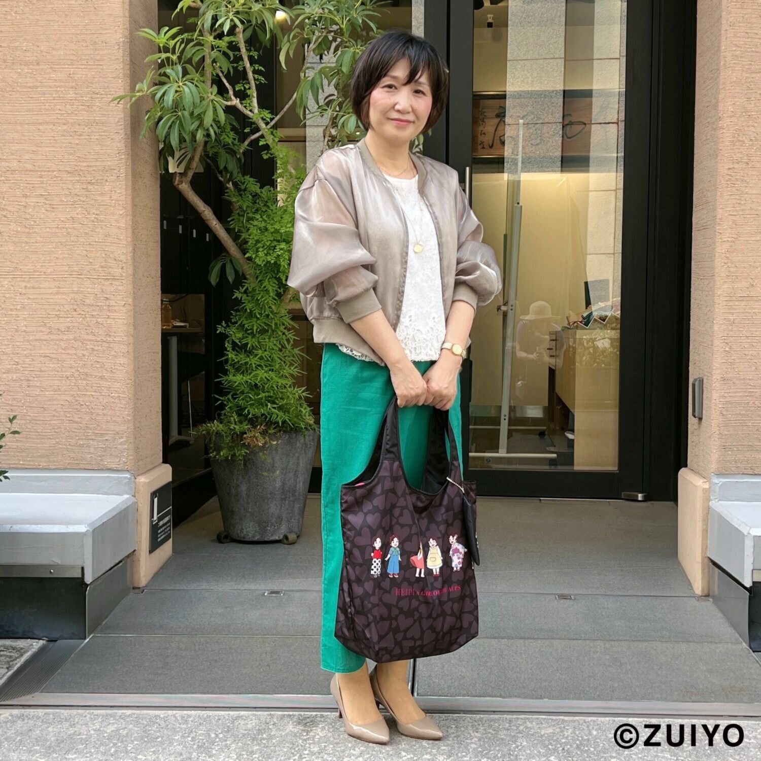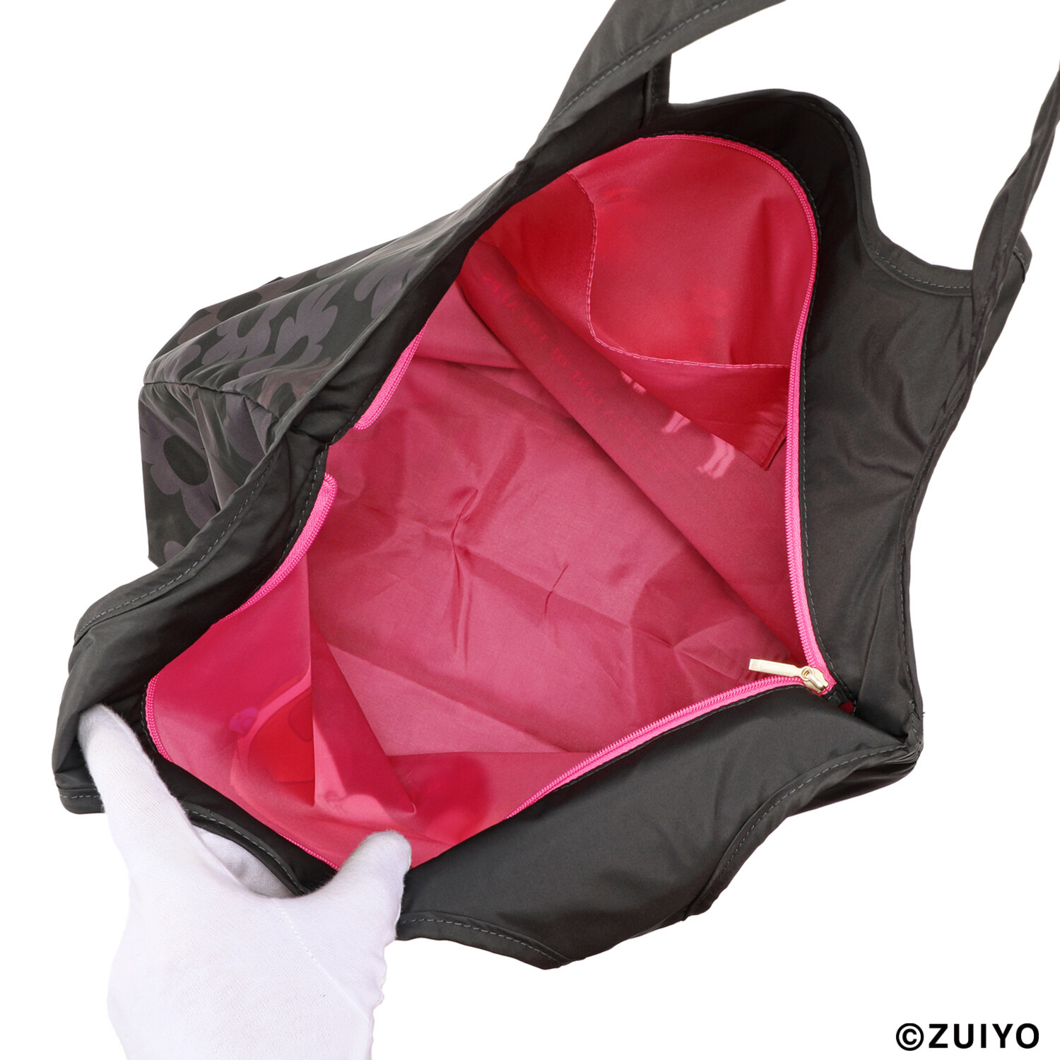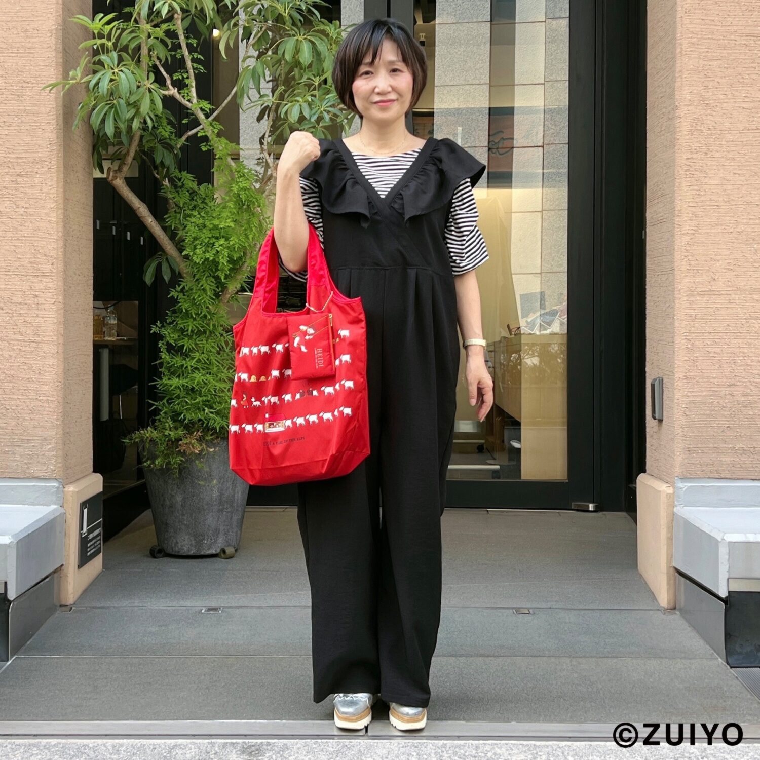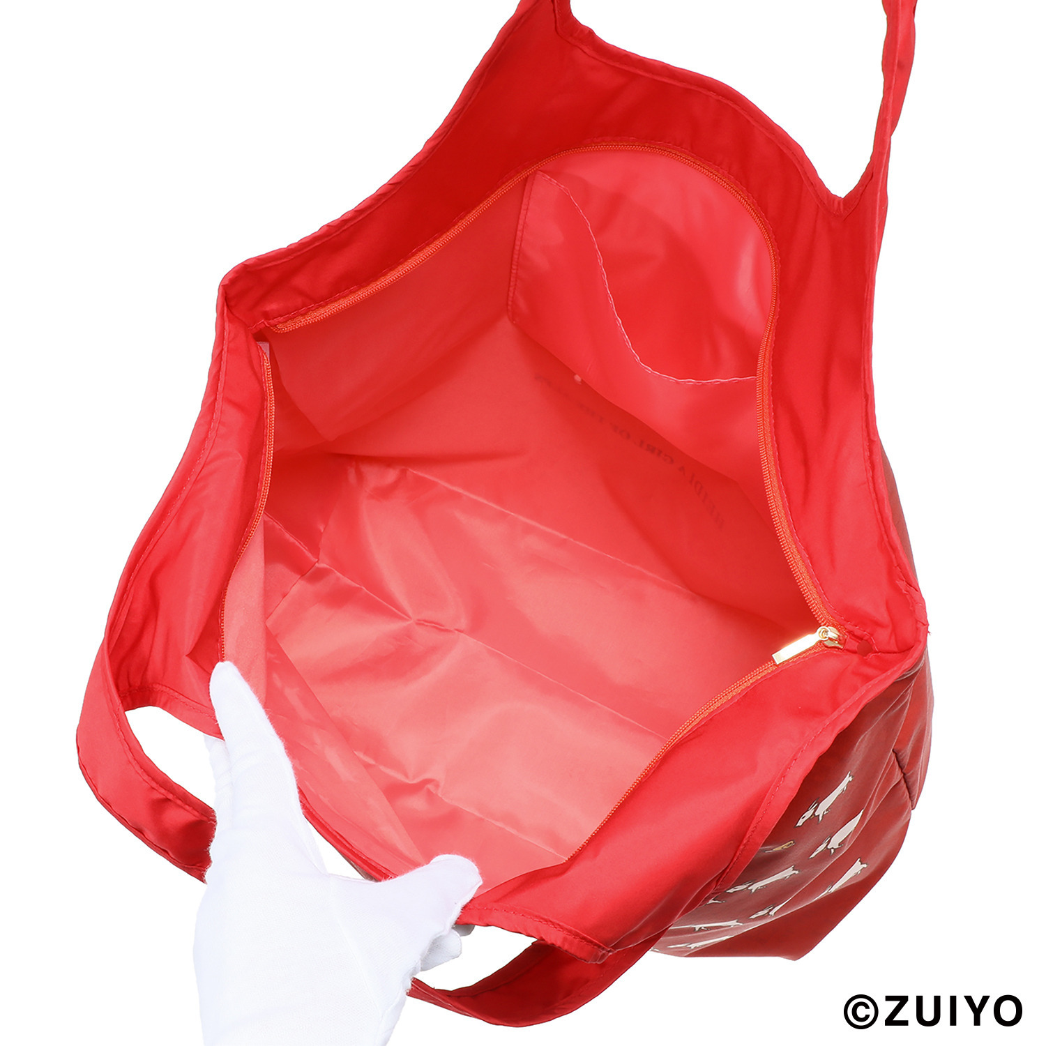 折りたたんで内側のポケットに収納すればコンパクトサイズになるマイバッグと、おそろいのポーチ!