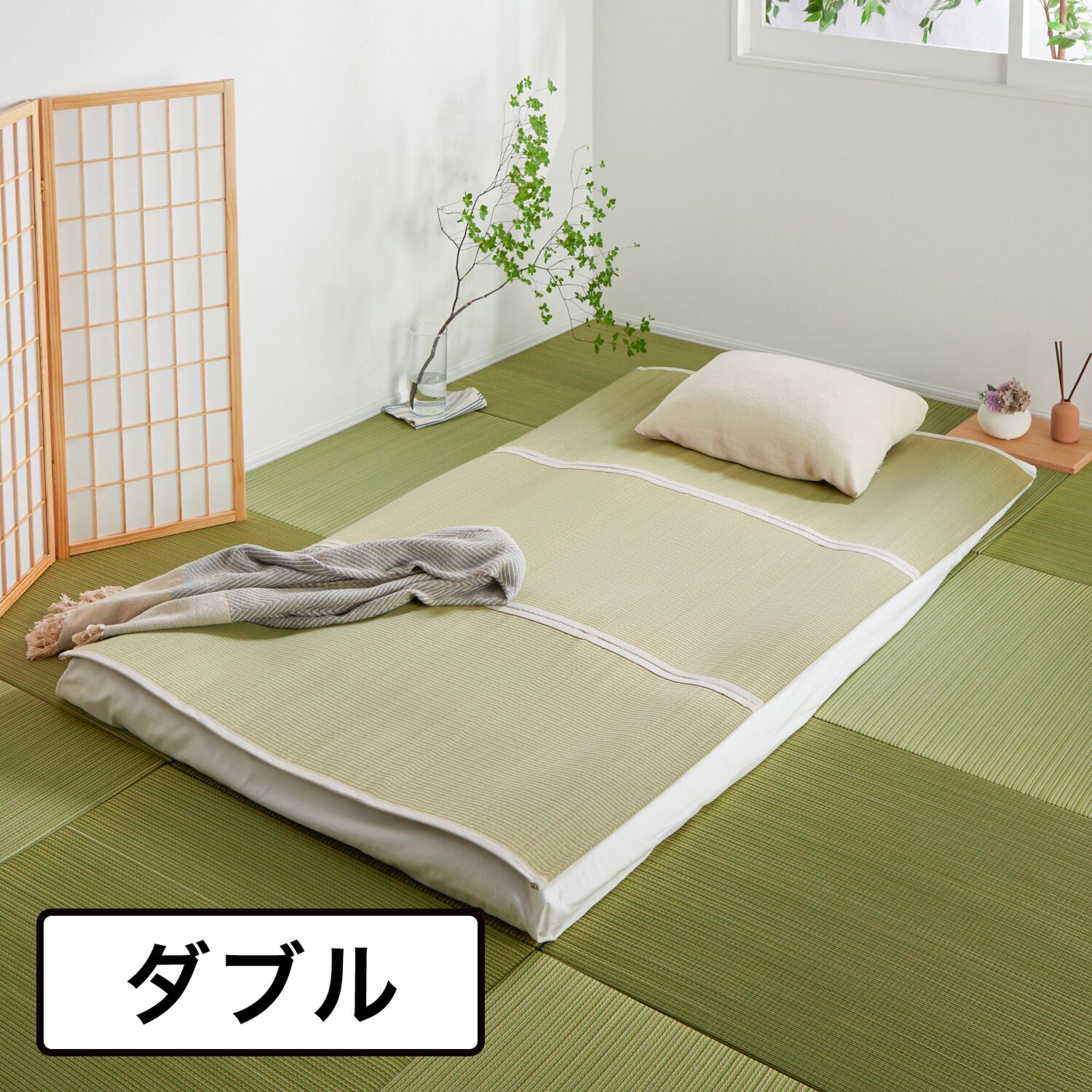 福岡県でメーカーが大事に自社栽培したい草を、無染色のまま乾燥させて織り上げた敷パッドです。