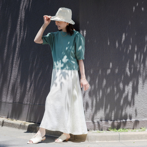 気になる部分をカバーしてくれる、安心感のある五分袖にデザイン。