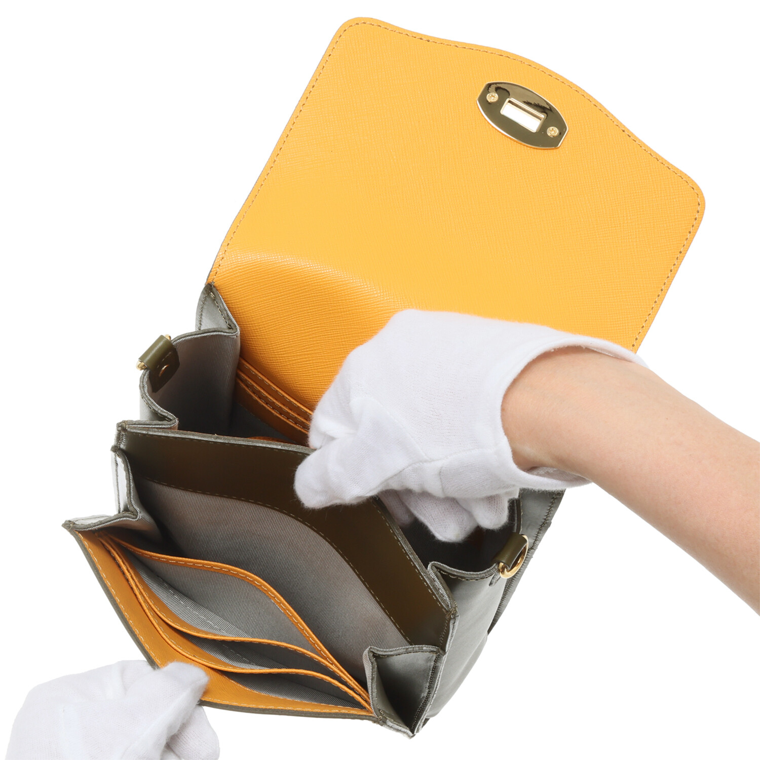 内側の一部にはイタリア“キオリーノテクノロジー社”の牛床革“カレラ”を採用しました。