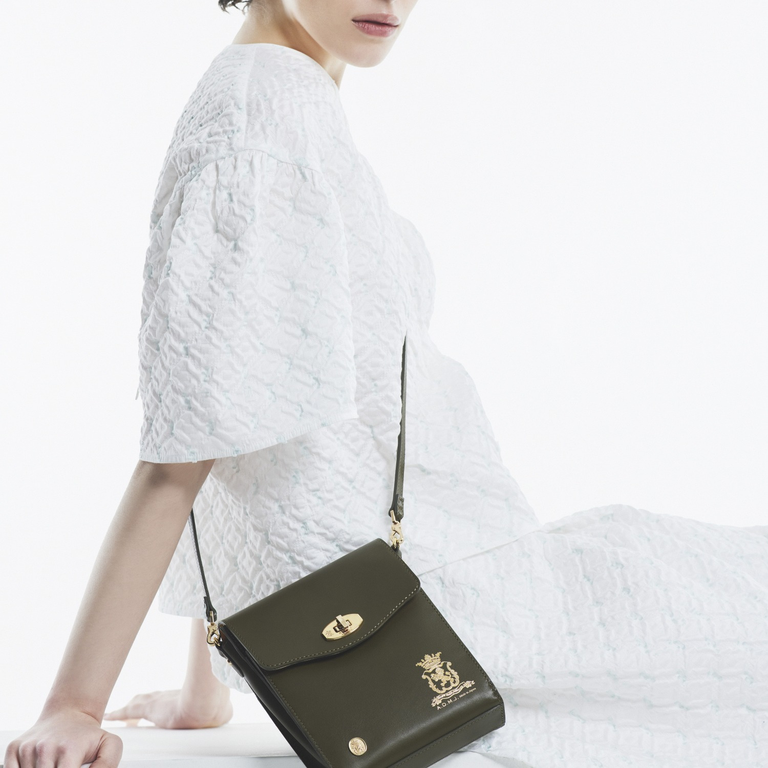 エーディーエムジェイ イタリアンレザー スクエアショルダーバッグ