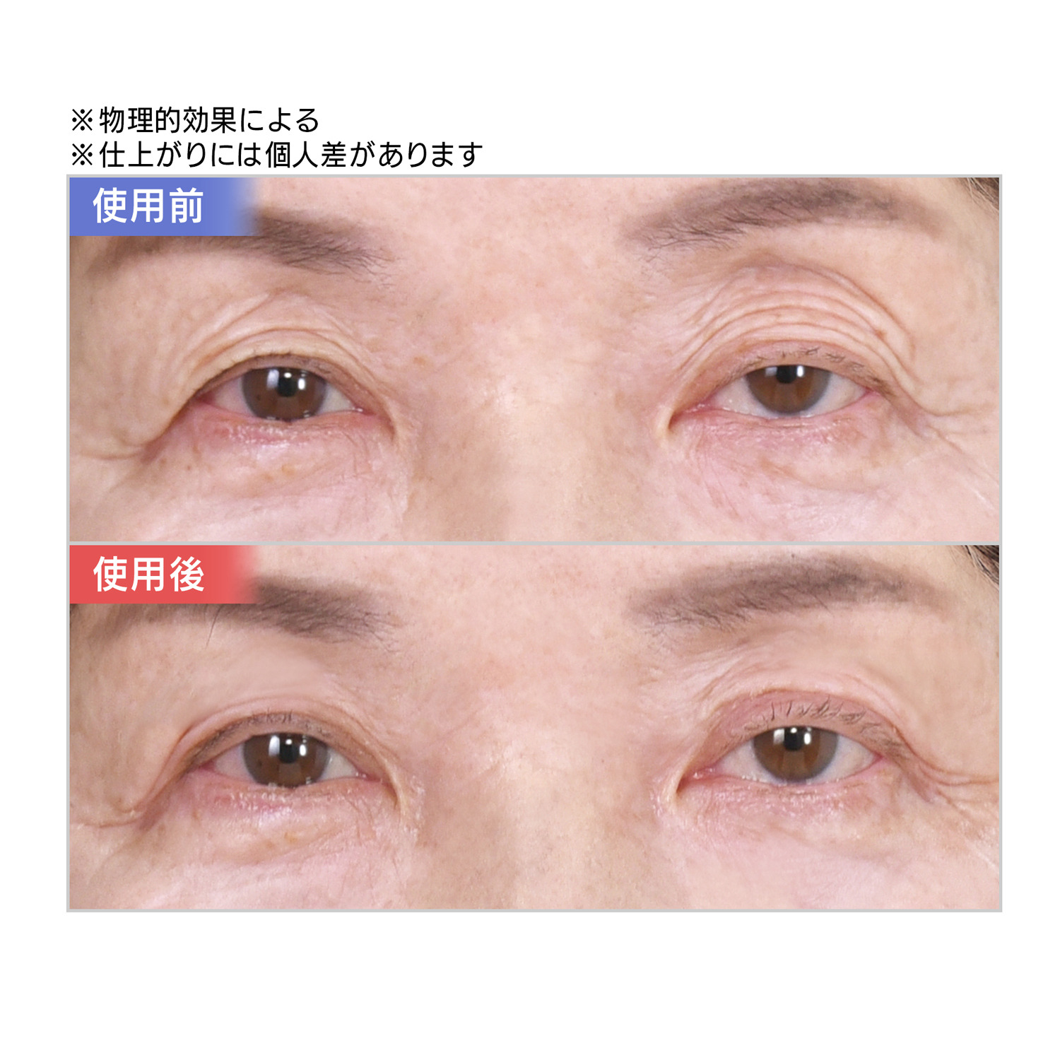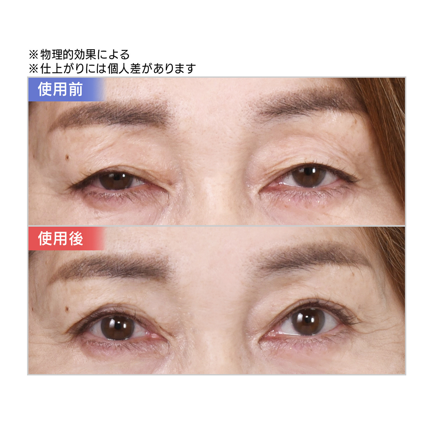 年齢によるお悩みのあるまぶたも瞬時にパッチリ(メイク効果・物理的効果)。