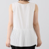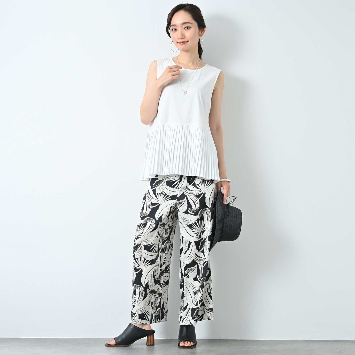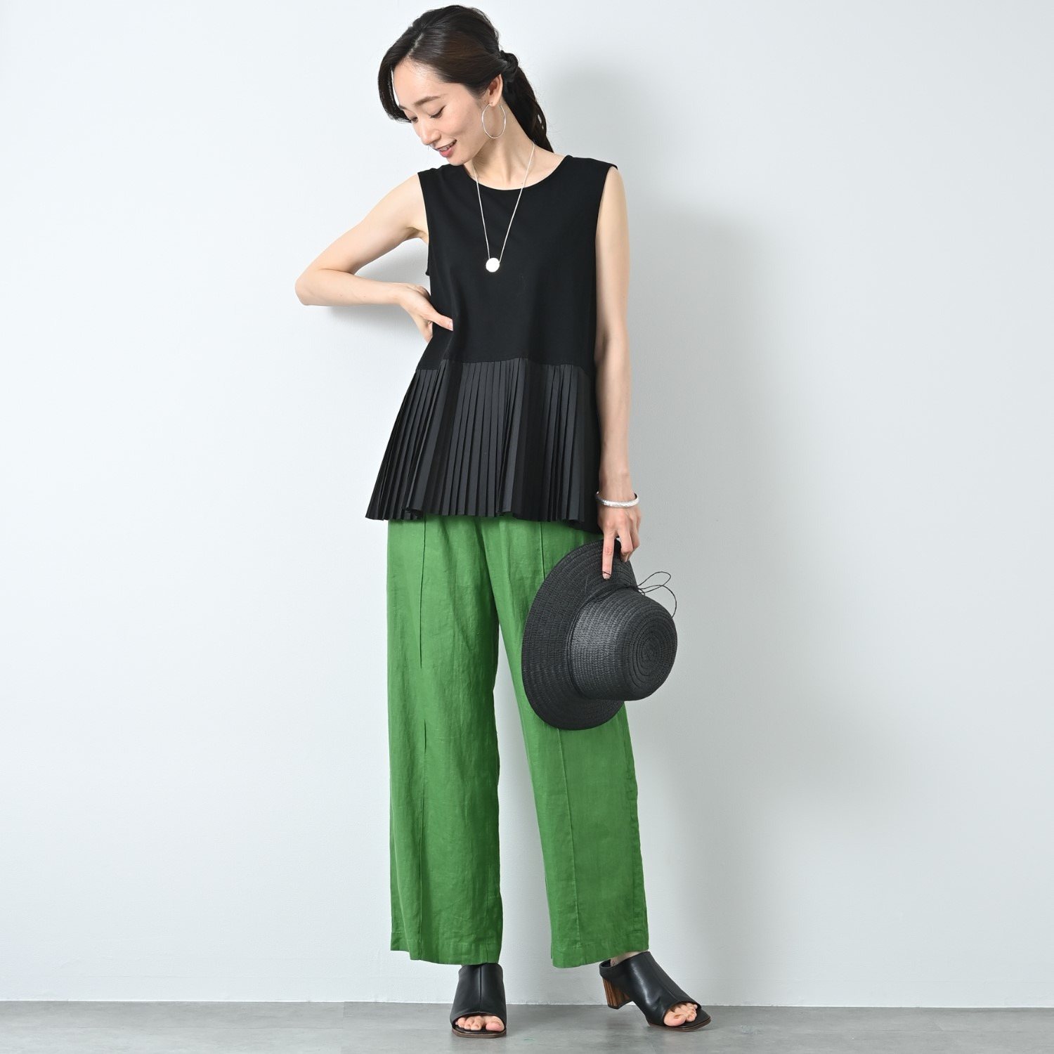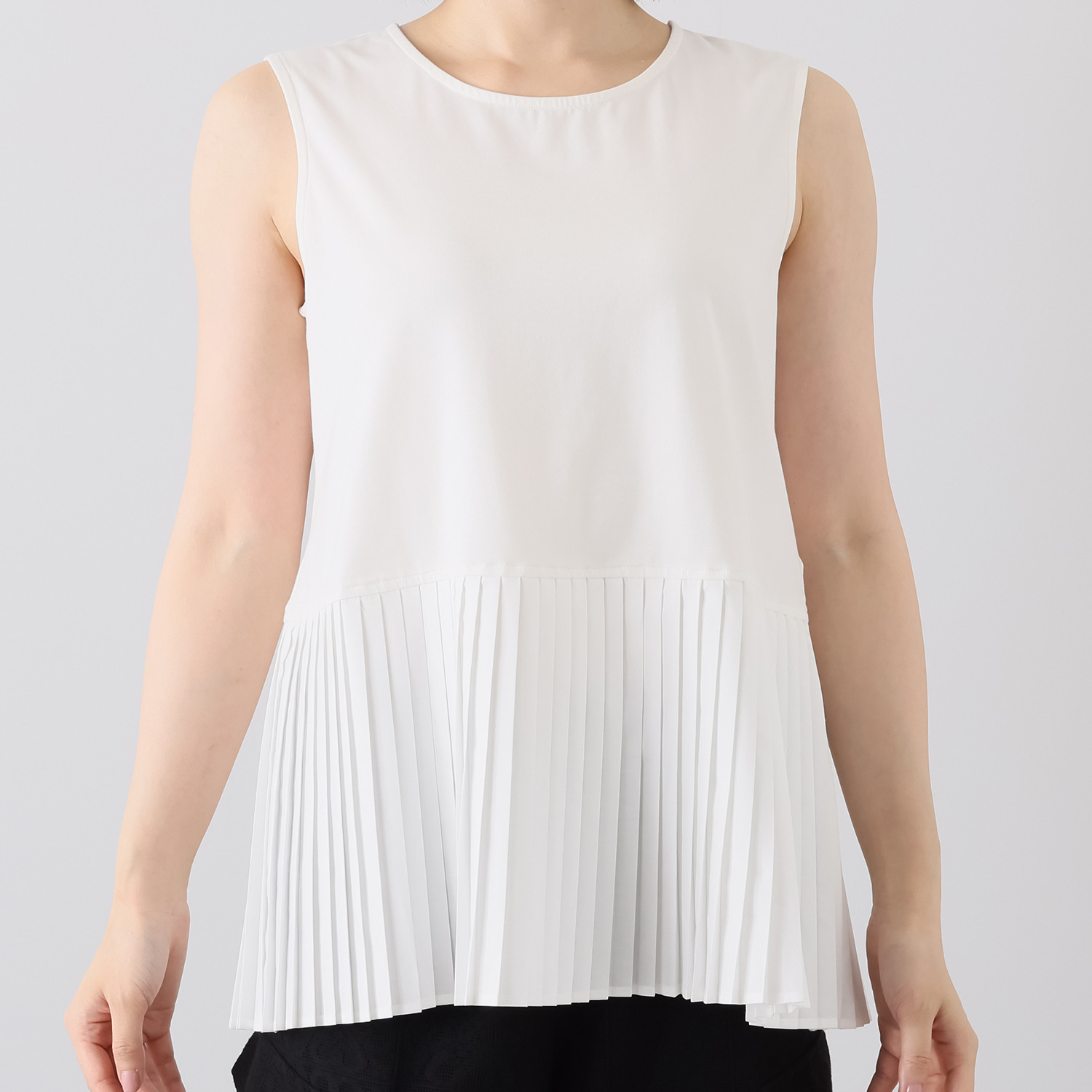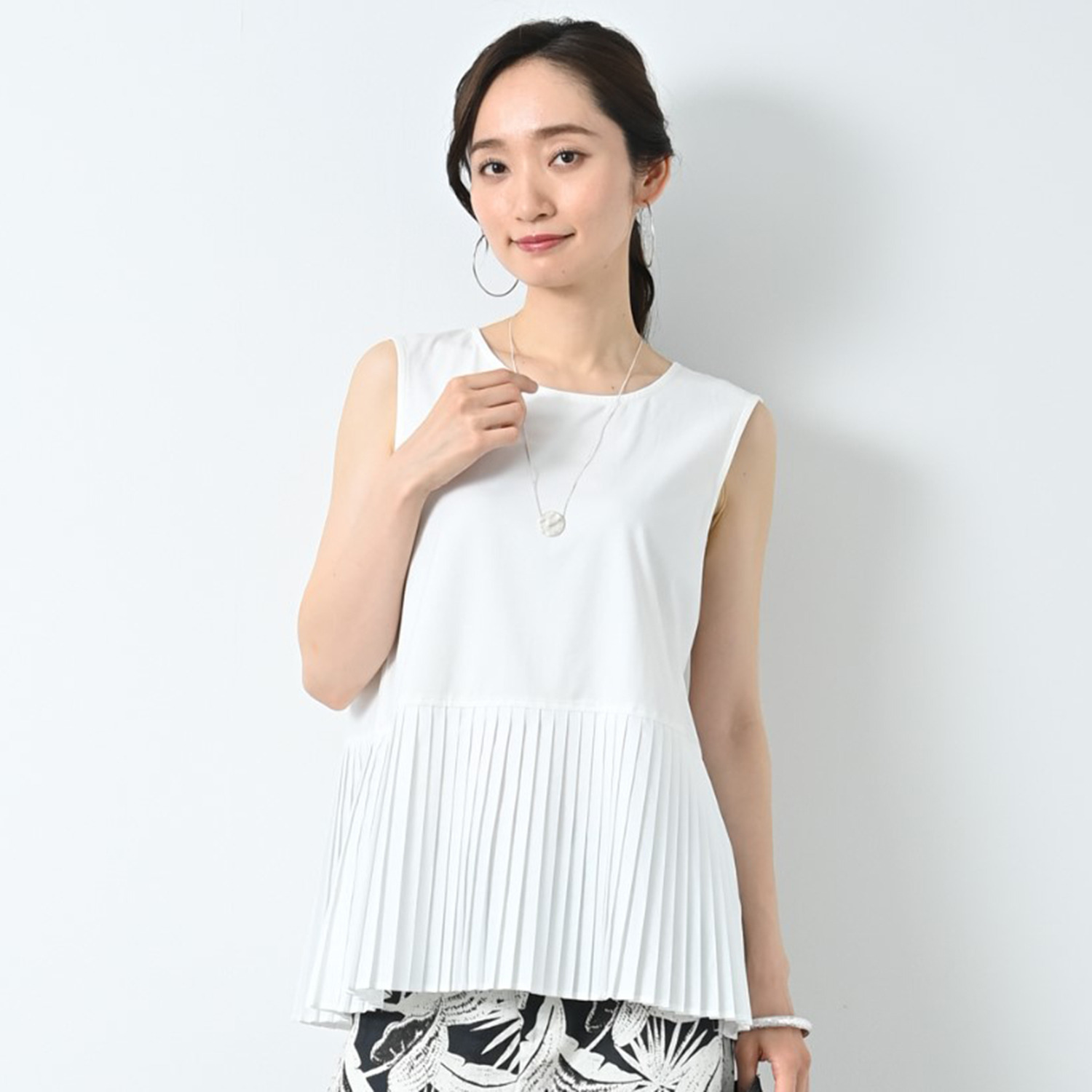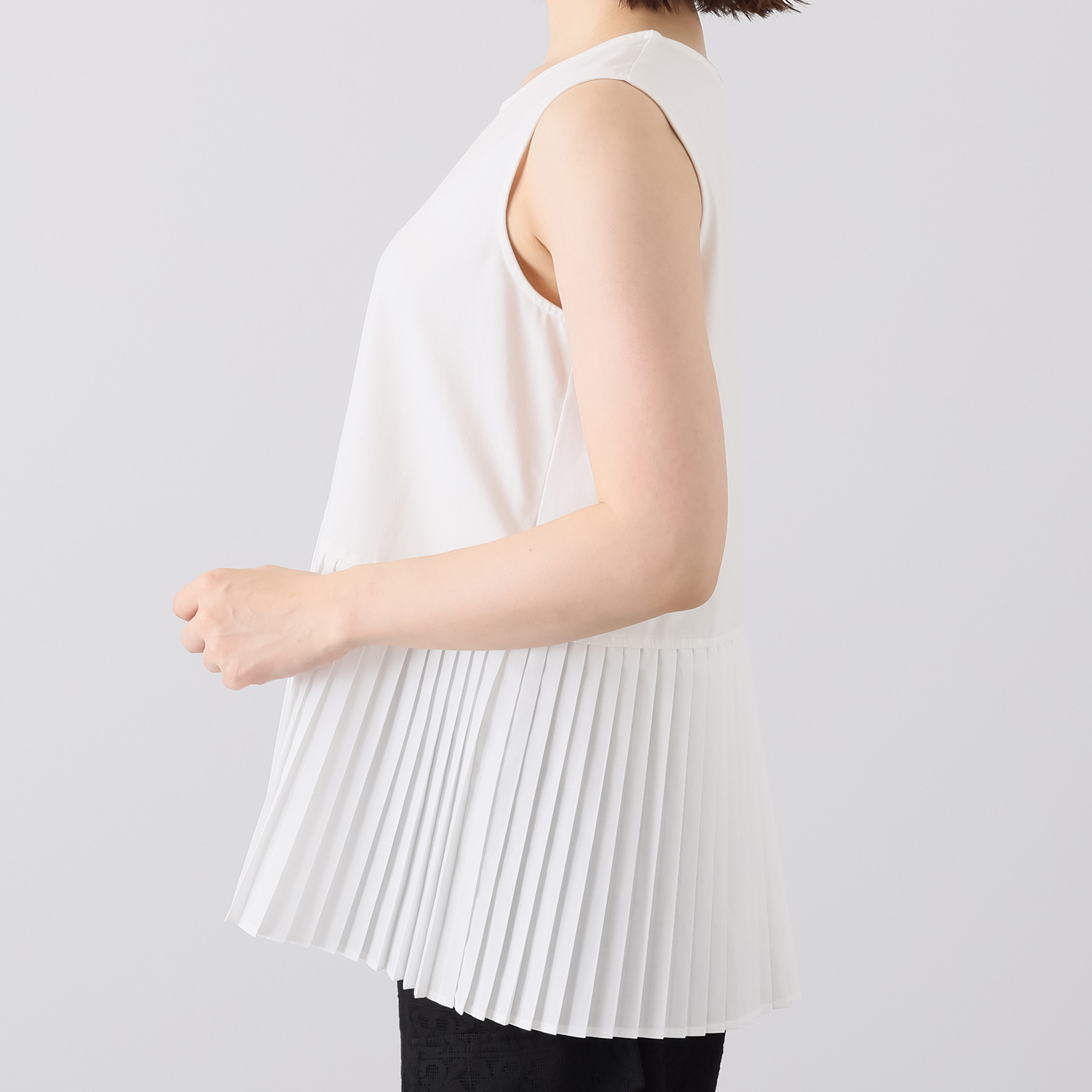 数年前に裾プリーツのデザイン違いのタンクトップを購入していましたた。今回たまたま見て、ラッキー!でした。前回買った物はサイドにしかプリーツかなく、インナーにするにせよ、お腹が隠れない事があり、今回の物は裾全部にプリーツかあり、素敵です。ただ、素材がもう少し涼しい生地ならもっと最高です。ただ、今日、ブラウスのインナーに着ていたのですが、駅のエスカレーターに乗っていた時に、強い風が吹き、プリーツとブラウスが一緒に捲れ上がり、素肌が出そうでした。アブナイ。笑