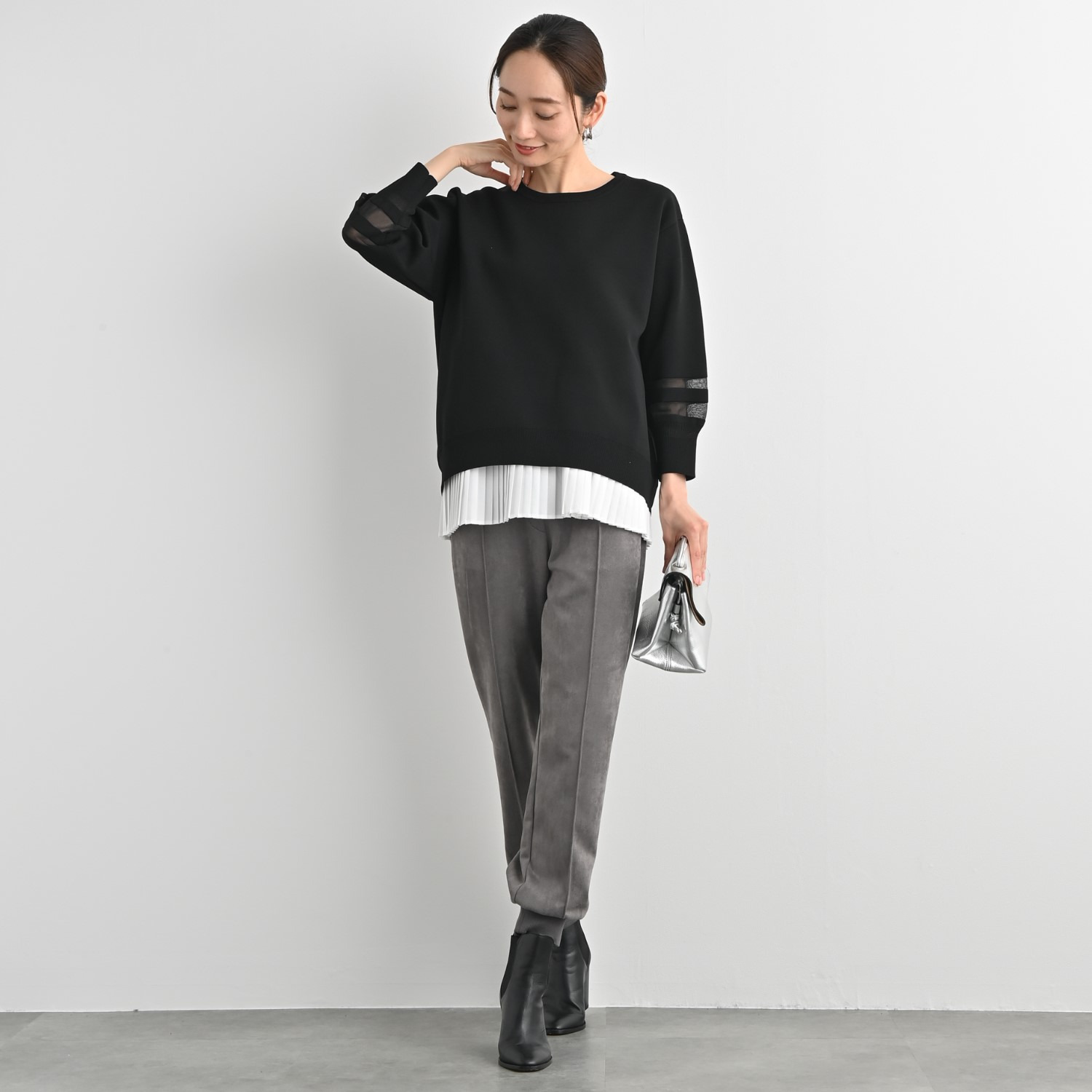織地部分はポリエステルベースの綿混素材で、プリーツ加工が取れにくく、シワになりにくいのがうれしいポイントです。