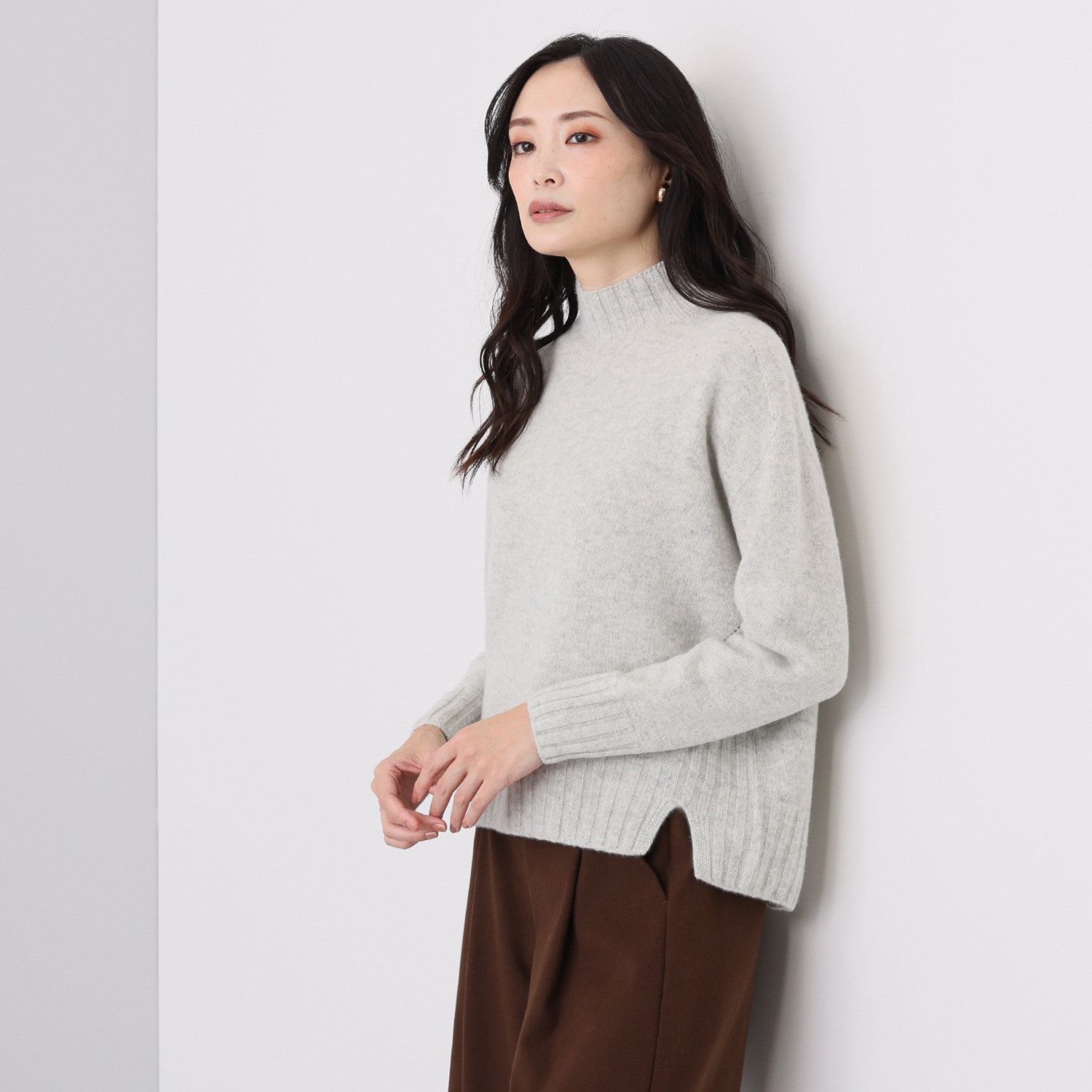 前はやや短めにして脚長効果を、後ろは長めにしてヒップラインをさりげなくカバーする、前後差のある着丈に設定しました。