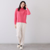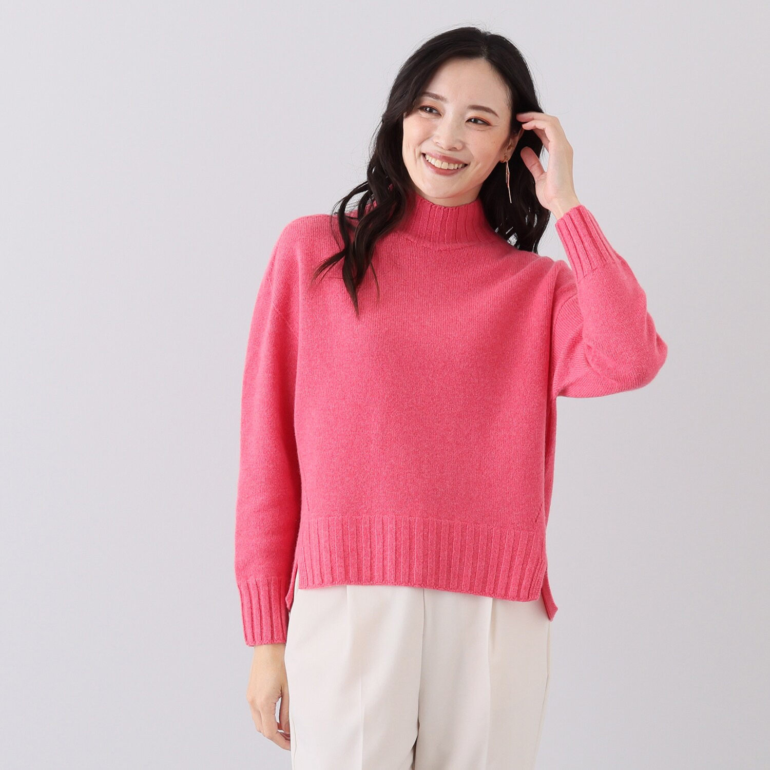 すごく可愛らしい、と言っても子供っぽいことはなく素敵に着られ、顔色がとても綺麗に見えます。通常Lサイズでちょどよいゆとり感です。やや薄手ではありますが、北国では今頃1枚で着るのに丁度良いです。ネックも高すぎないところが着やすいです。