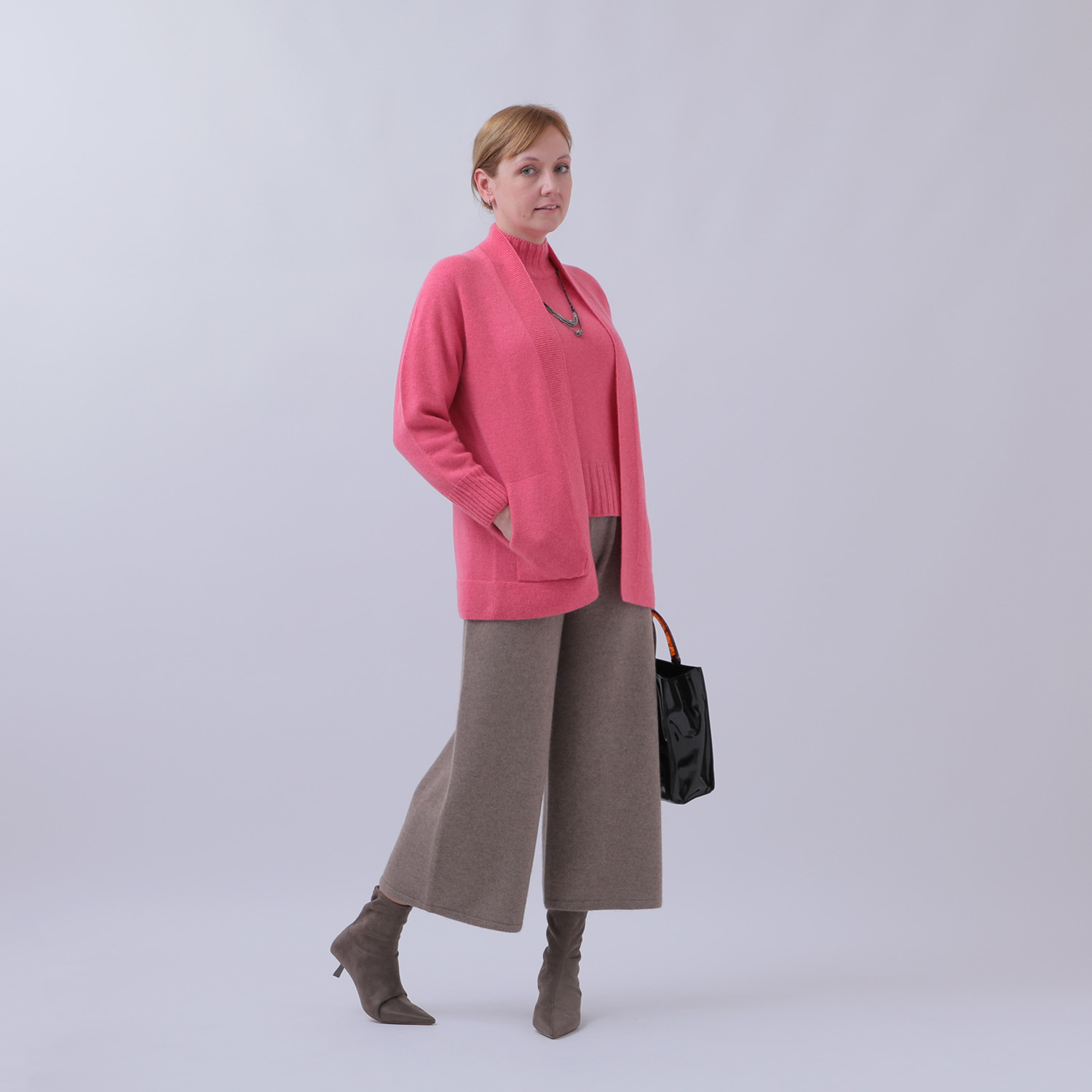 ミドルゲージでボリュームたっぷりに仕上げた暖かな編地が魅力的です。