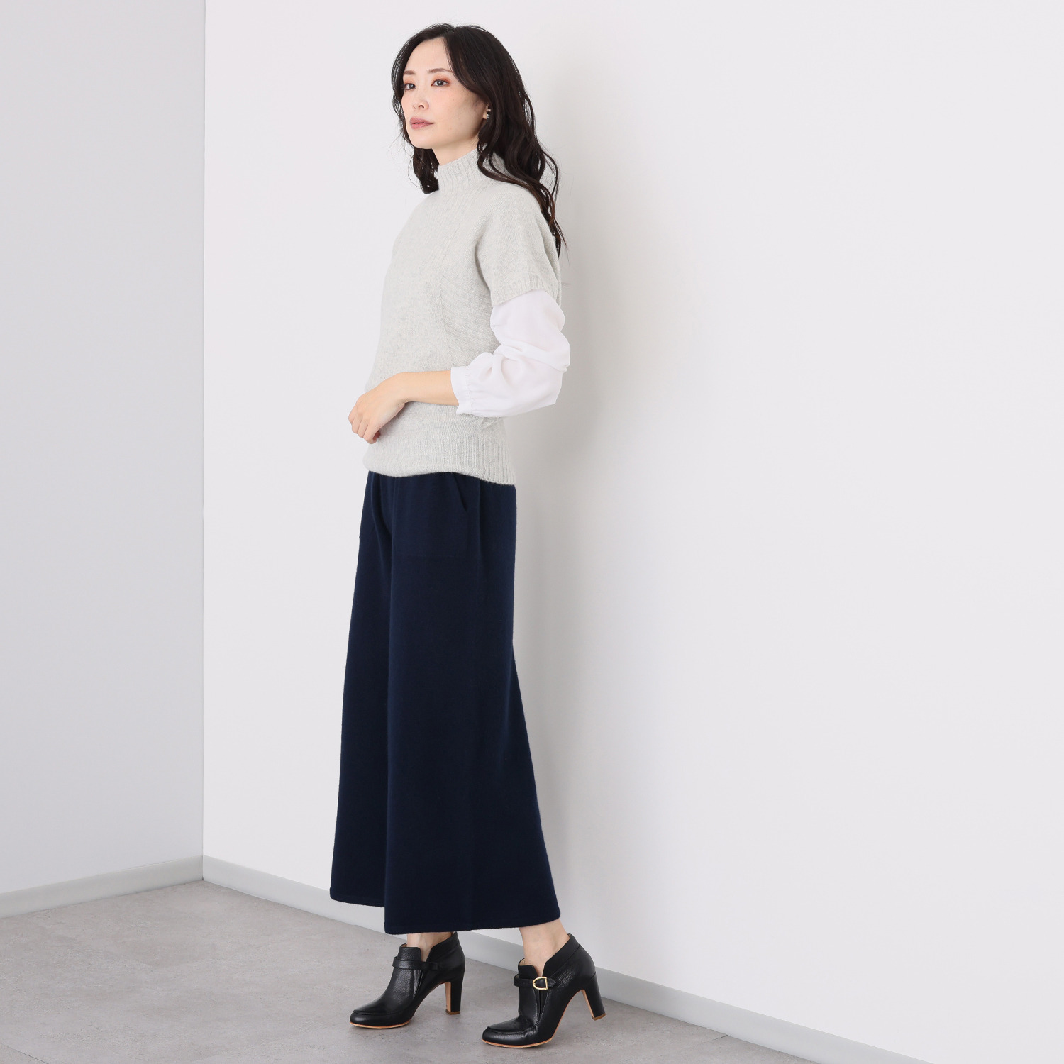 脚のラインを拾いにくい、ゆったりとしたワイドシルエットにデザイン。