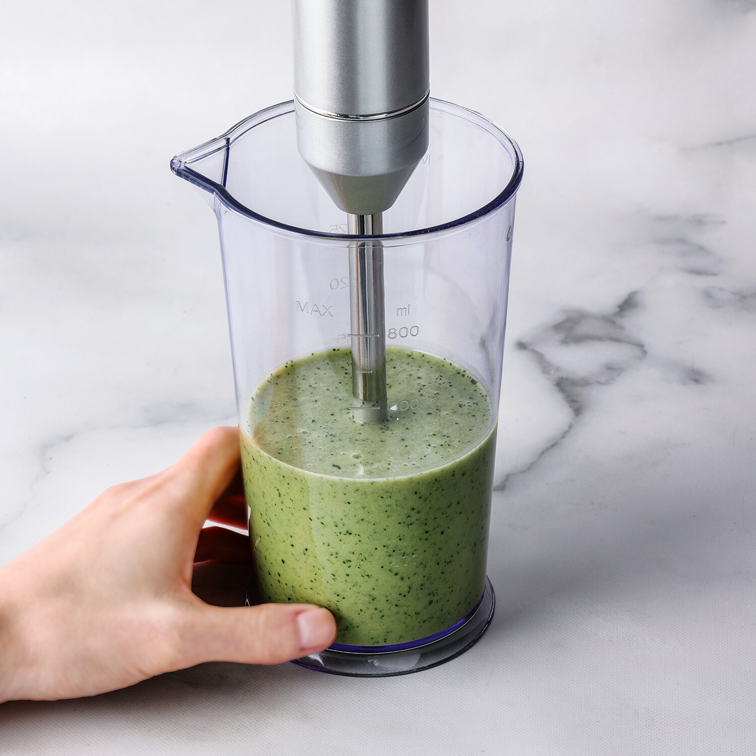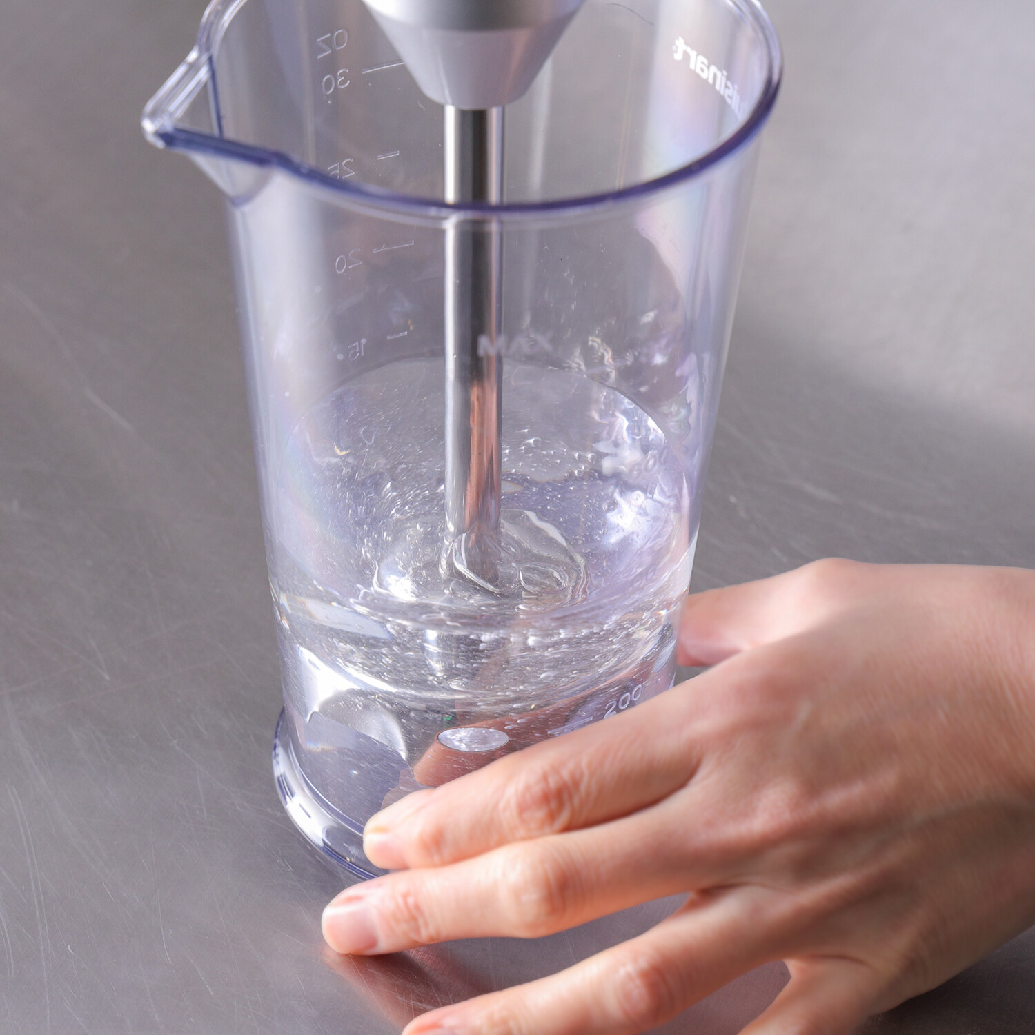3.運転スイッチから指を離し、ブレンダーを容器から出す。