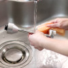 流水で洗剤を流した後、乾いた布で水分を拭き取る。