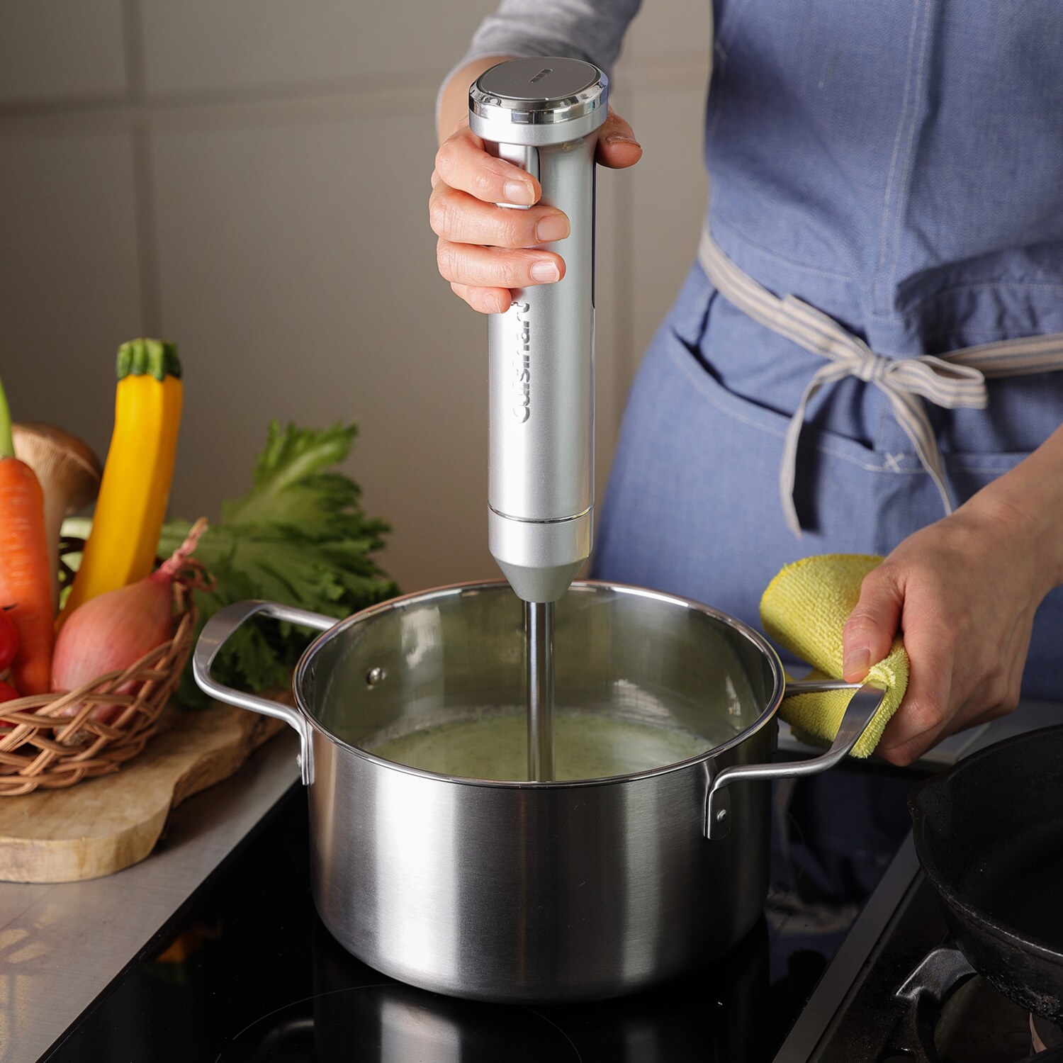 <クイジナート>より、これ一台でスープづくり、スムージーやミックスジュース、料理の下ごしらえなどに活躍するコードレスハンドブレンダーをご紹介です。