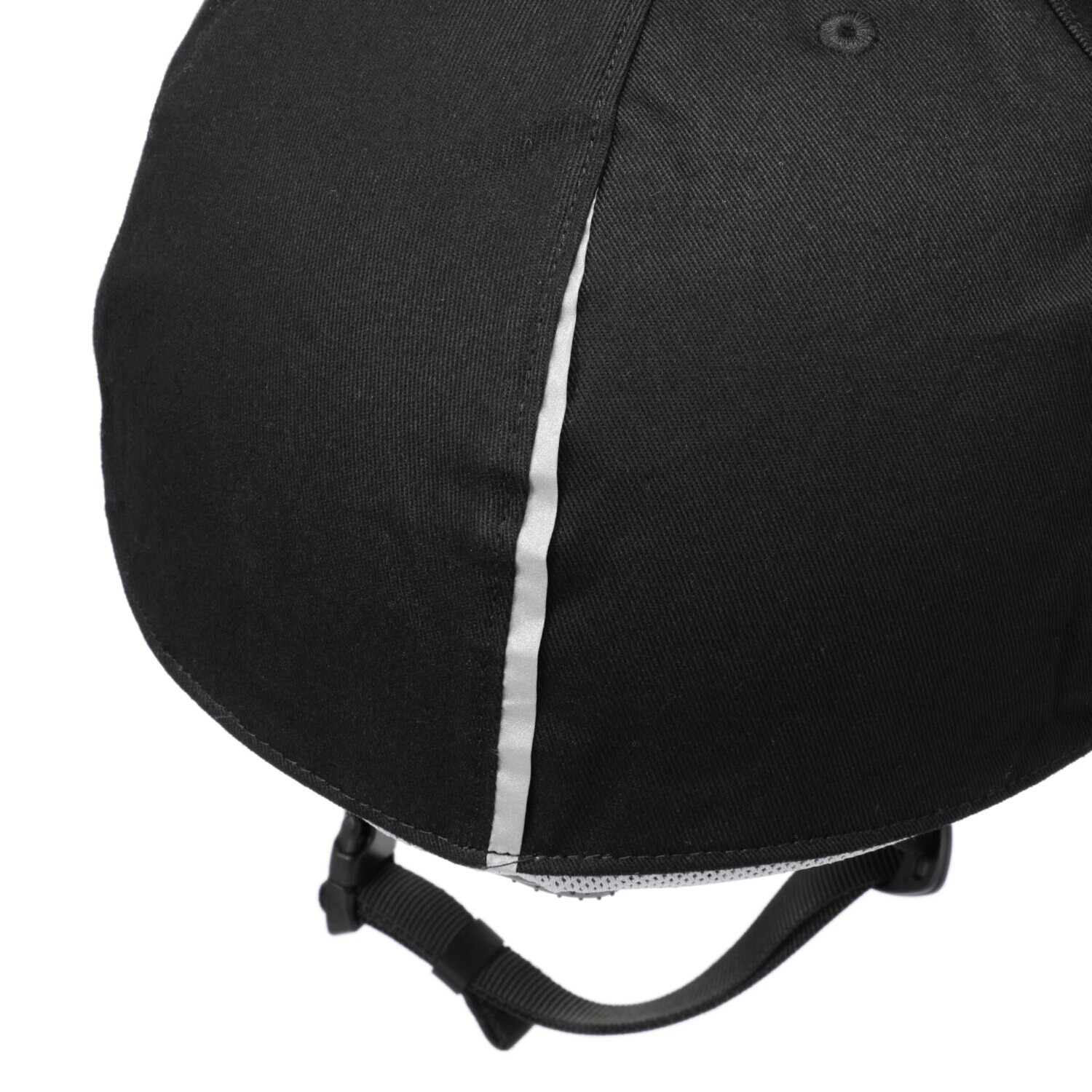帽子の部分がヘルメットに付けると、調整する紐があるが、付けたら全然調整出来ない。自転車で走っていると帽子がずれてくる。ヘルメットを取る時、そういう状態なので帽子が落ちた。もう購入して使用してるので、帽子とヘルメットの間に両面テープでなんとかしのいでいる。