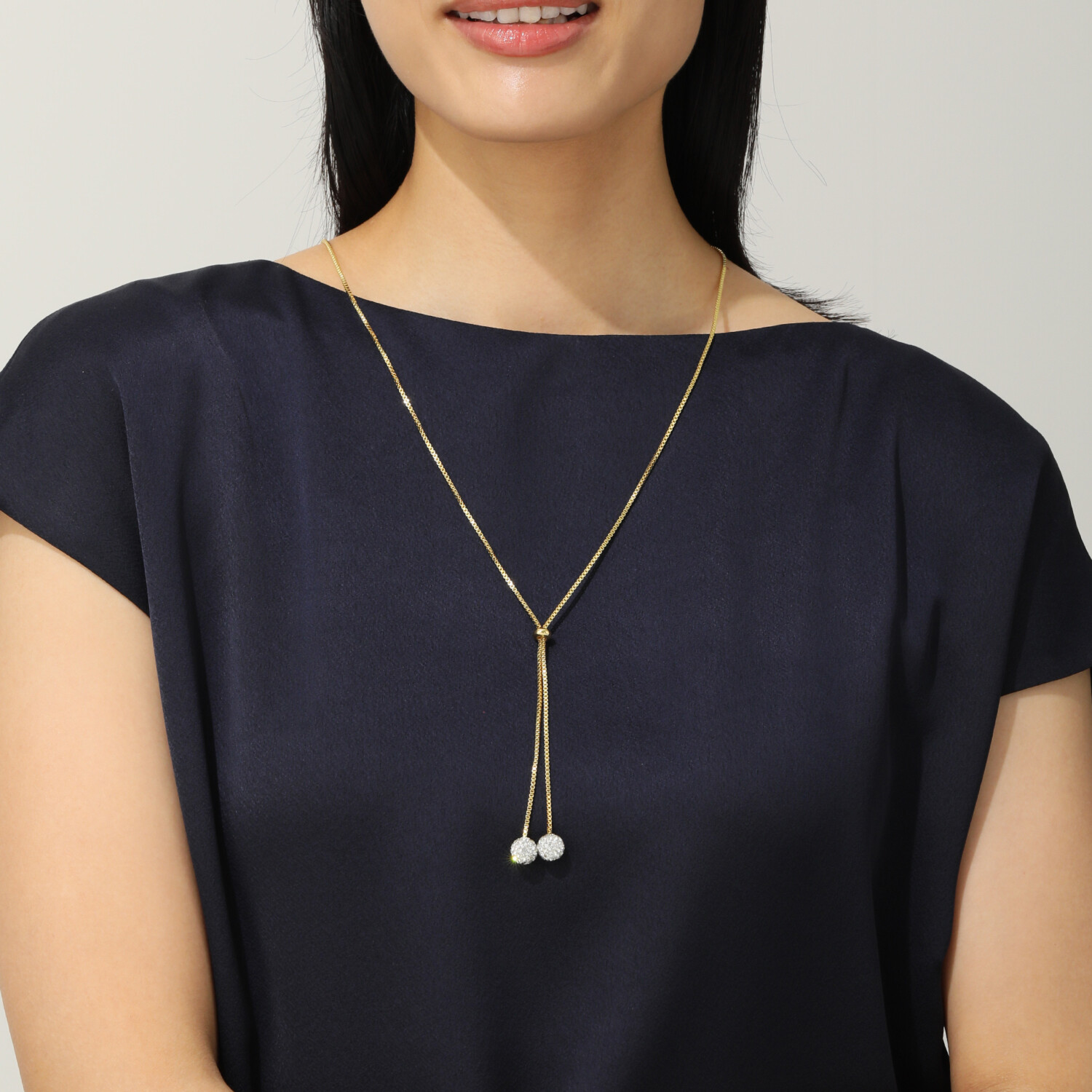 ミラーボールをあしらった、Y字スライドロングネックレスです。