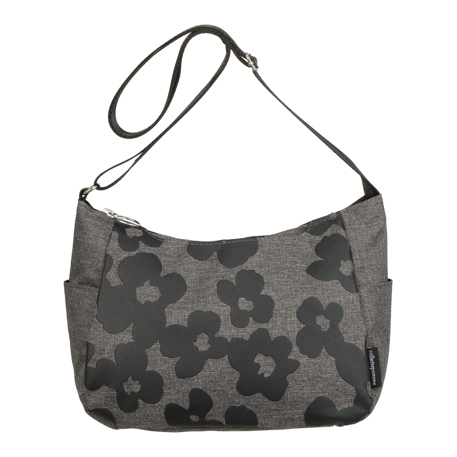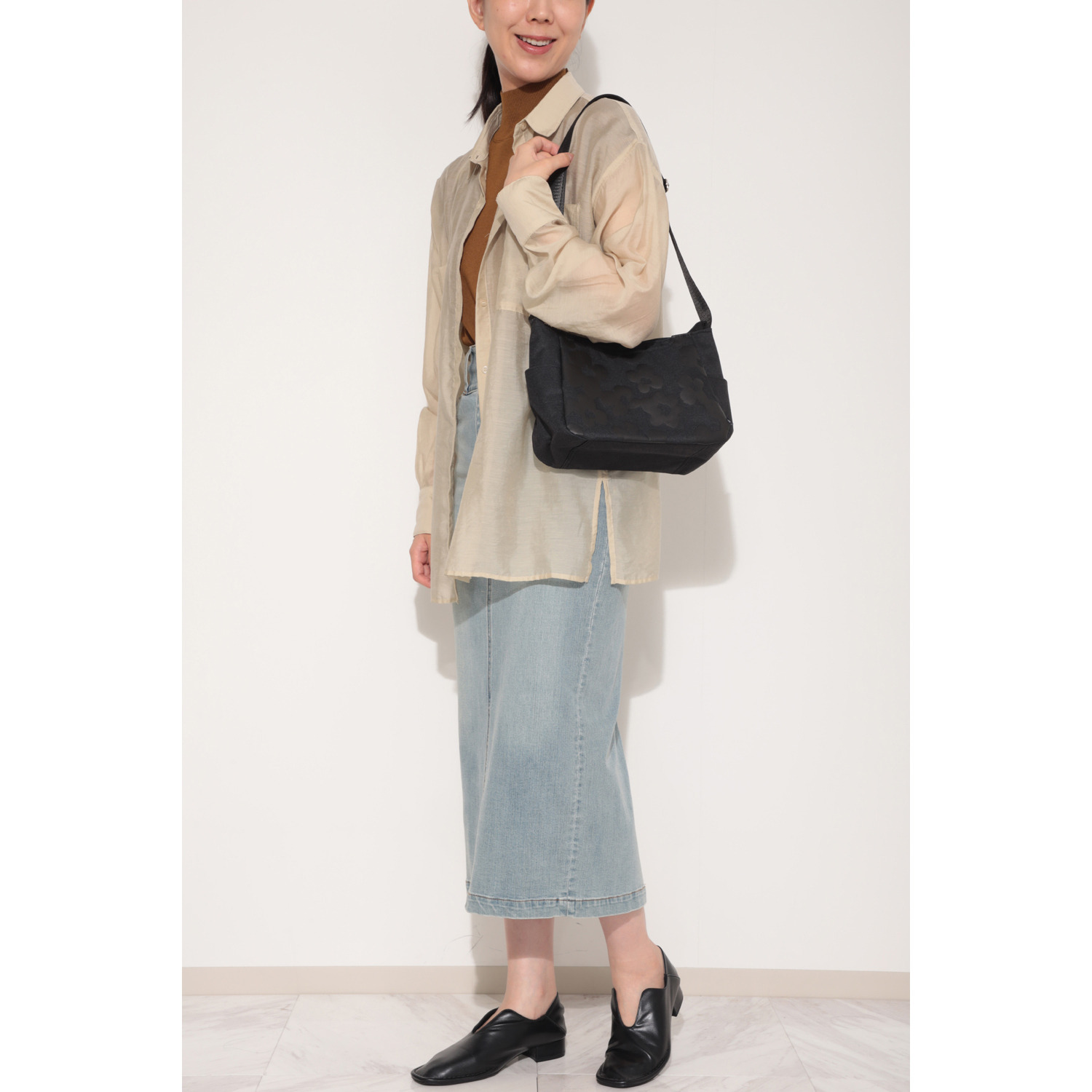 ラバープリントの花柄が目を惹くおしゃれなデザイン。使い勝手の良いサイズ感で、毎日のお供にぴったり。