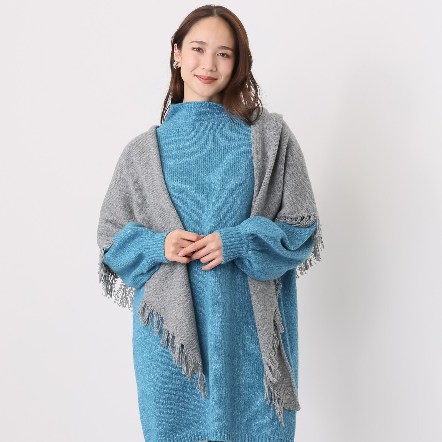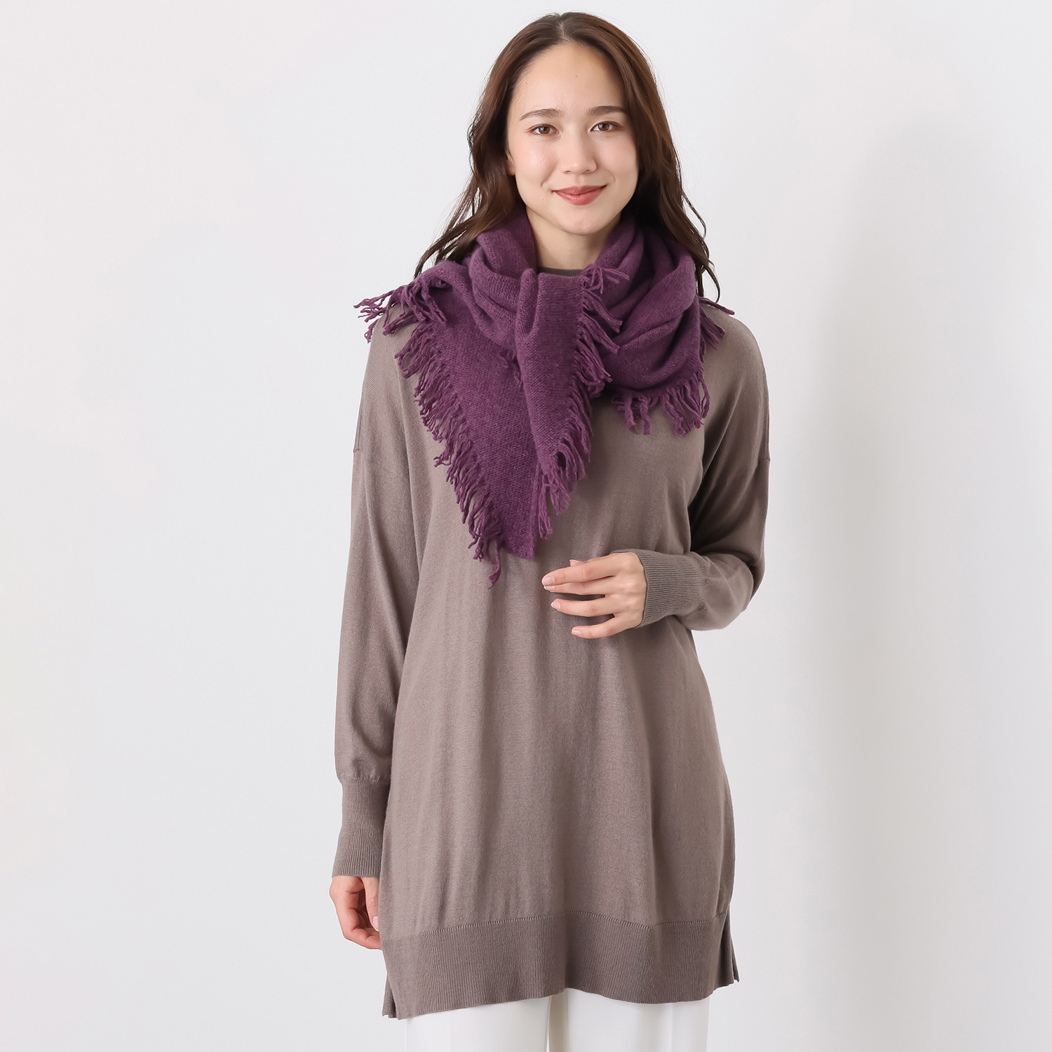 ジョナータ <イタリア製> ウールカシミヤ混 ソフトニット フリンジ付 トライアングルストール