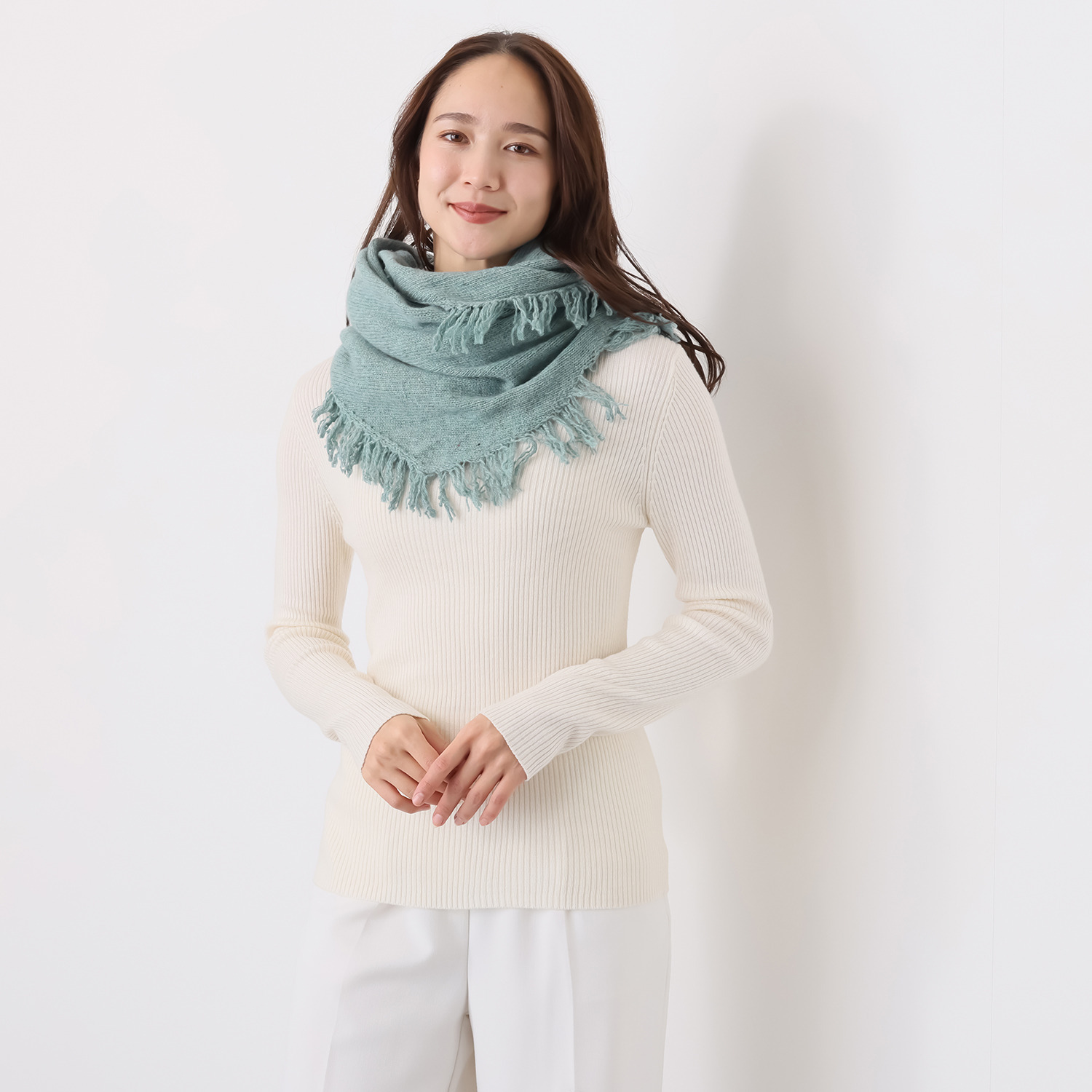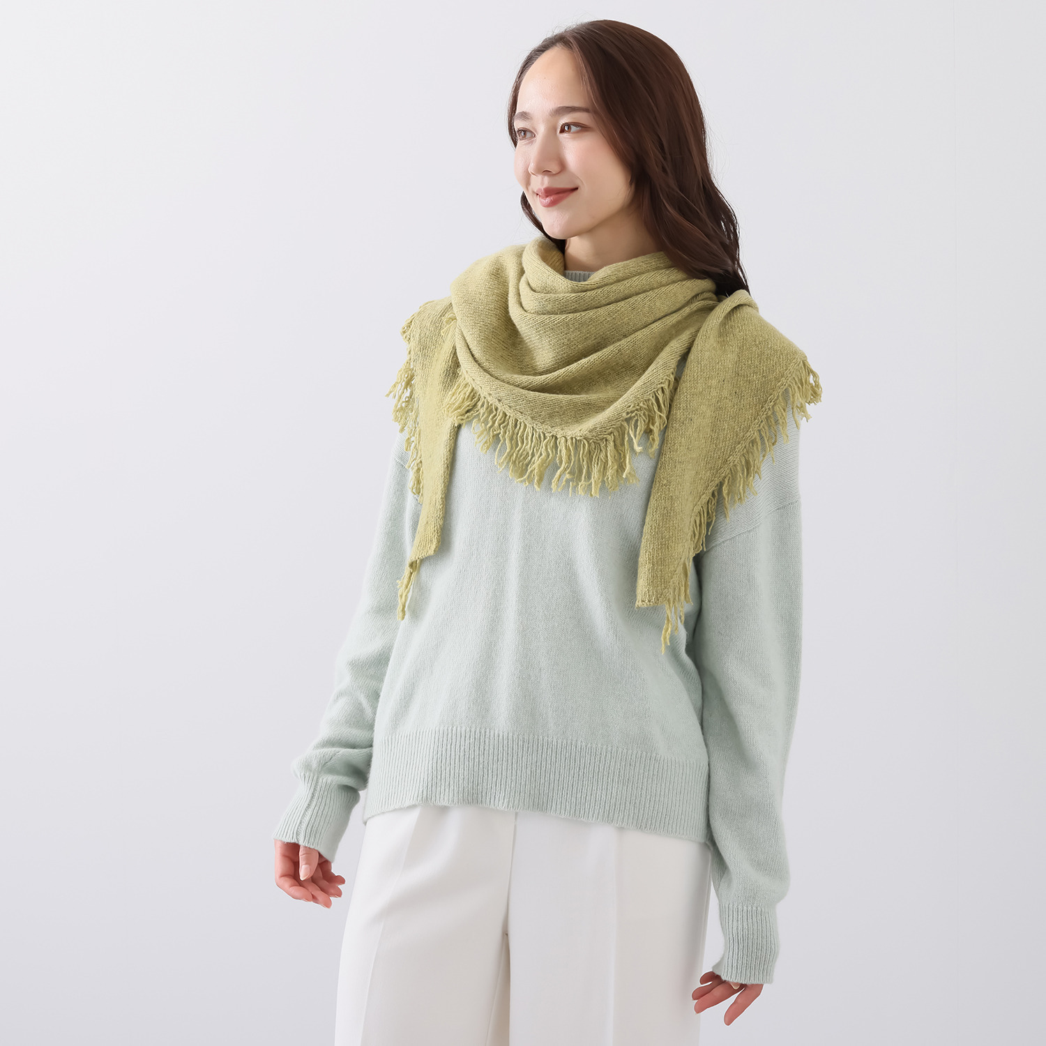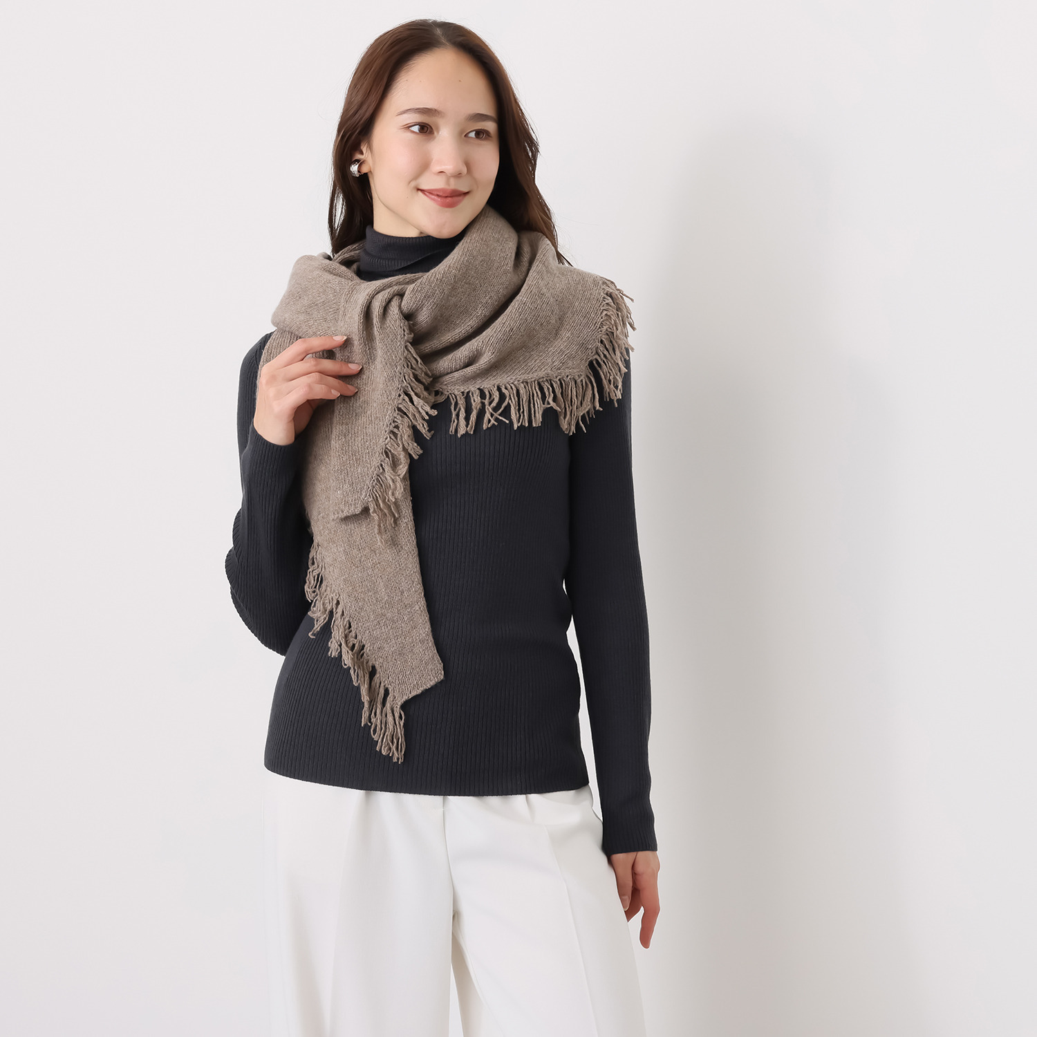 一般的な長方形のストールよりコンパクトながら、肌触りが良く、包まれるような暖かさを楽しめます。