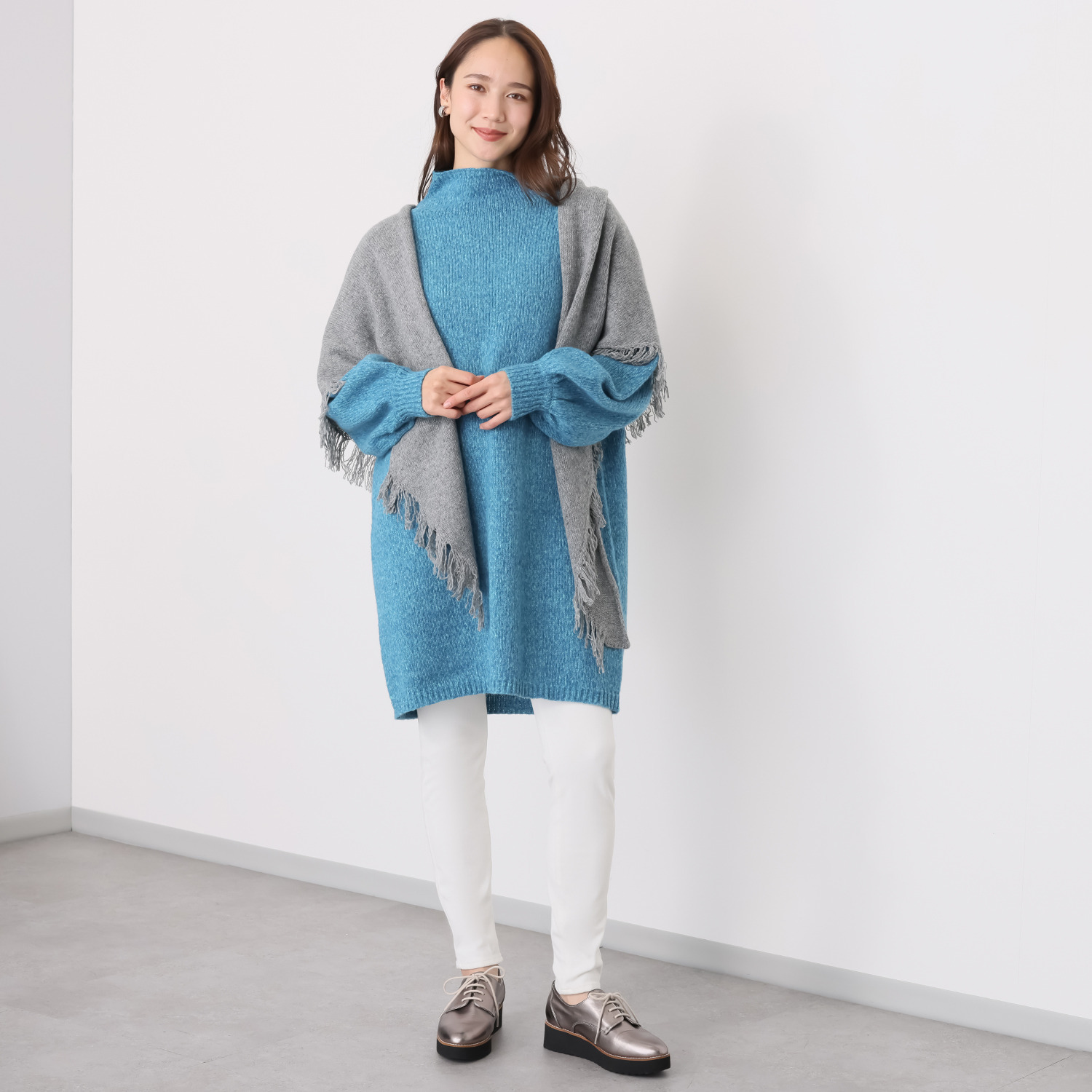 襟元に巻いても肩に掛けても、ファッショナブルに着こなせます。