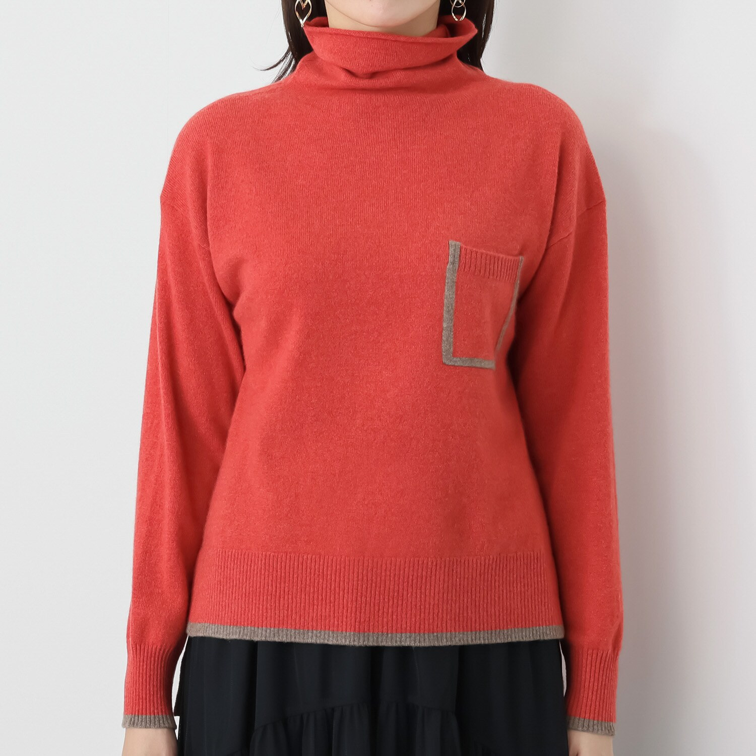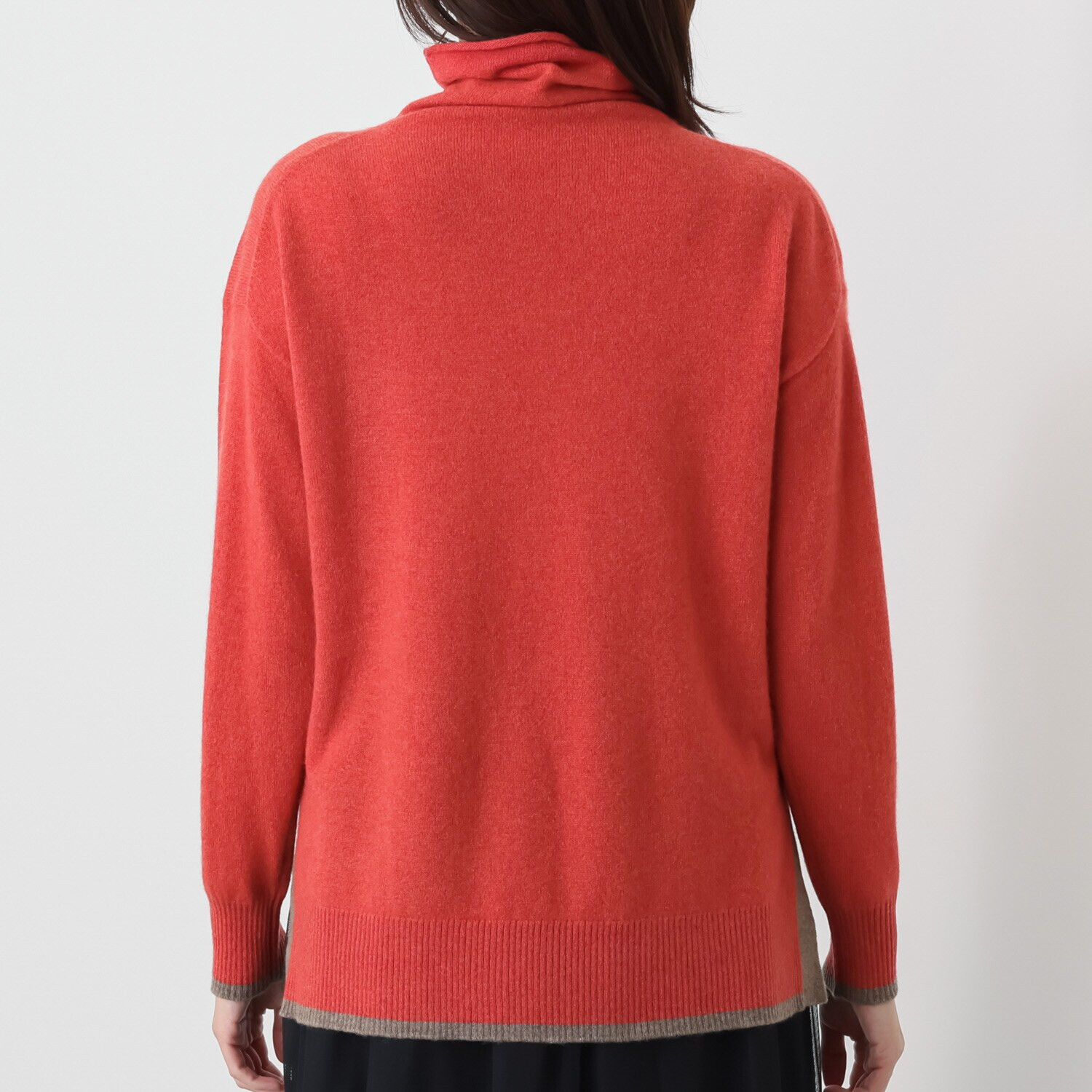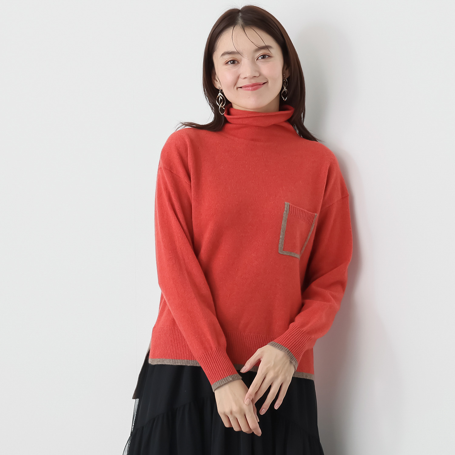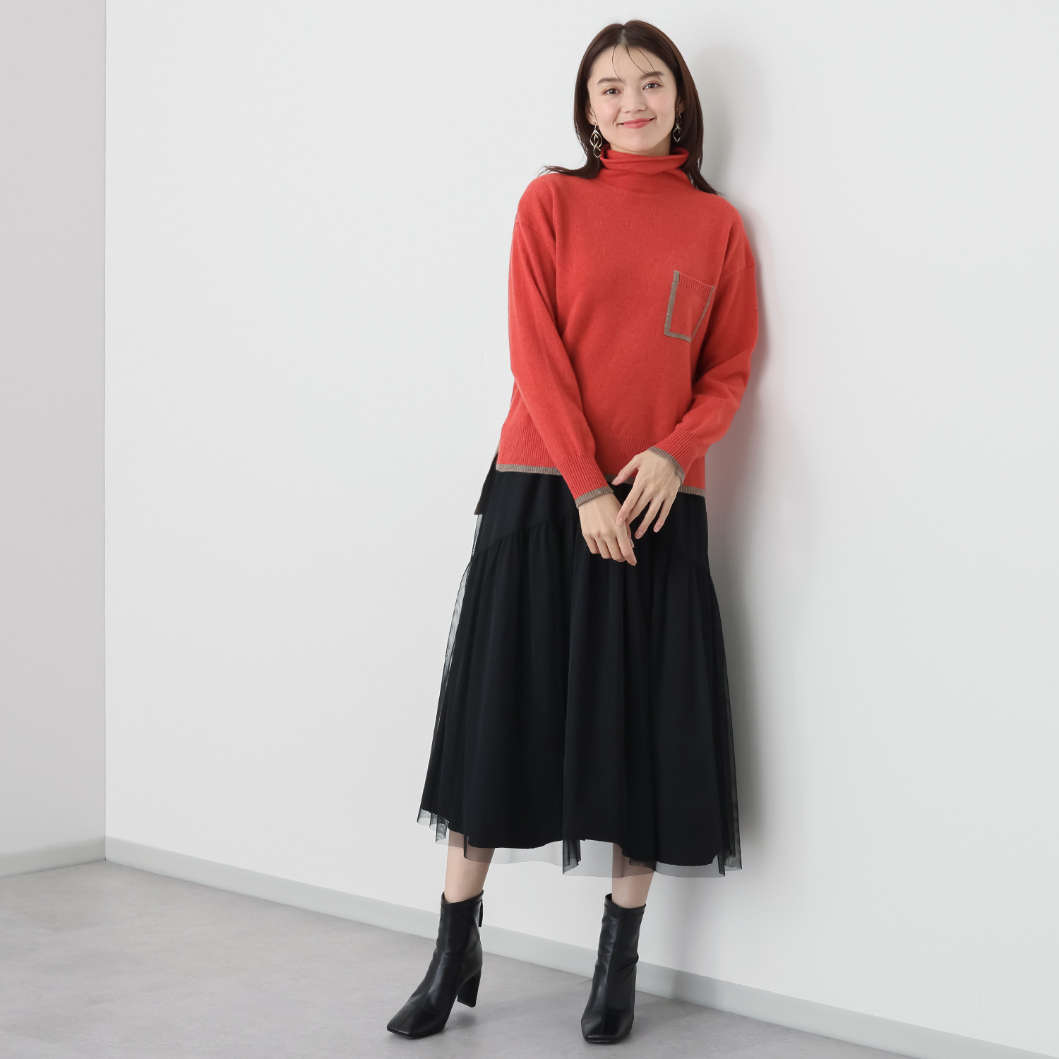 首元をさりげなくカバーしてくれるオフタートルネックは、伸ばしてゆるっと着用したり、折り返してハイネック風にしたり、アレンジが効きます。