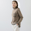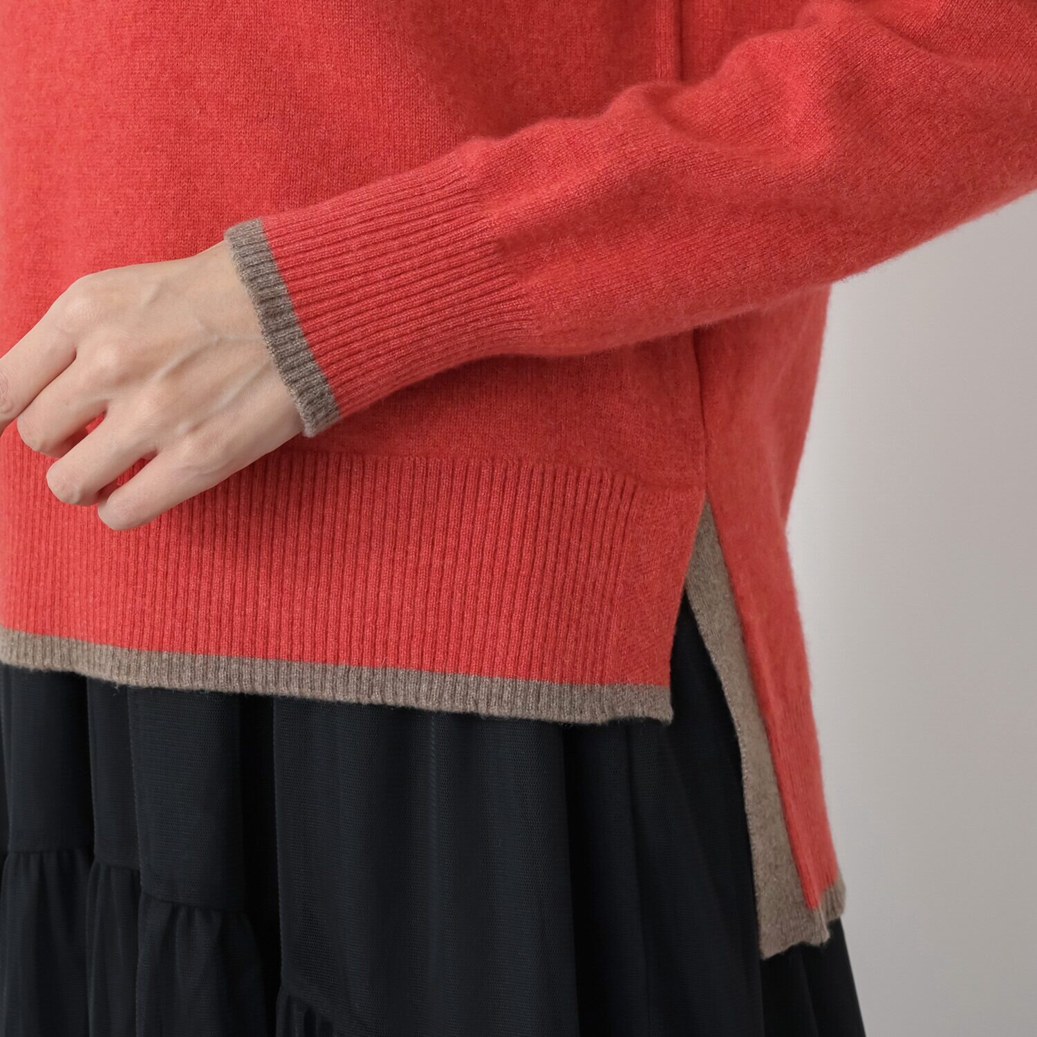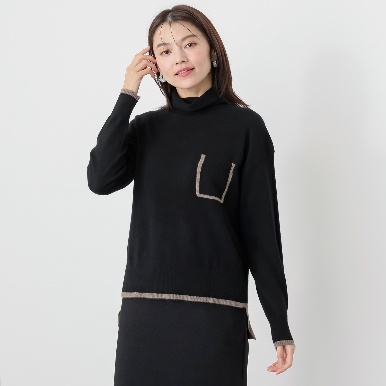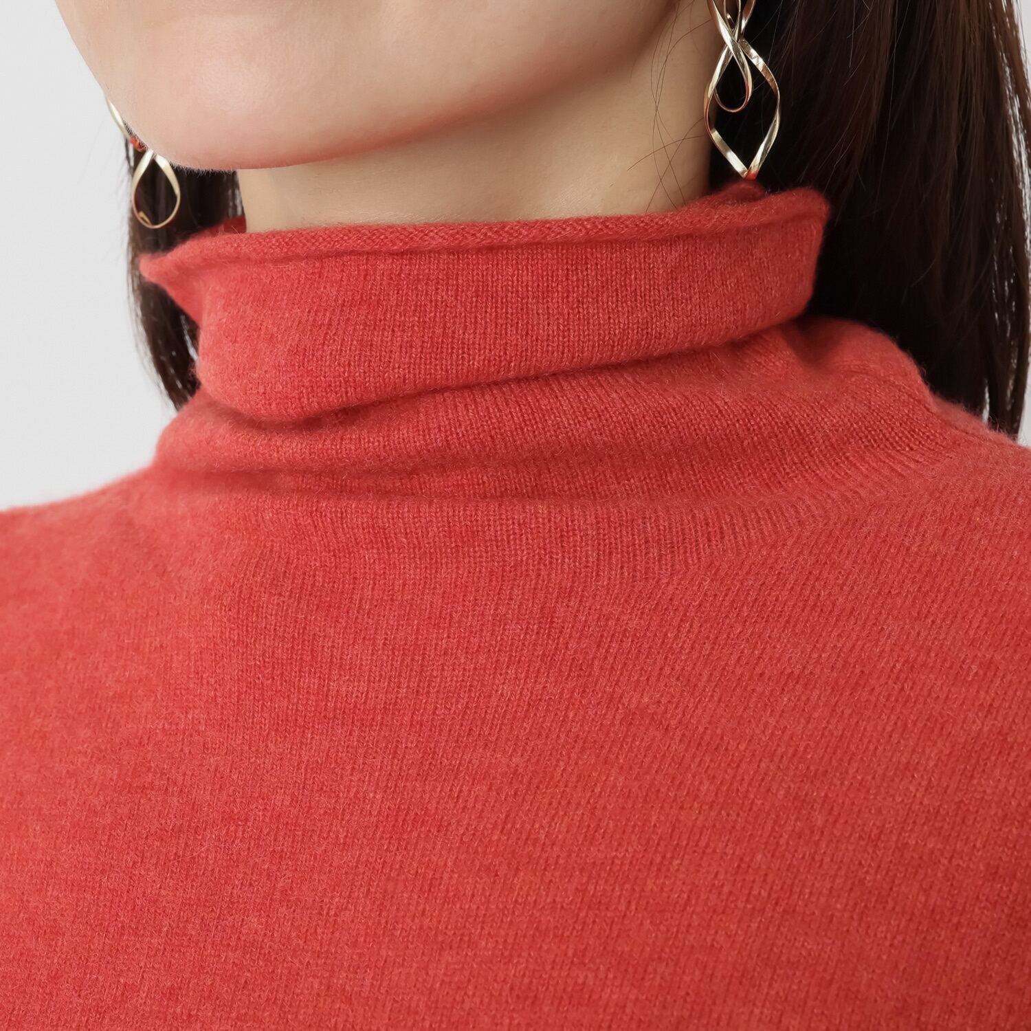 首元をさりげなくカバーしてくれるオフタートルネックは、伸ばしてゆるっと着用したり、折り返してハイネック風にしたり、アレンジが効きます。