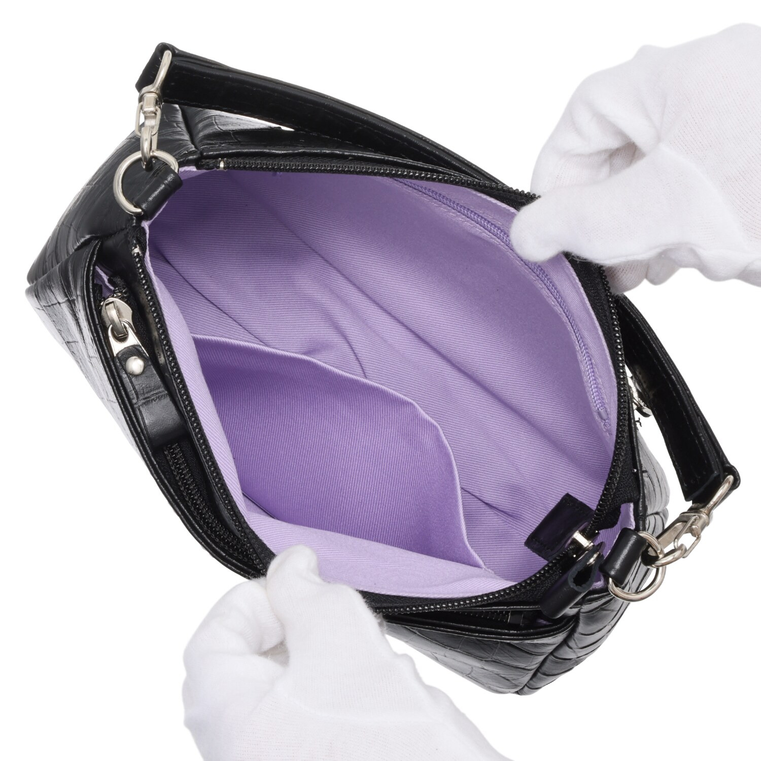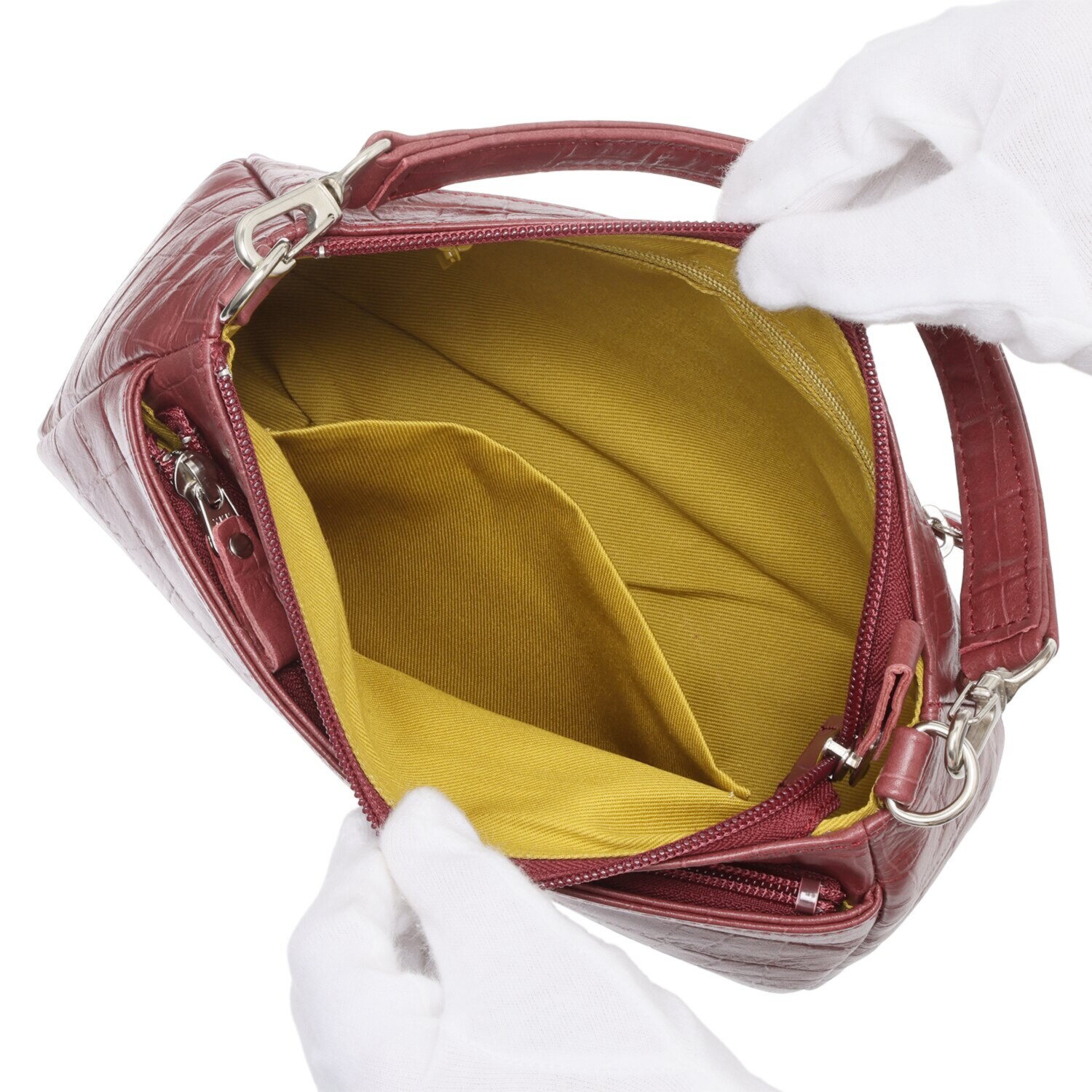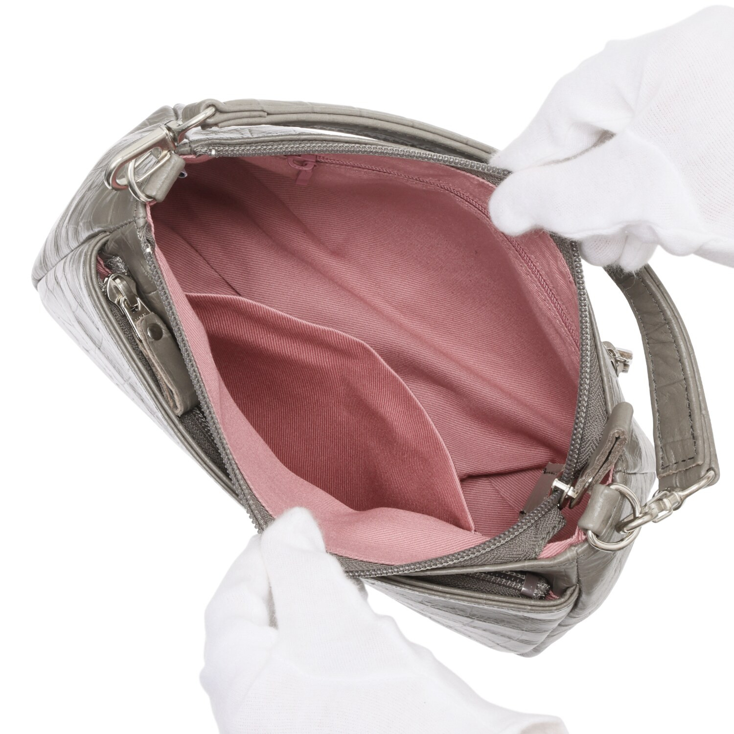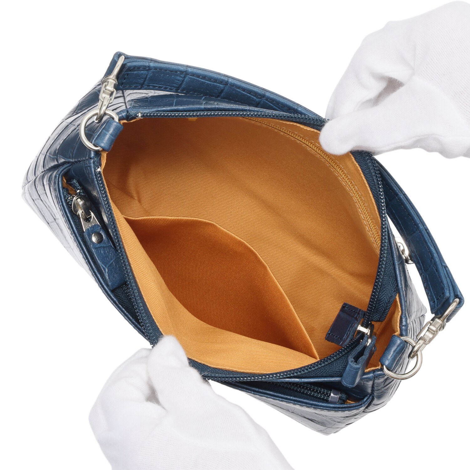 日本製のソフトな牛革に高級感のあるクロコダイル型押しをほどこしました。
