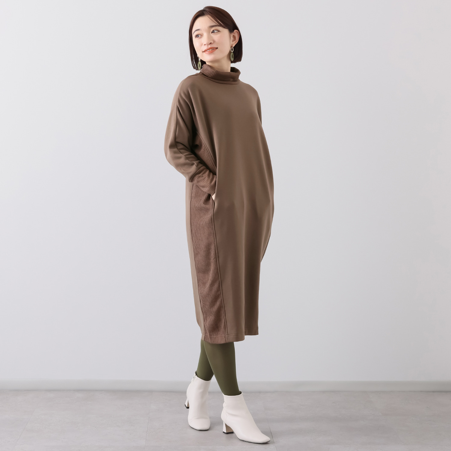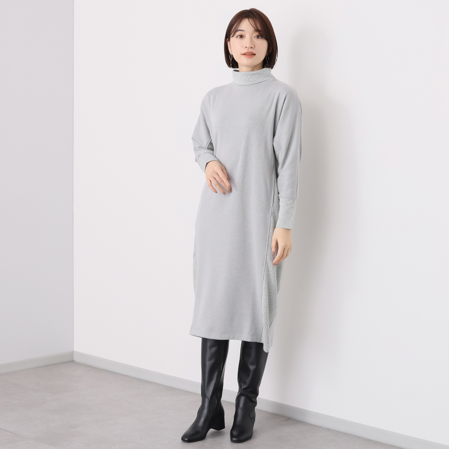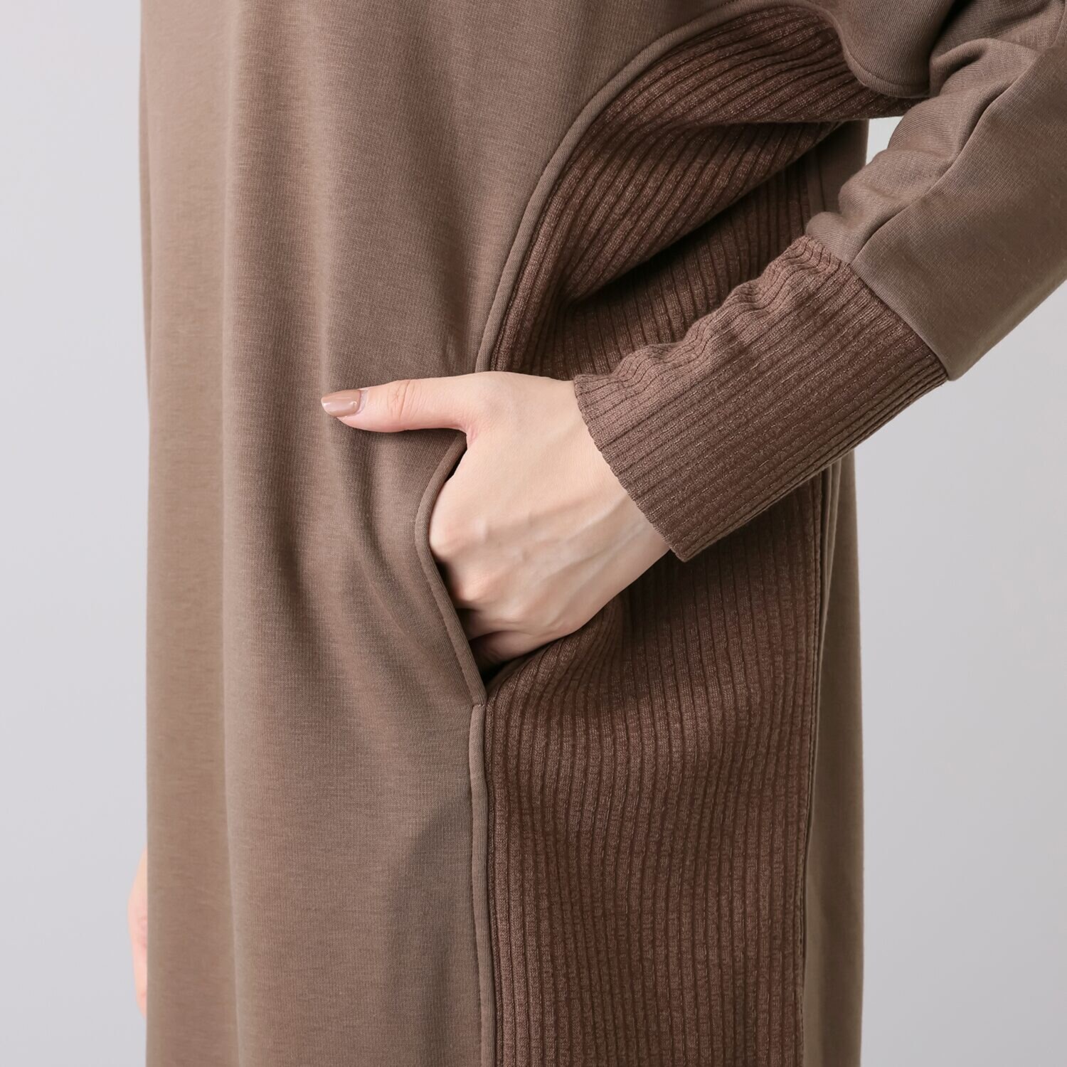 袖下やアーム部分はリブニットで切り替え、着心地の良さを高め、両脇をリブニットで切り替えることで、引き締まった印象を演出しました。