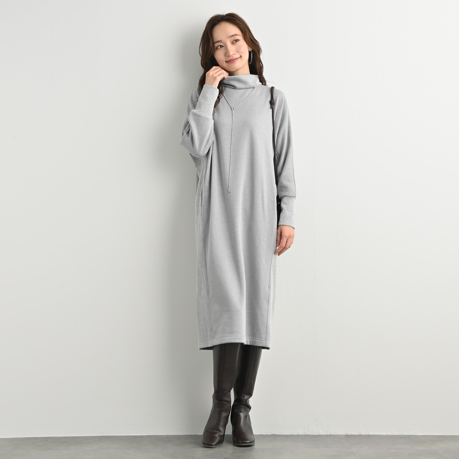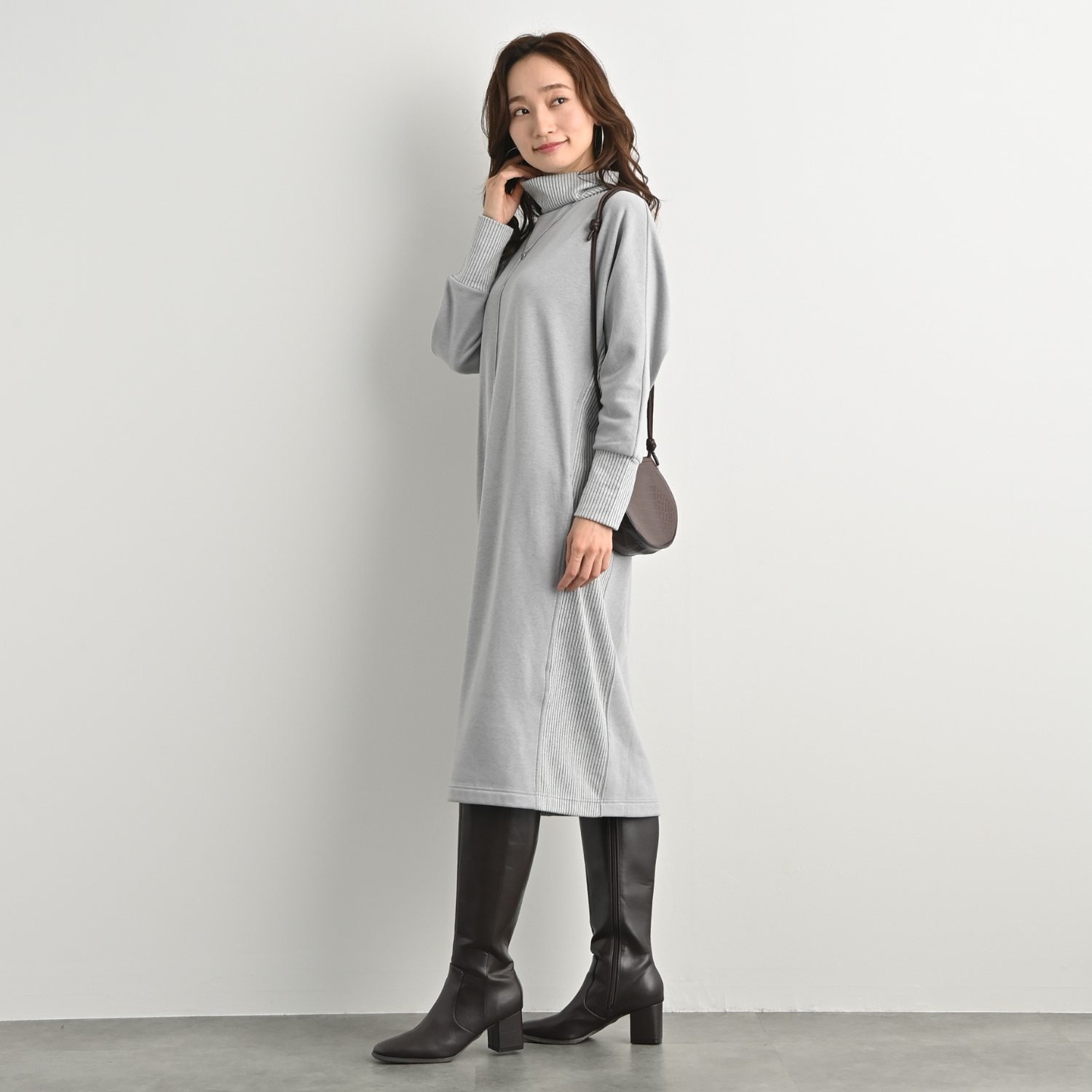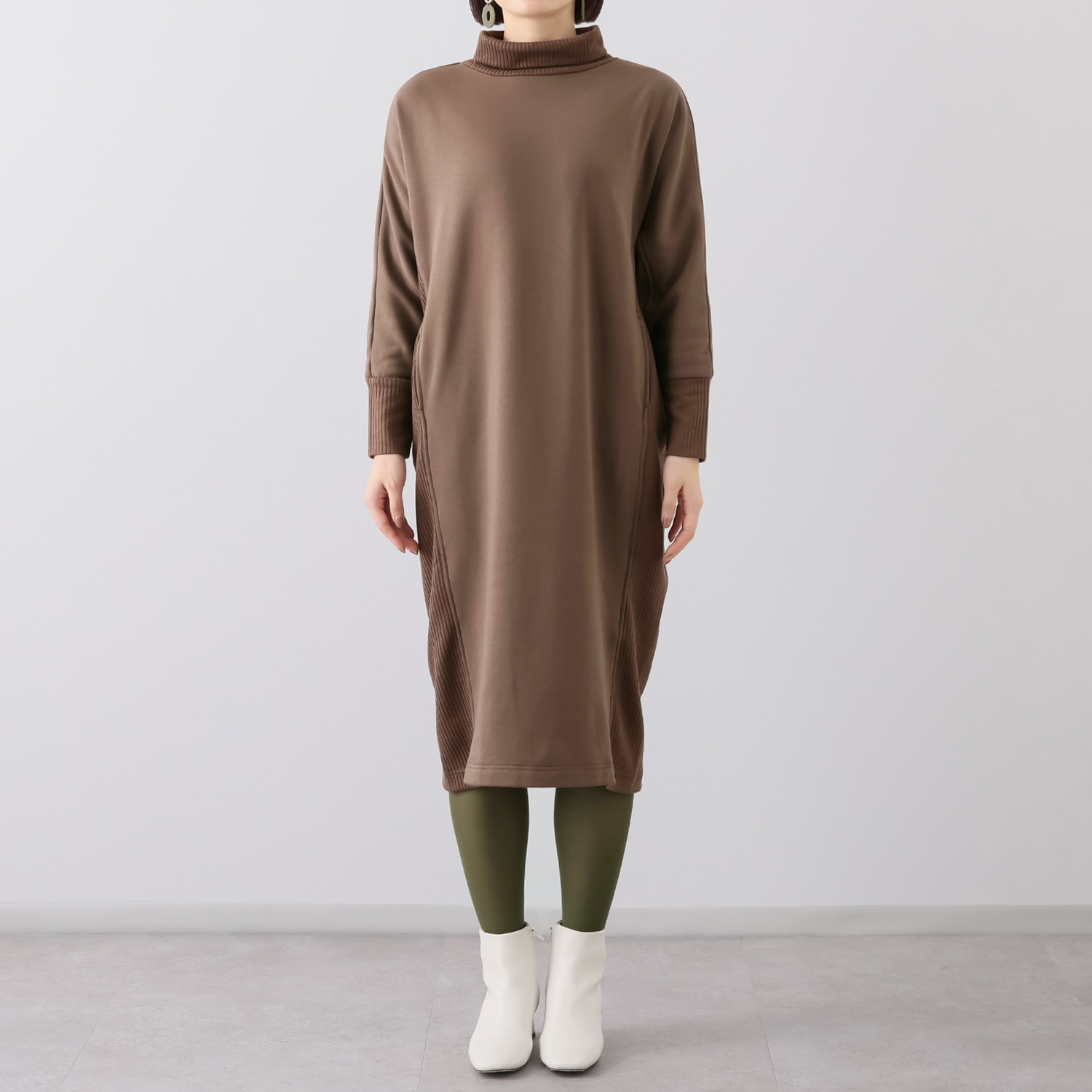 袖下やアーム部分はリブニットで切り替え、着心地の良さを高め、両脇をリブニットで切り替えることで、引き締まった印象を演出しました。