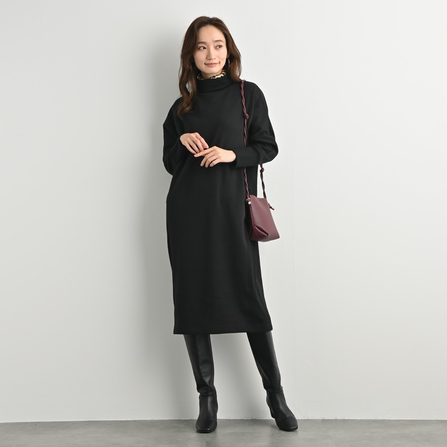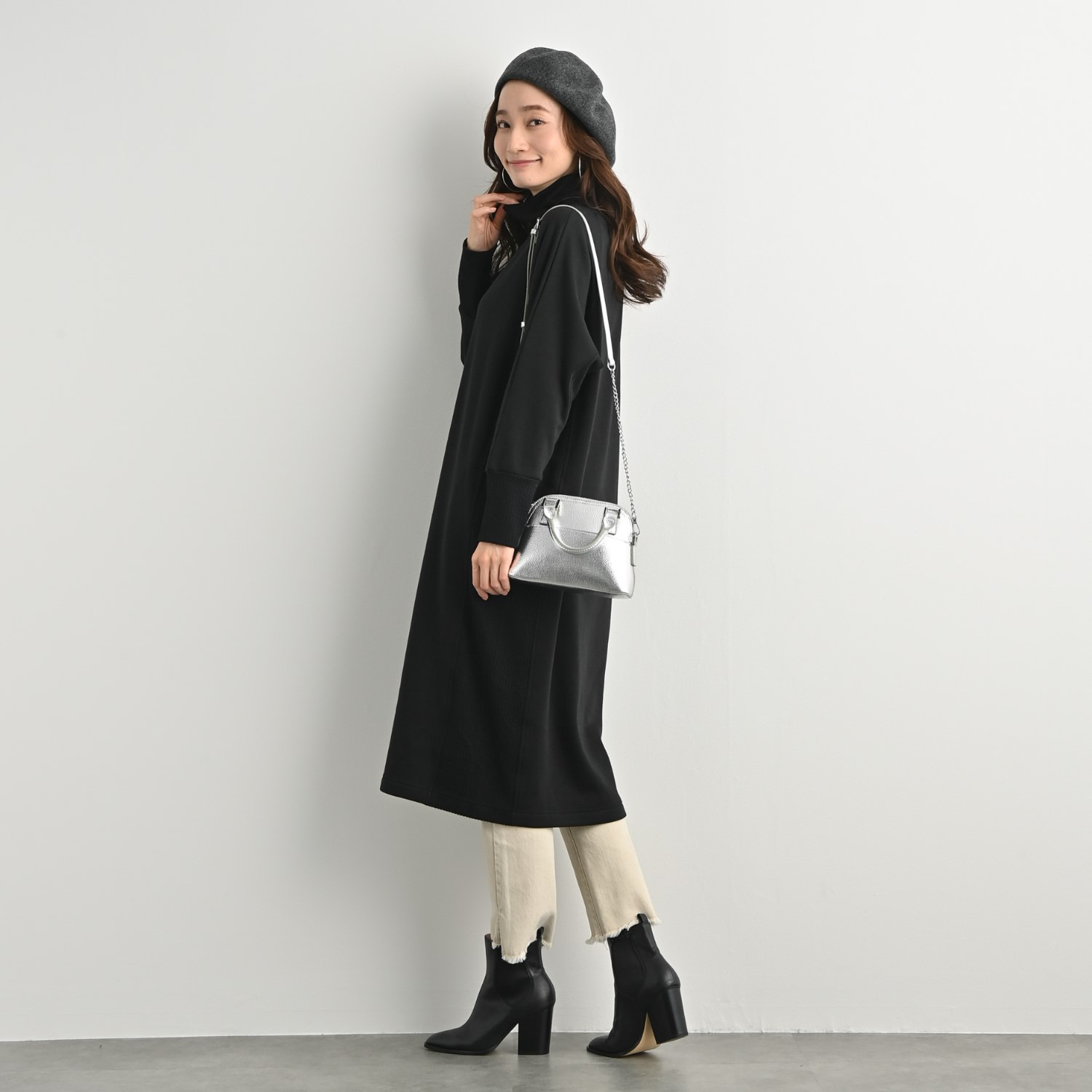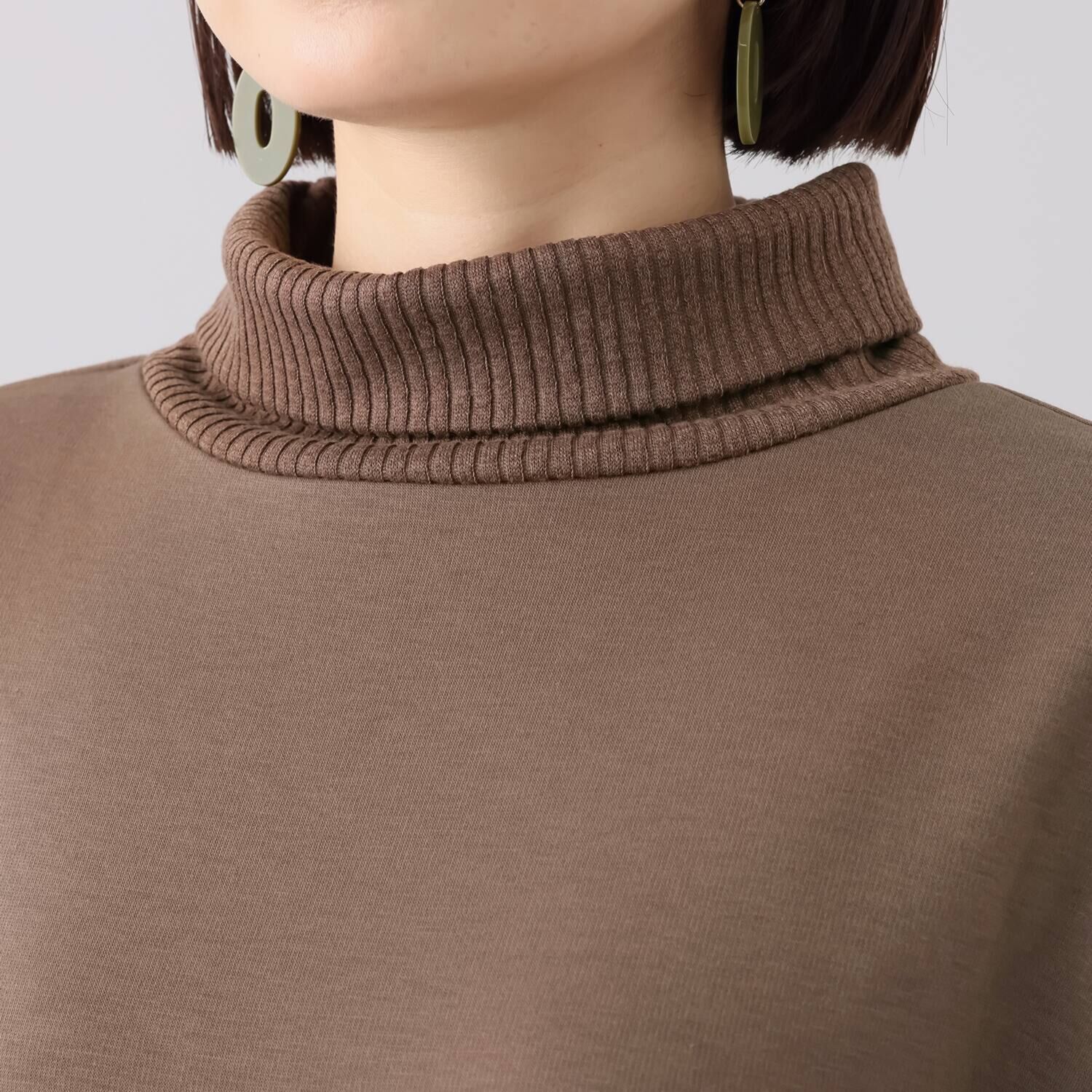 リブニットの襟は、折り返したりクシュクシュさせたりとさまざまなアレンジが可能。