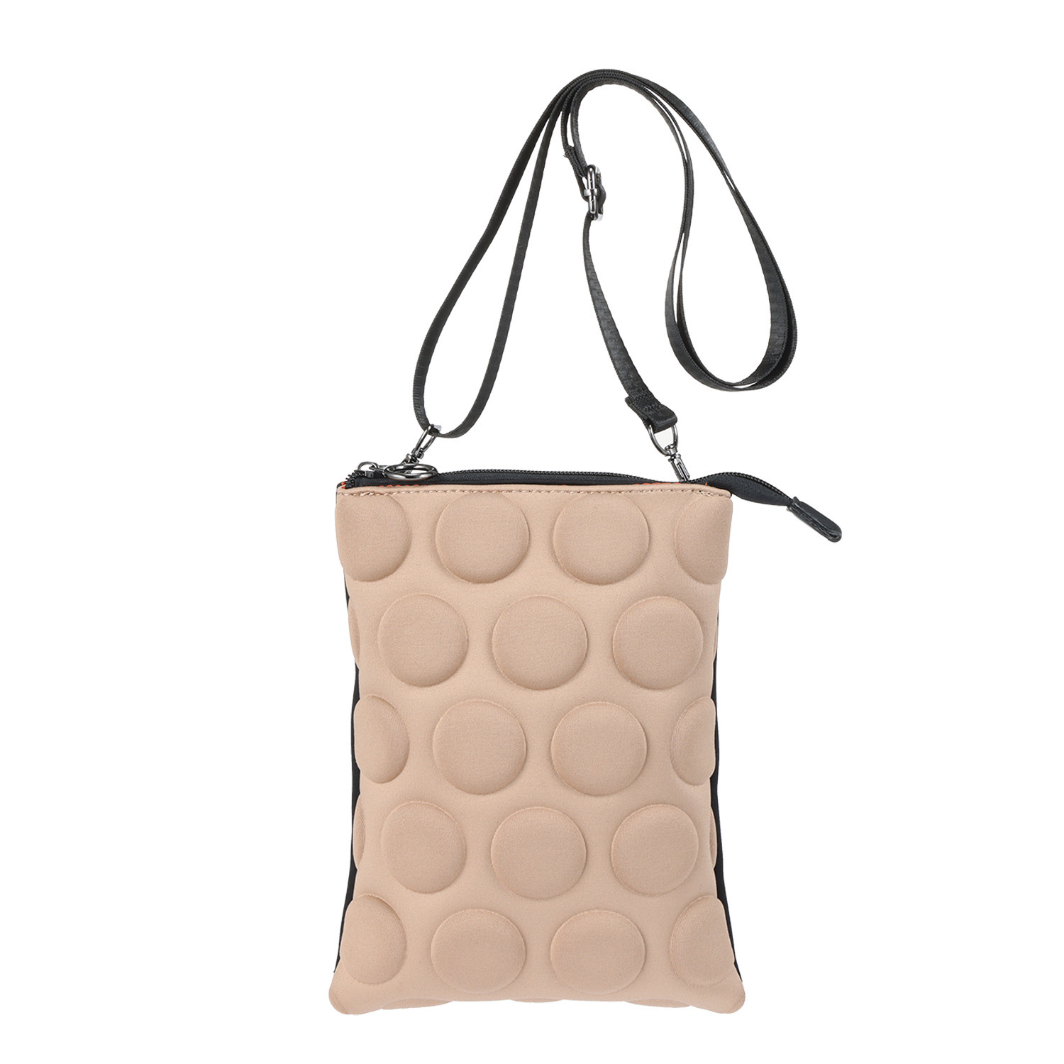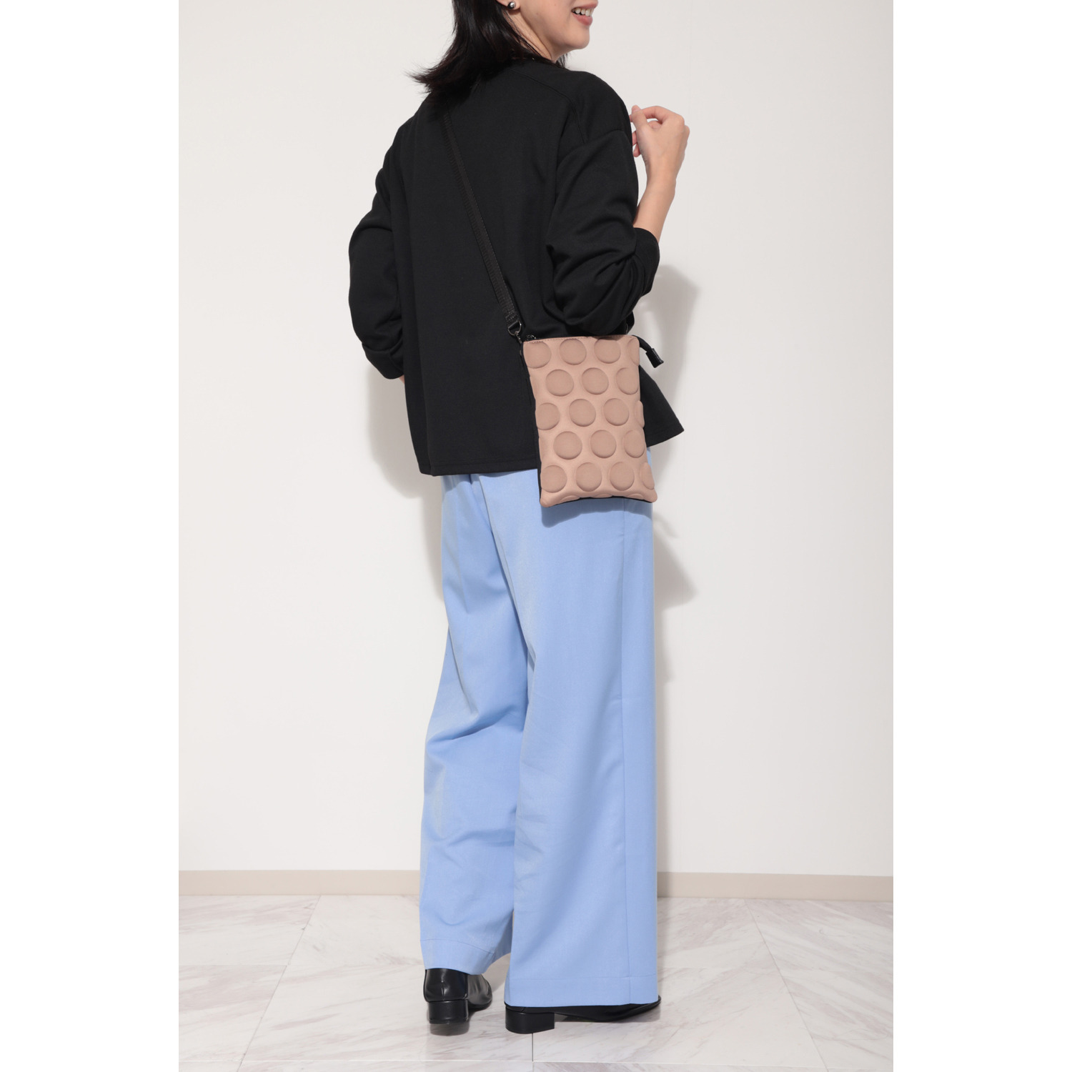 エンボス加工による立体的なドットモティーフがかわいい。使い勝手の良い縦型デザインです。