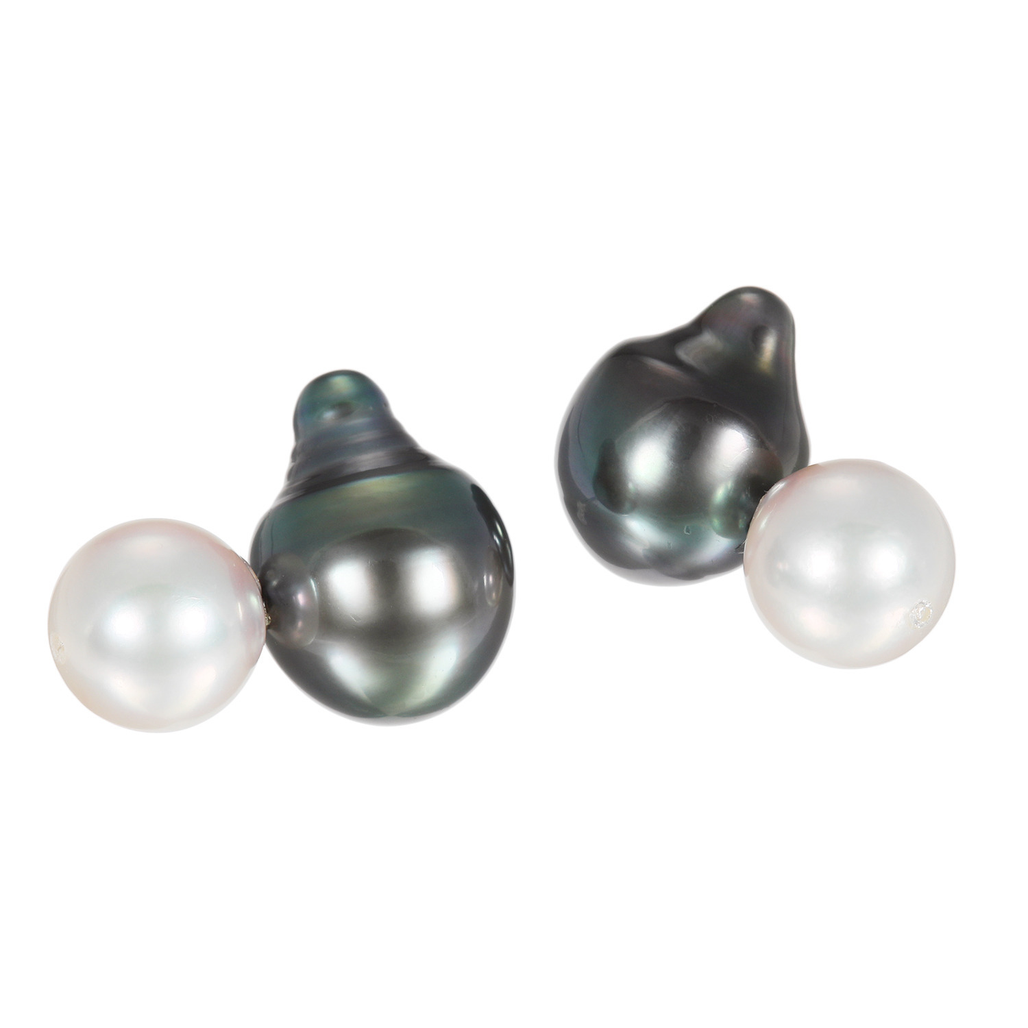 抜群の高級感と存在感を誇る黒蝶パールに、アコヤパールのナチュラルな色合いが好相性。