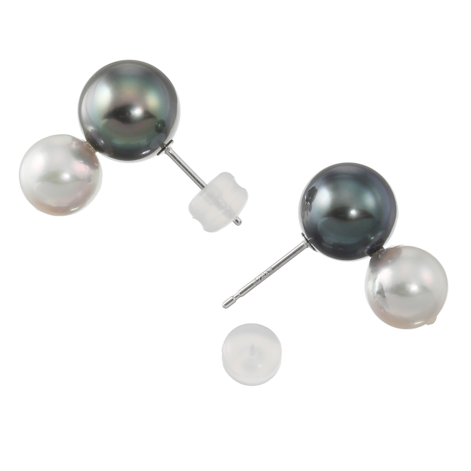 黒蝶パールと、国産無調色のナチュラルグレーアコヤパールを組み合わせたピアスです。