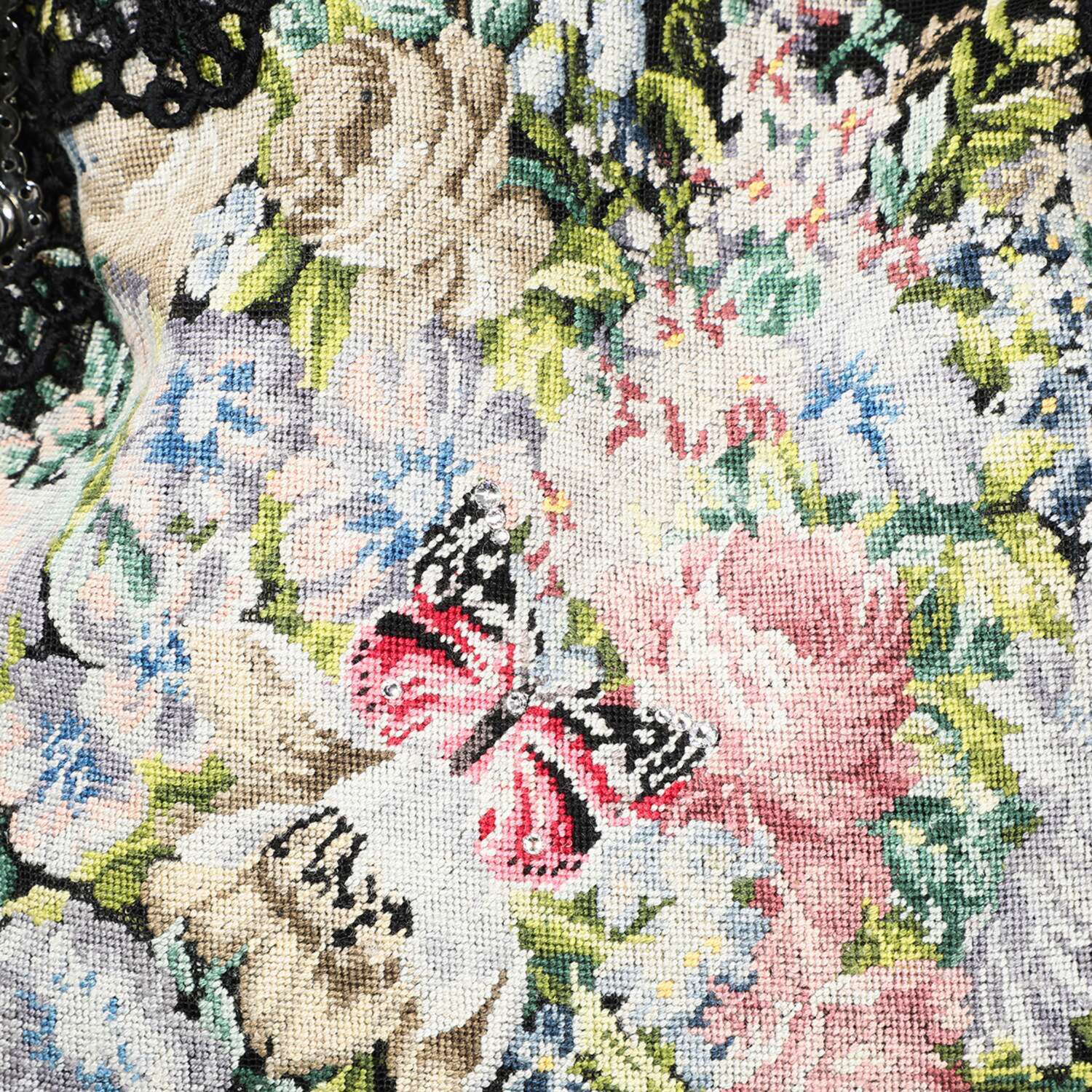 キメ細かなキャンバス地に、蝶々が優雅に飛ぶ絵画のようなプチポアンを贅沢に1枚使用。