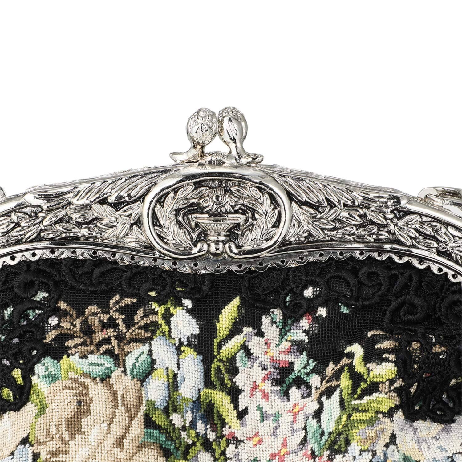 口金はアンティーク感のある金具を使用し、クラシックな雰囲気漂う仕上がりに。