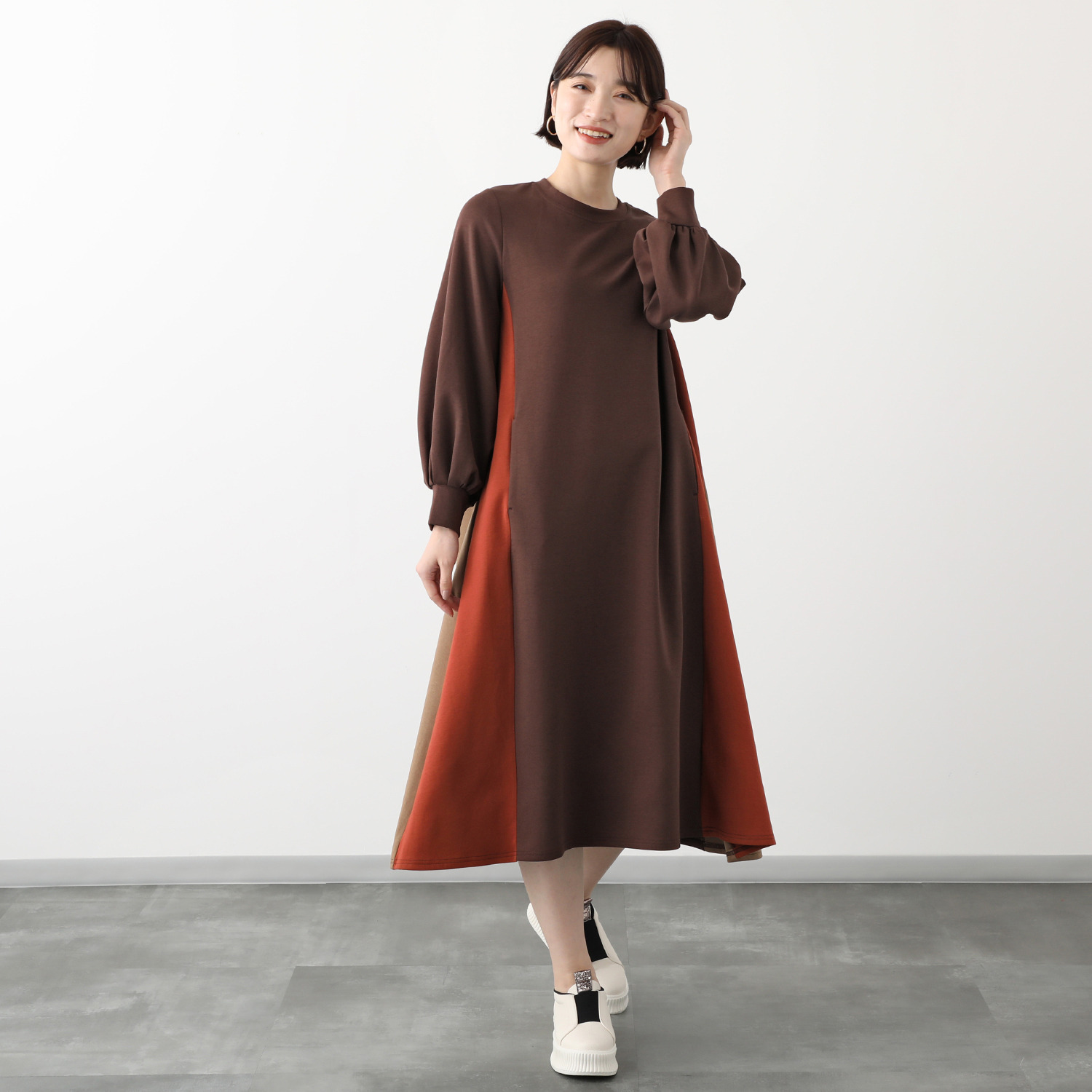 チャコールグレーの11号で少し大きめなので9号に交換し、ぴったりでした いつもは11号です 大きめの作りだと思います 生地が滑らかで落ち感も良く、着やすいですがグレーの色目が地味でブラウンが良かったかな‐と思いました ソルドアウトだったので残念でした