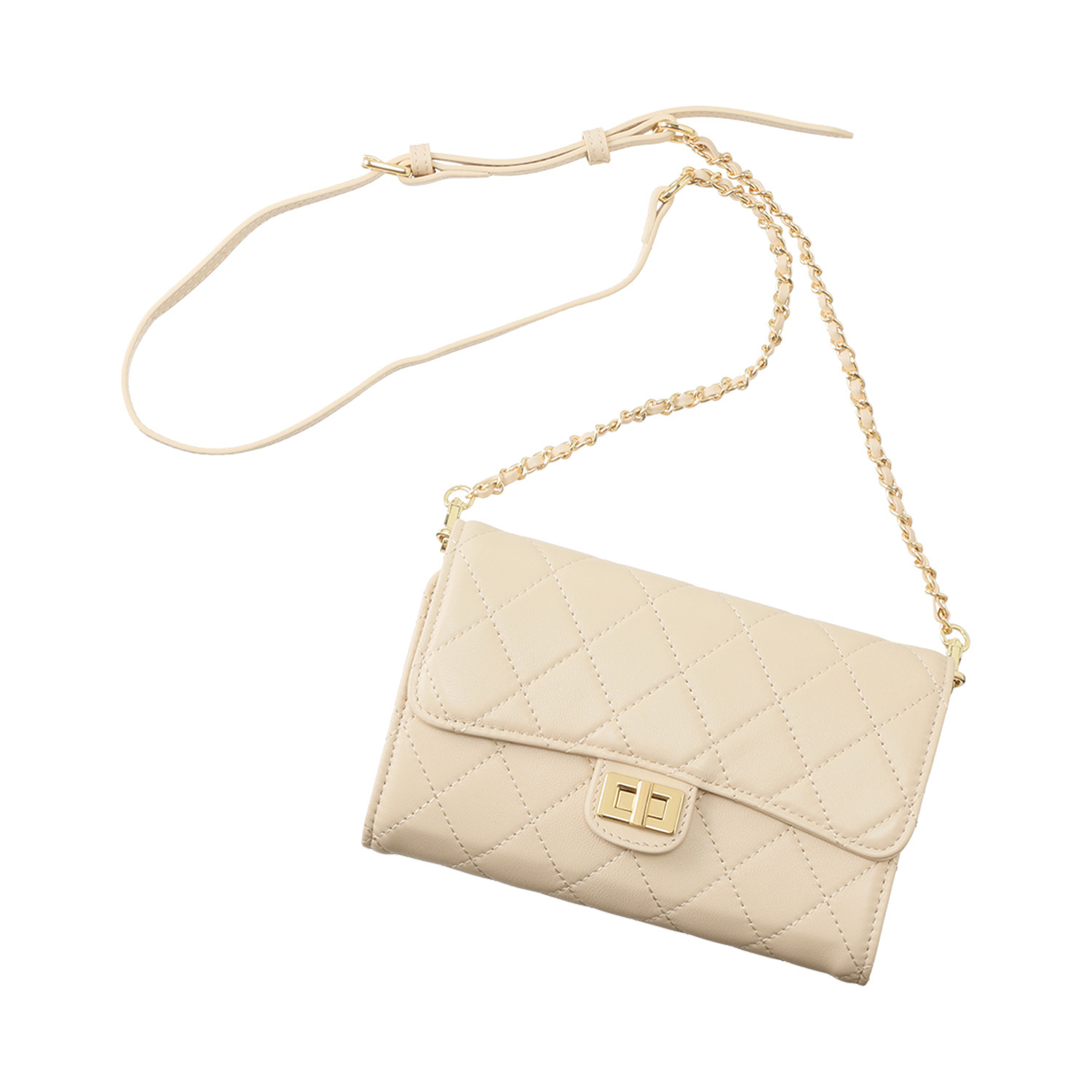 上質なシープレザーを贅沢に使用し、ダイヤ型のキルティングをほどこした洗練されたデザイン。