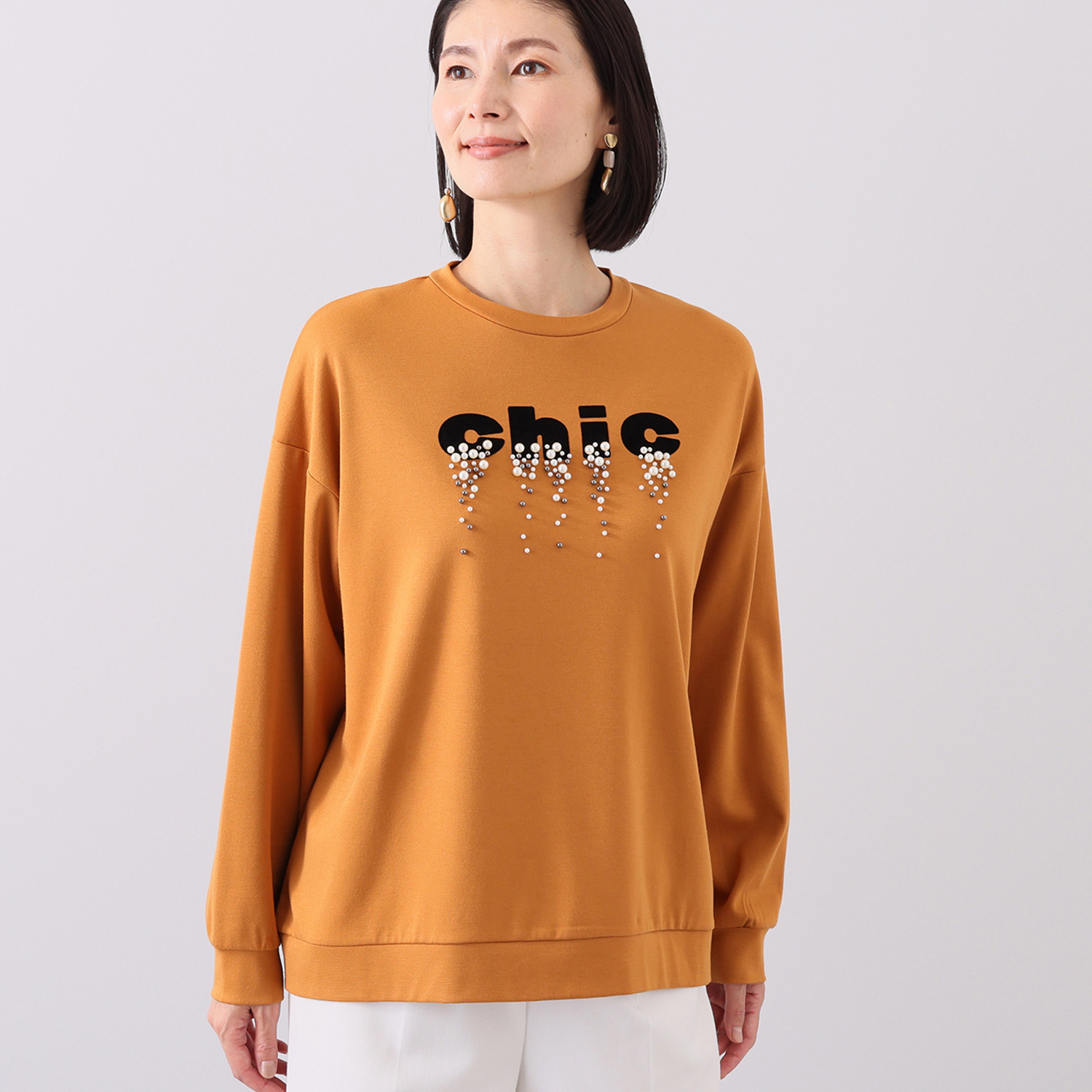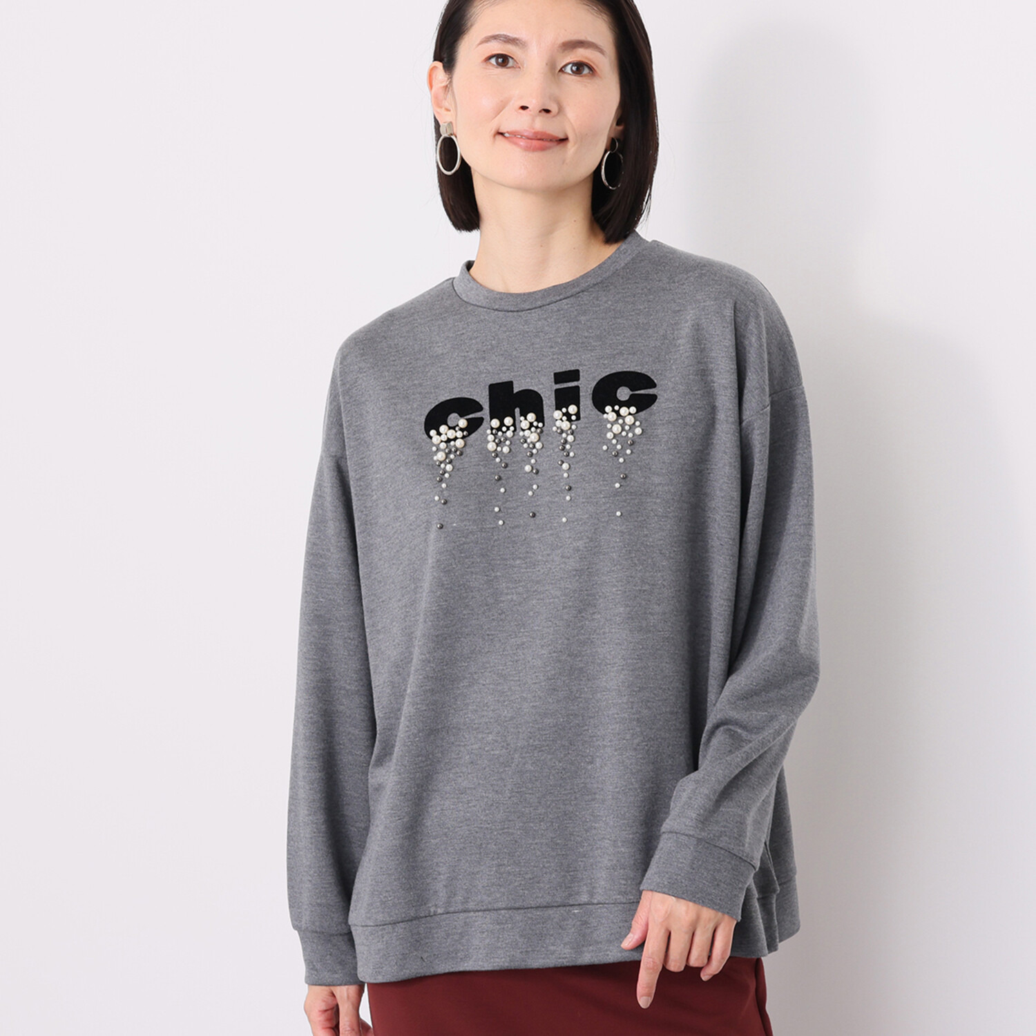 ダジュール 英文字&パール調ビジュウ プルオーバー