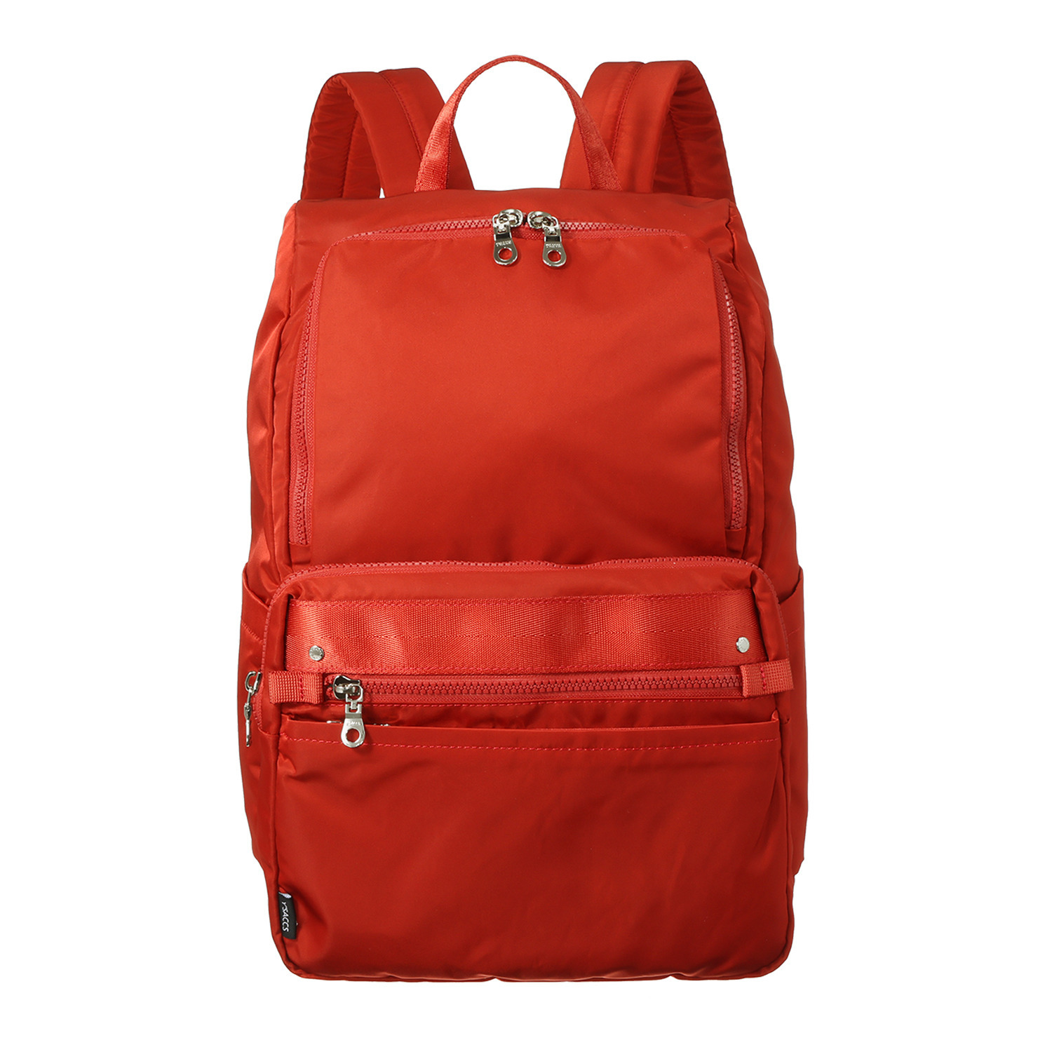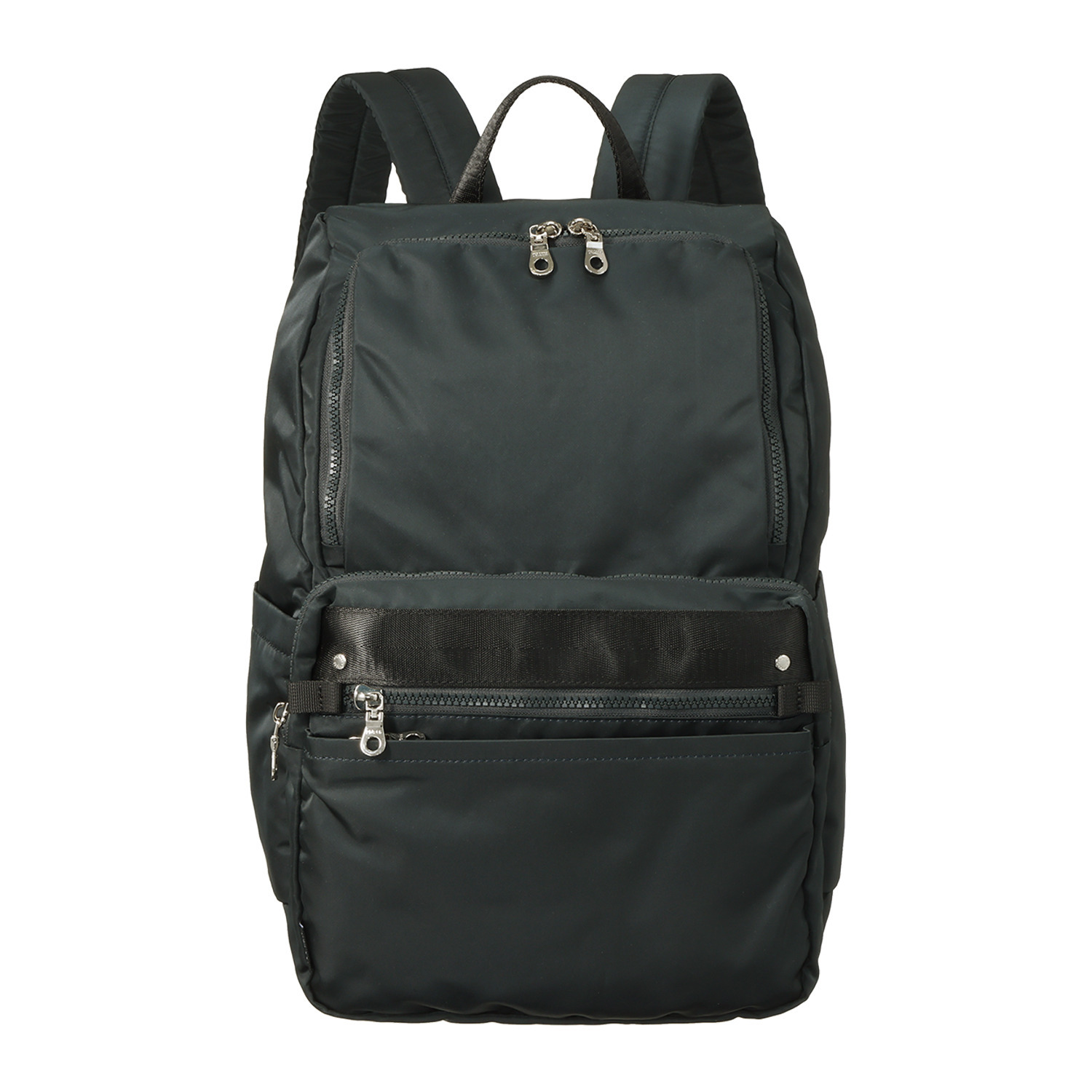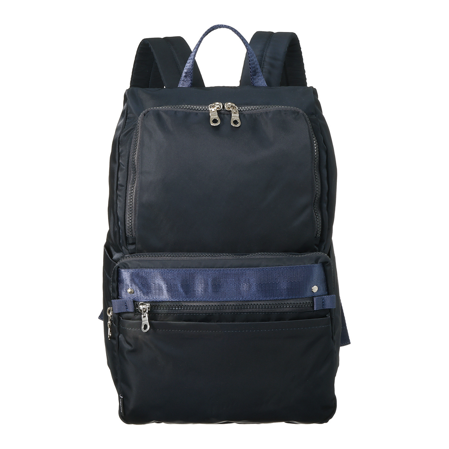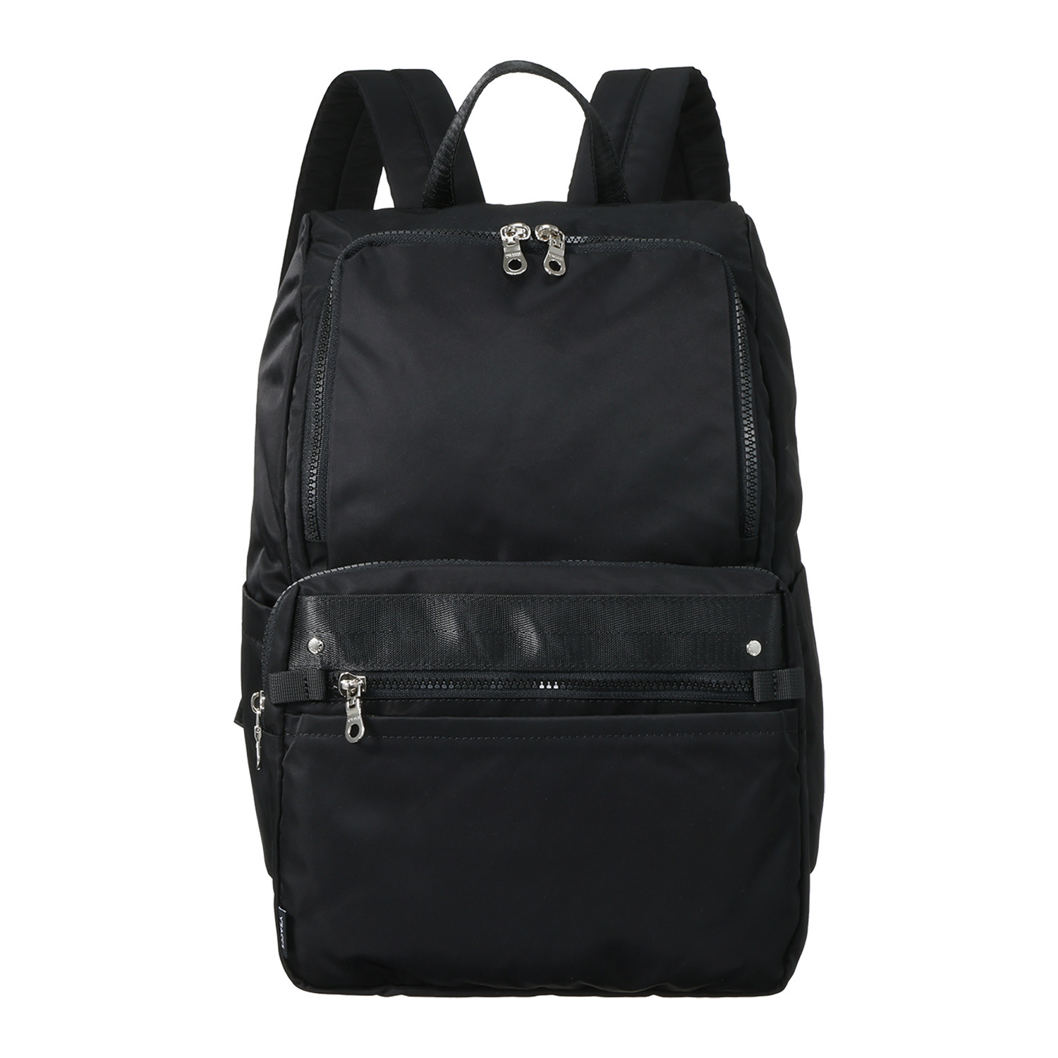 内外で合計9つのポケットを備えており、背面ポケットには長財布(大きさにより異なる)、サイドポケットには500mlのペットボトル、前ポケットには大きめのスマートフォンなどを整理収納できます。