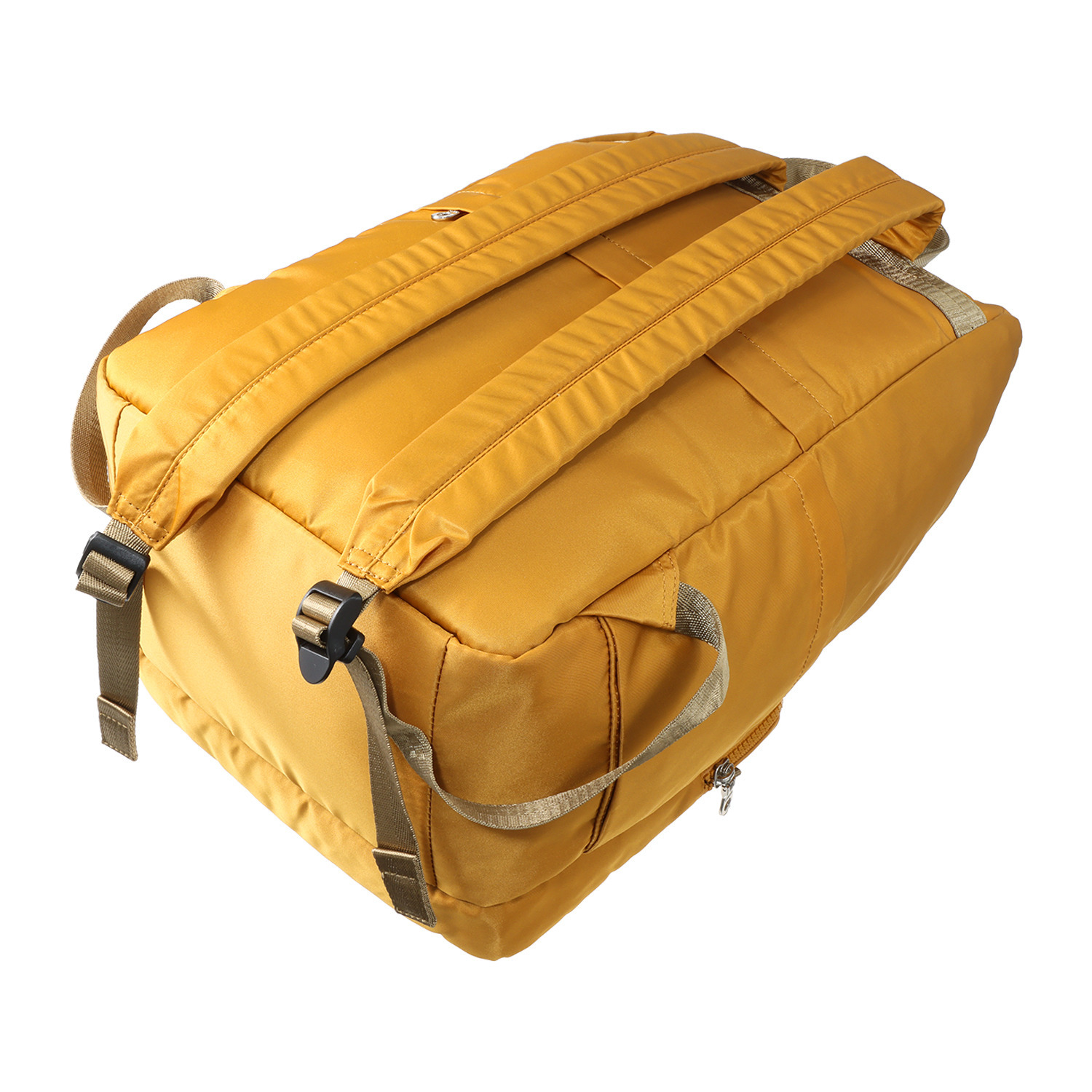 底部分にしっかりマチを取りつつ、上部に向かってシェイプされているため、荷物をたっぷり入れてもすっきりとした見た目を保ちます。