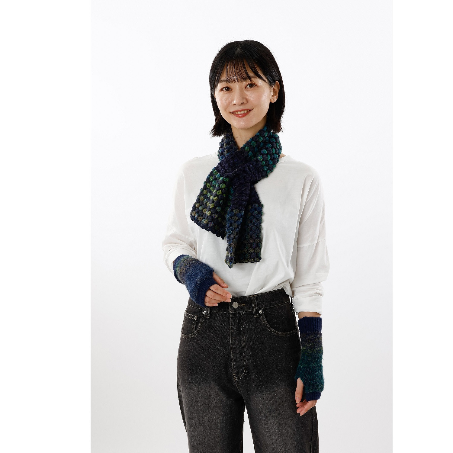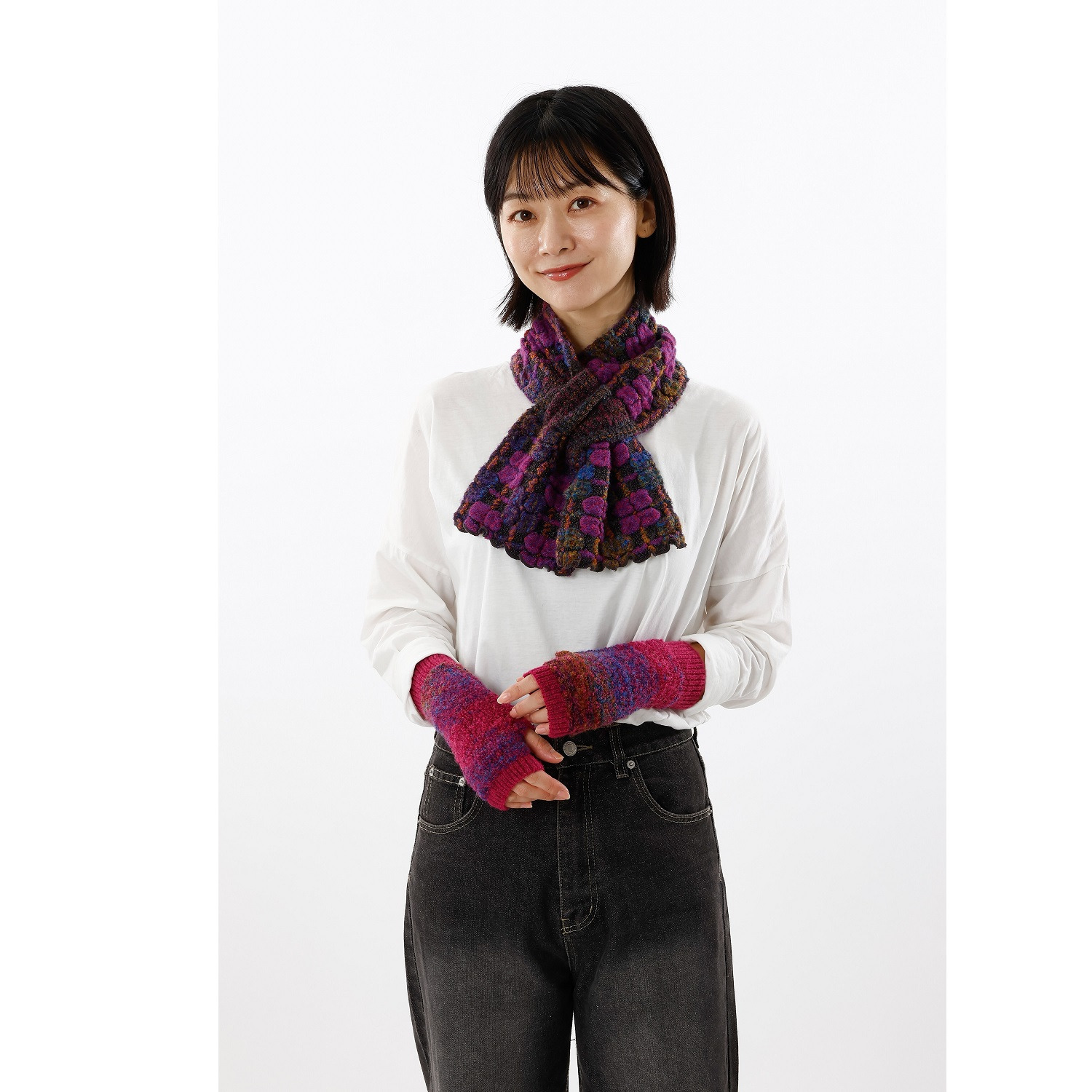 :<ブルー、マスタード、フューシャピンク、ワインミックス>アクリル66%、ナイロン27%、毛6%、ポリウレタン1%