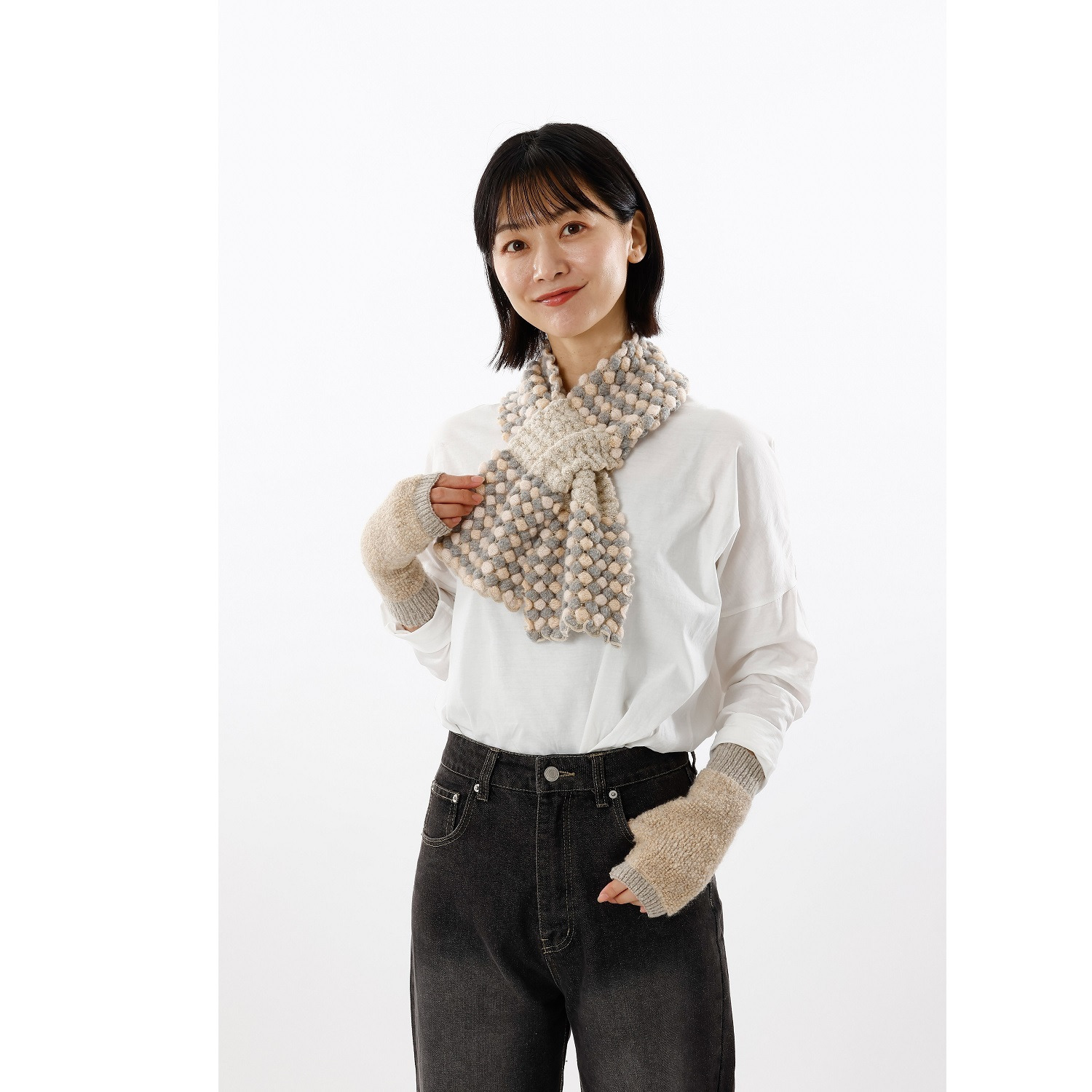 ・本体:<パープル、グリーン、ピンク、ベージュ>アクリル66%、ナイロン25%、毛8%、ポリウレタン1%