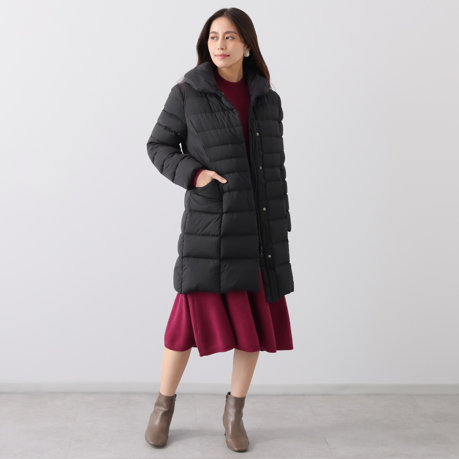 軽いし、デザインがシンプルでウエストを細くみせるようになっているので着ぶくれせず、仕事やカジュアルな服装でもなんでも合わせやすいです。