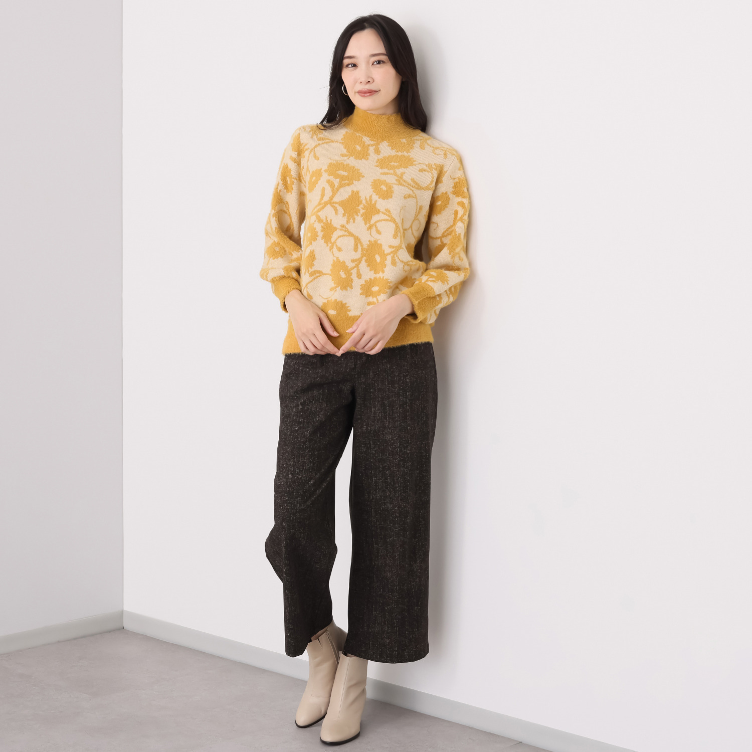 無地のアウターなどのインナーとして着用すると、メリハリと華やかさが生まれ、コーディネイトに新たな魅力をプラスします。